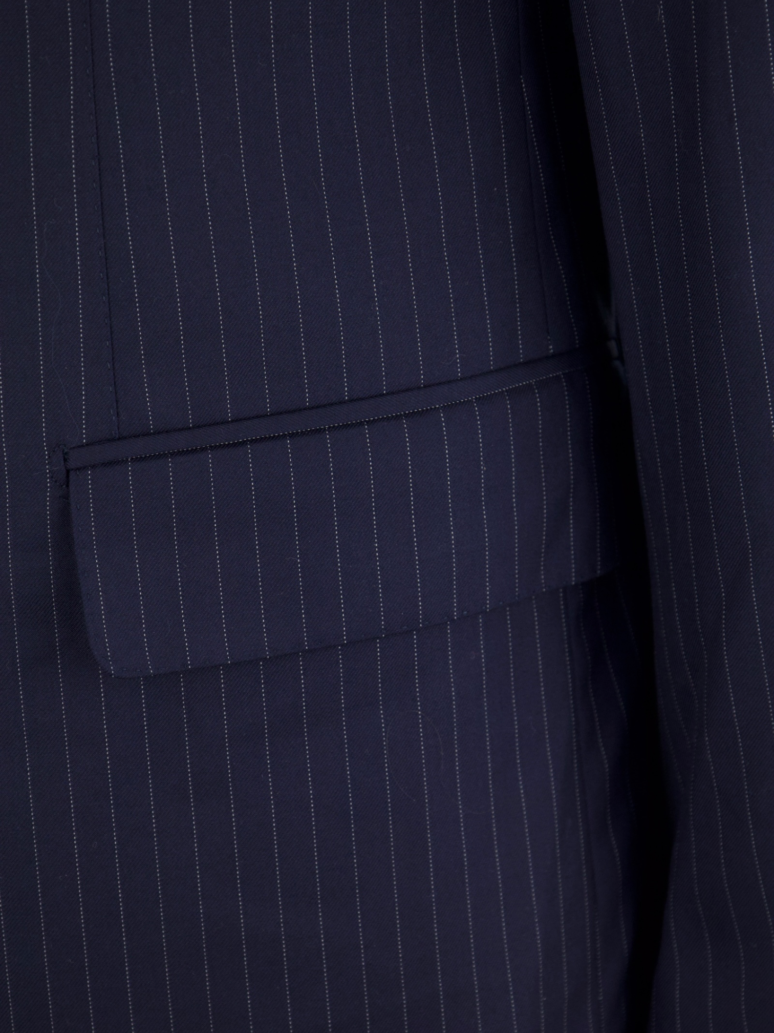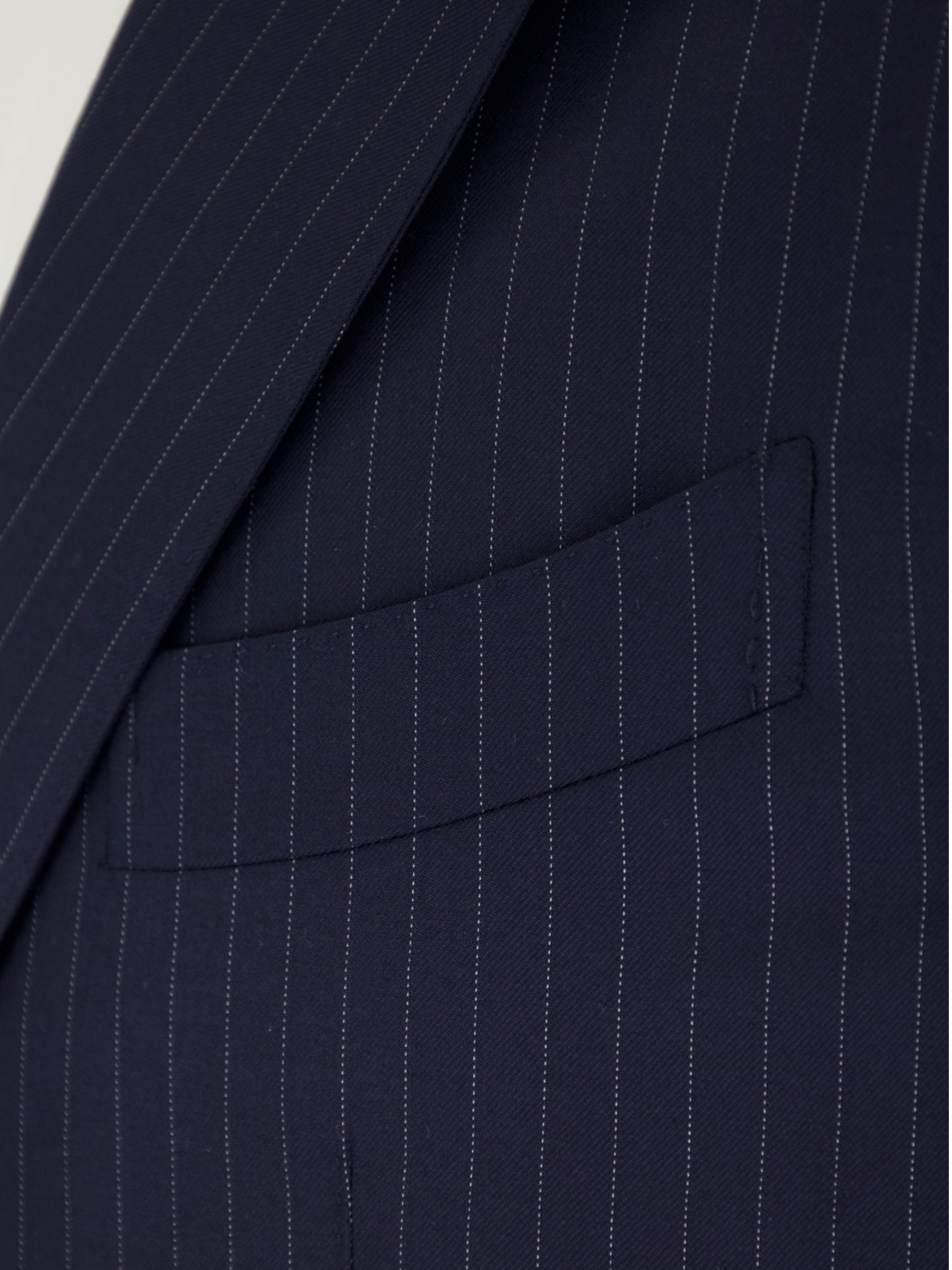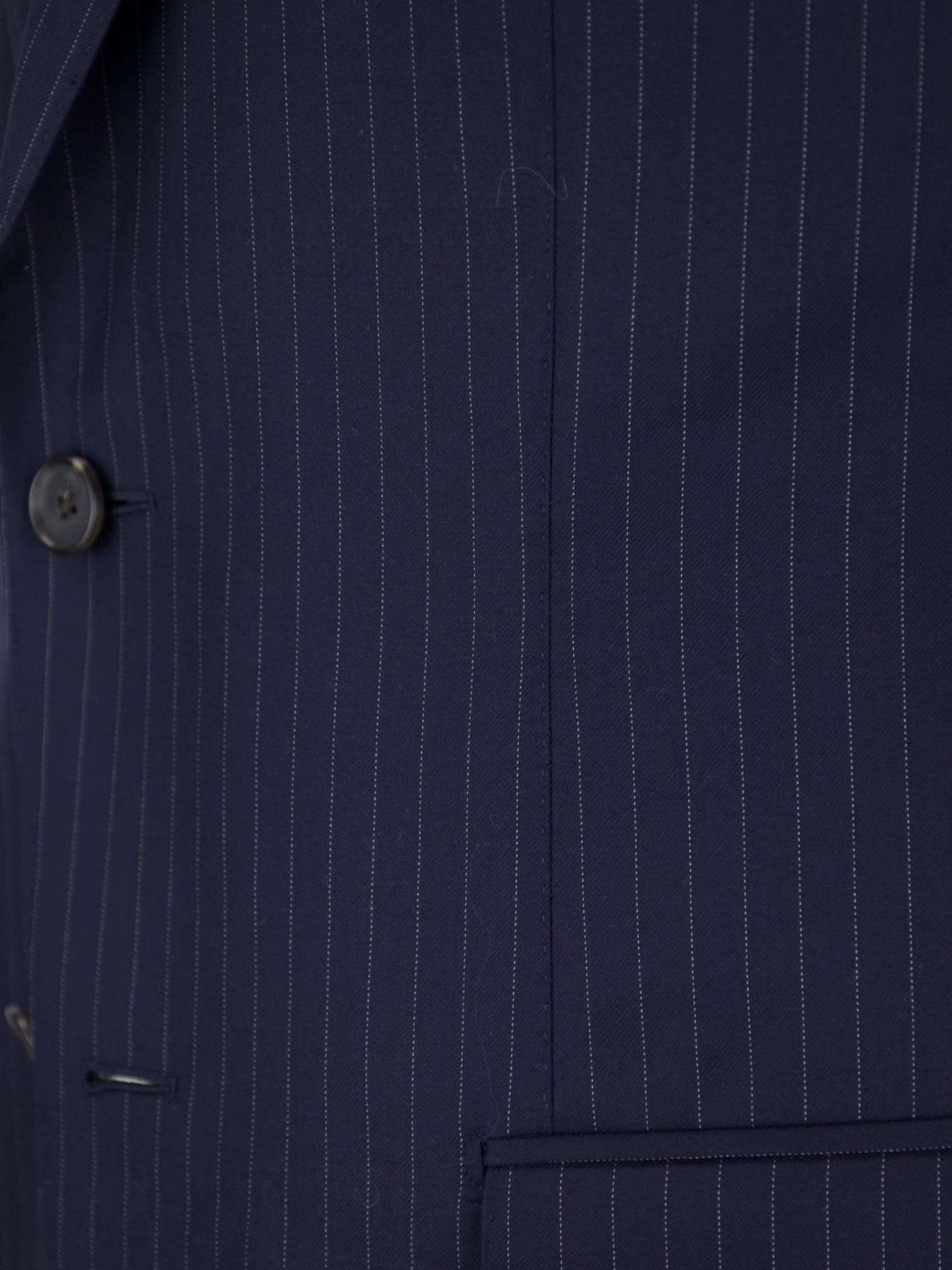 Handcrafted in Italy, this Caruso suit embodies the brand’s renowned dedication to precision and quality. The Super 160's wool is prized for its remarkable softness, natural luster, and exceptional drape, ensuring all-day comfort without compromising on style. Every detail, from the hand-finished seams to the perfectly aligned pinstripes, speaks to Caruso’s artisanal expertise. Designed for those who appreciate luxury in its finest form, this suit is an enduring investment in Italian craftsmanship. Discover the elaborated sartorial details below.