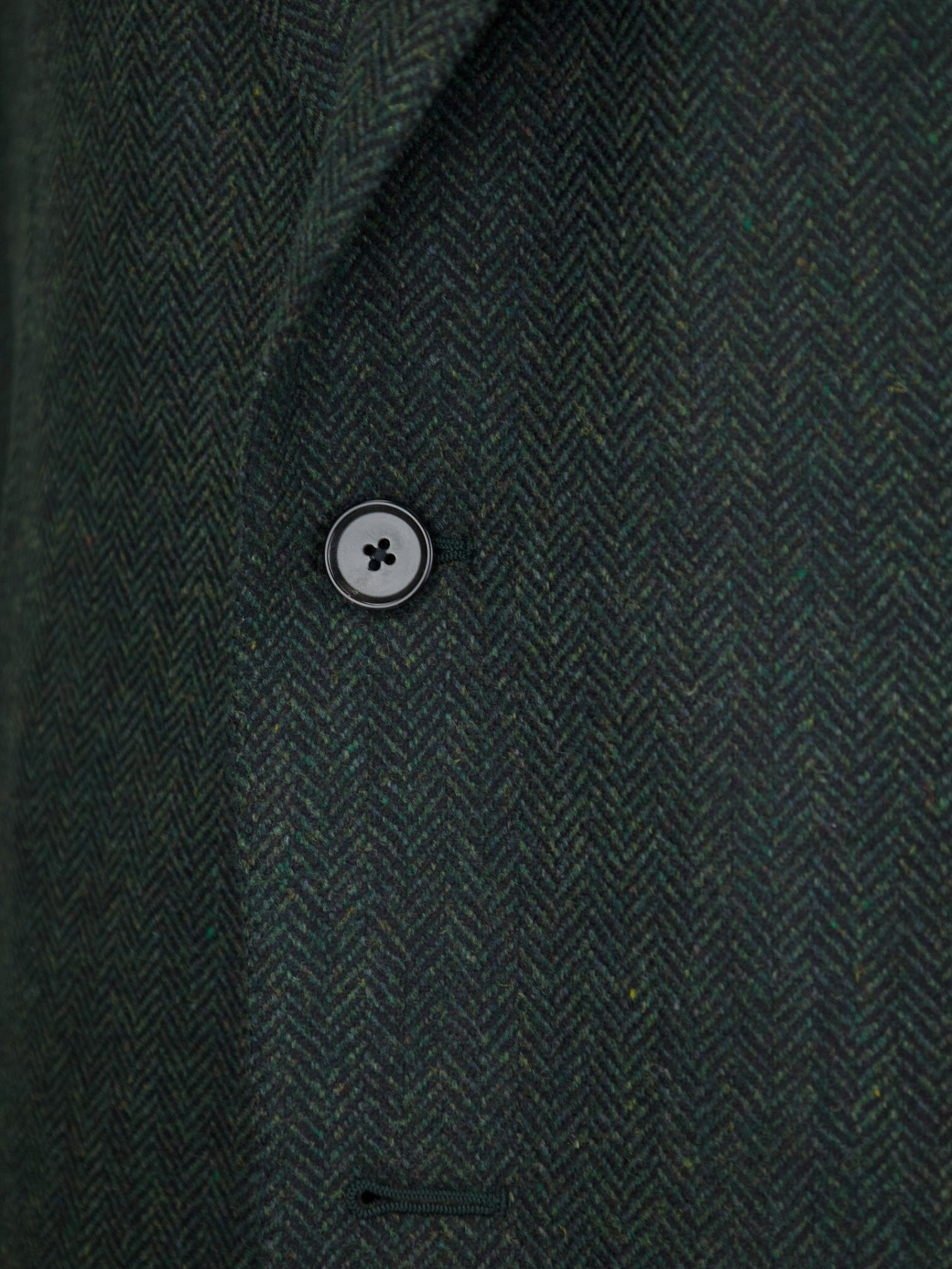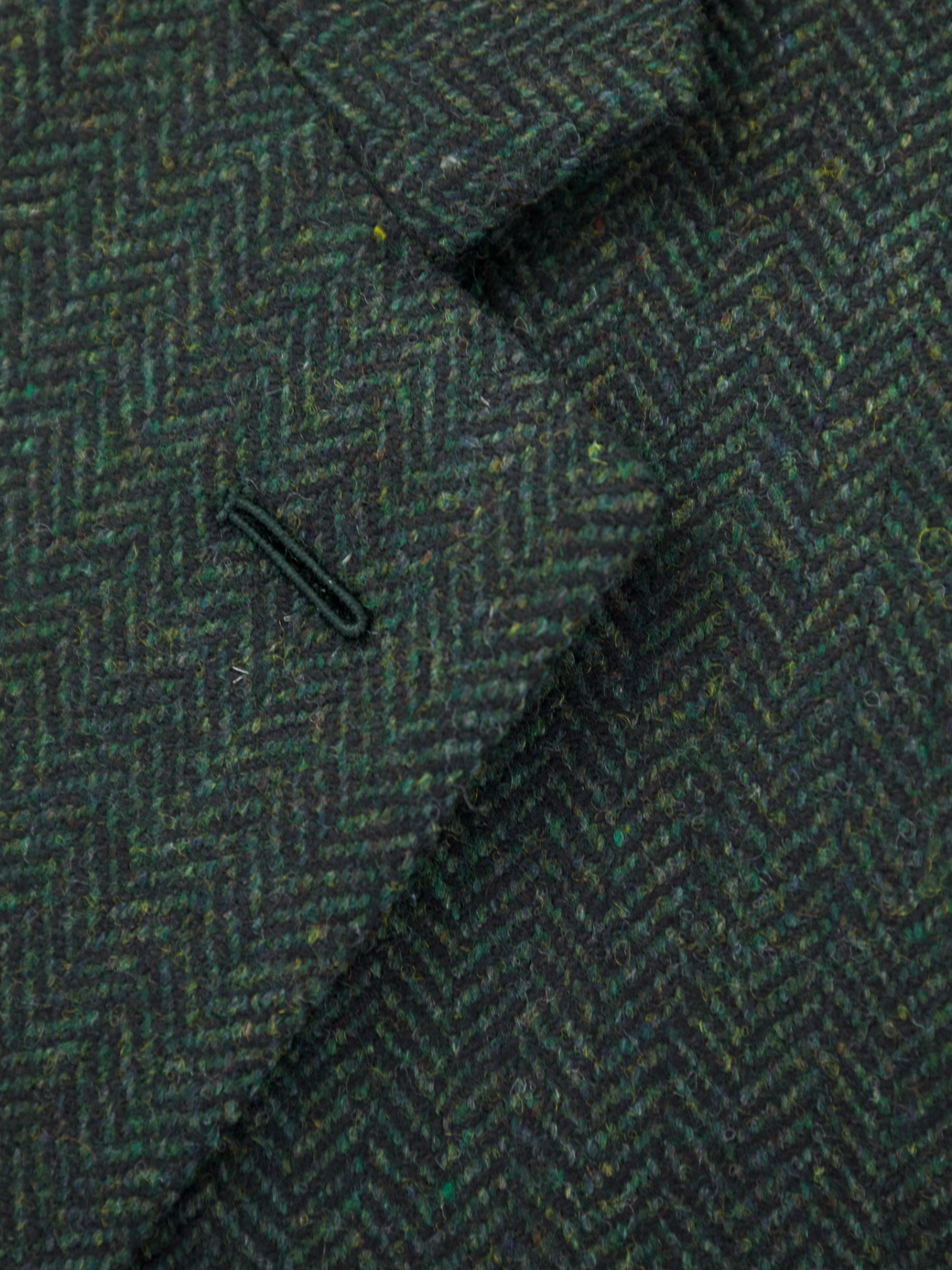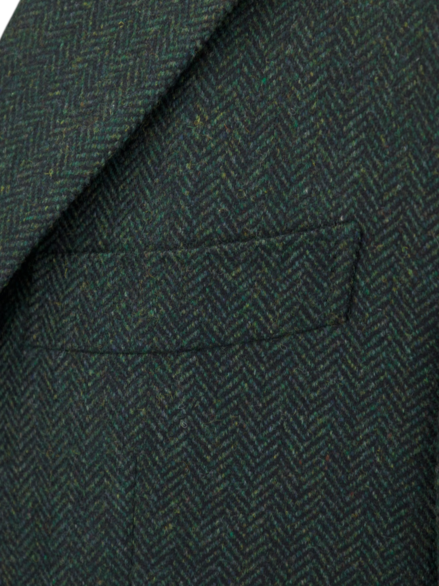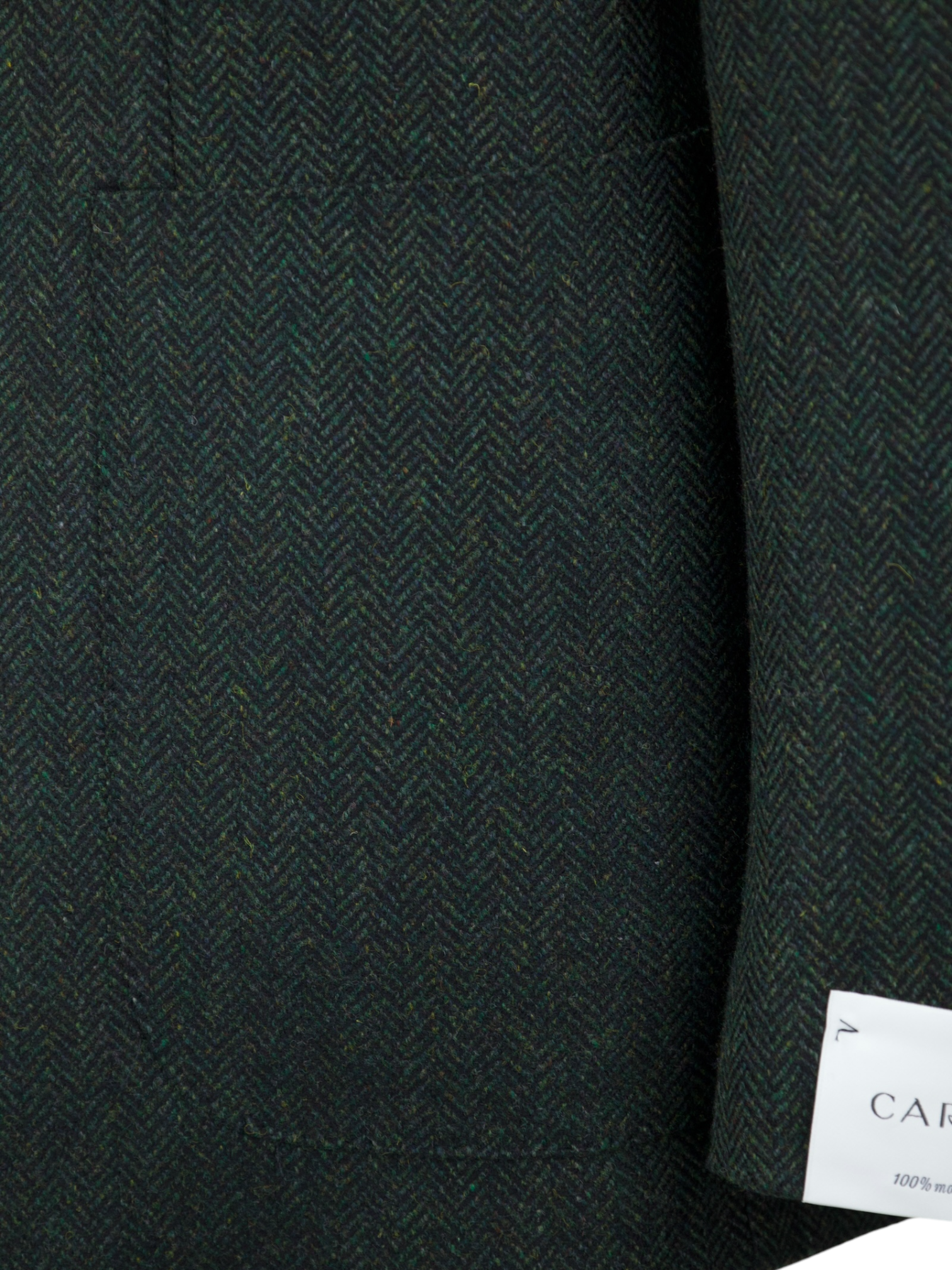 Caruso Forest Green Wool & Cashmere Herringbone Tosca Jacket