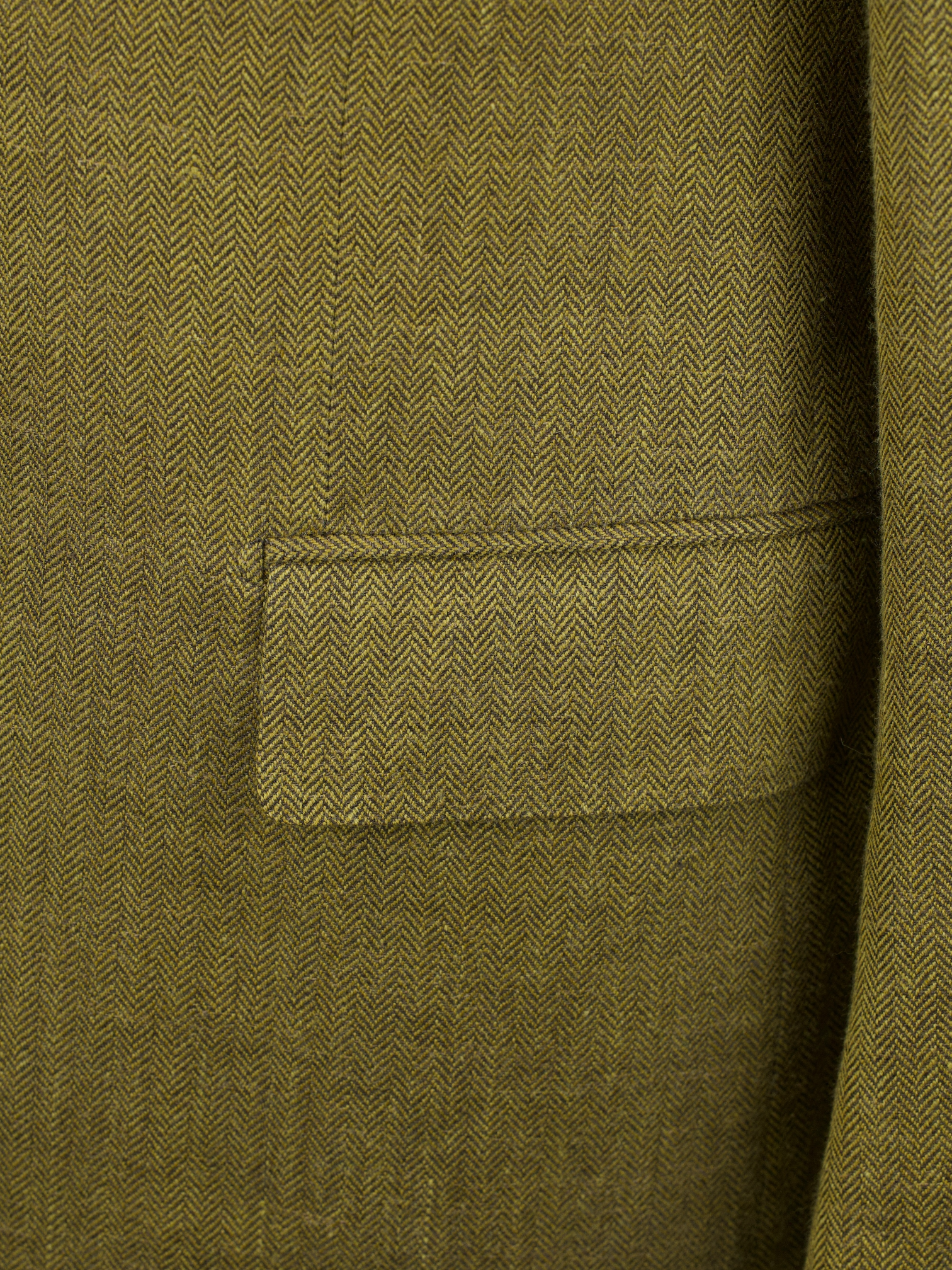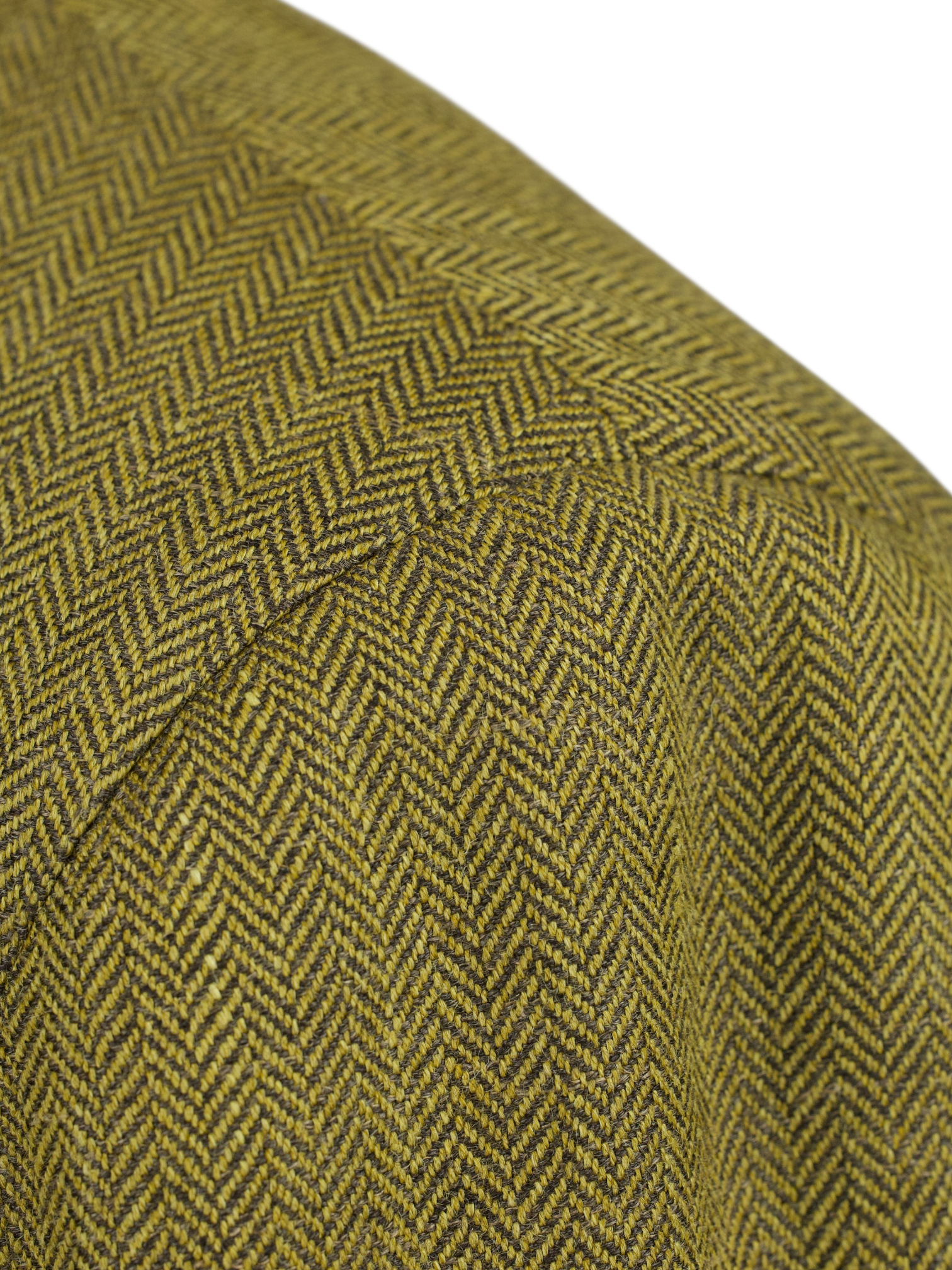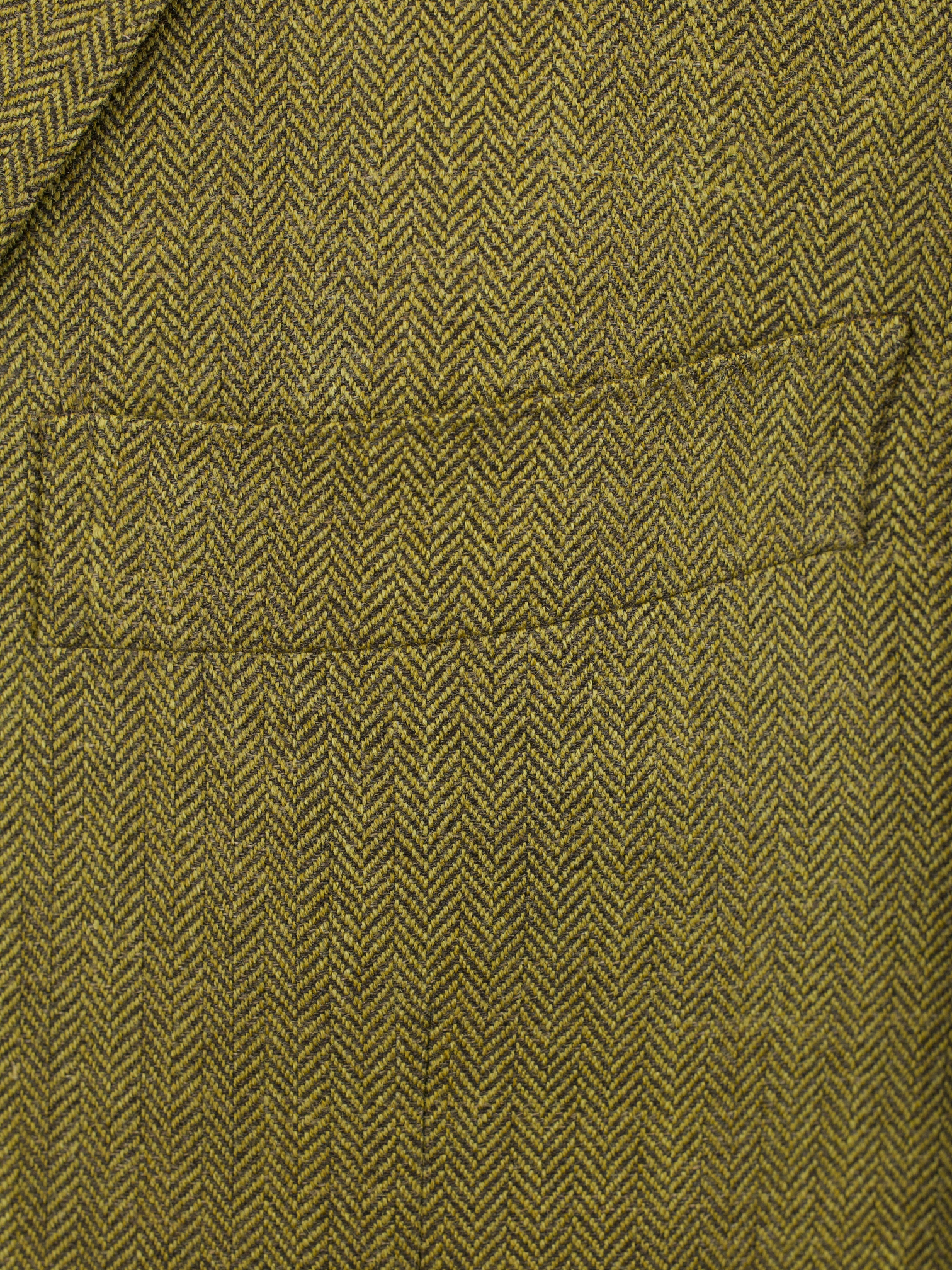 Discover the Caruso gold herringbone jacket, cut from a sophisticated blend of wool, silk, and linen that captures both texture and tonal depth. The golden hue is warm yet restrained, brought to life by the herringbone weave which adds subtle visual movement without overpowering. Lightweight and unassuming, this piece is ideal for spring and early autumn—layered over a crisp shirt or fine knit—while its softly tailored shape and classic notch lapels ensure versatility across settings.