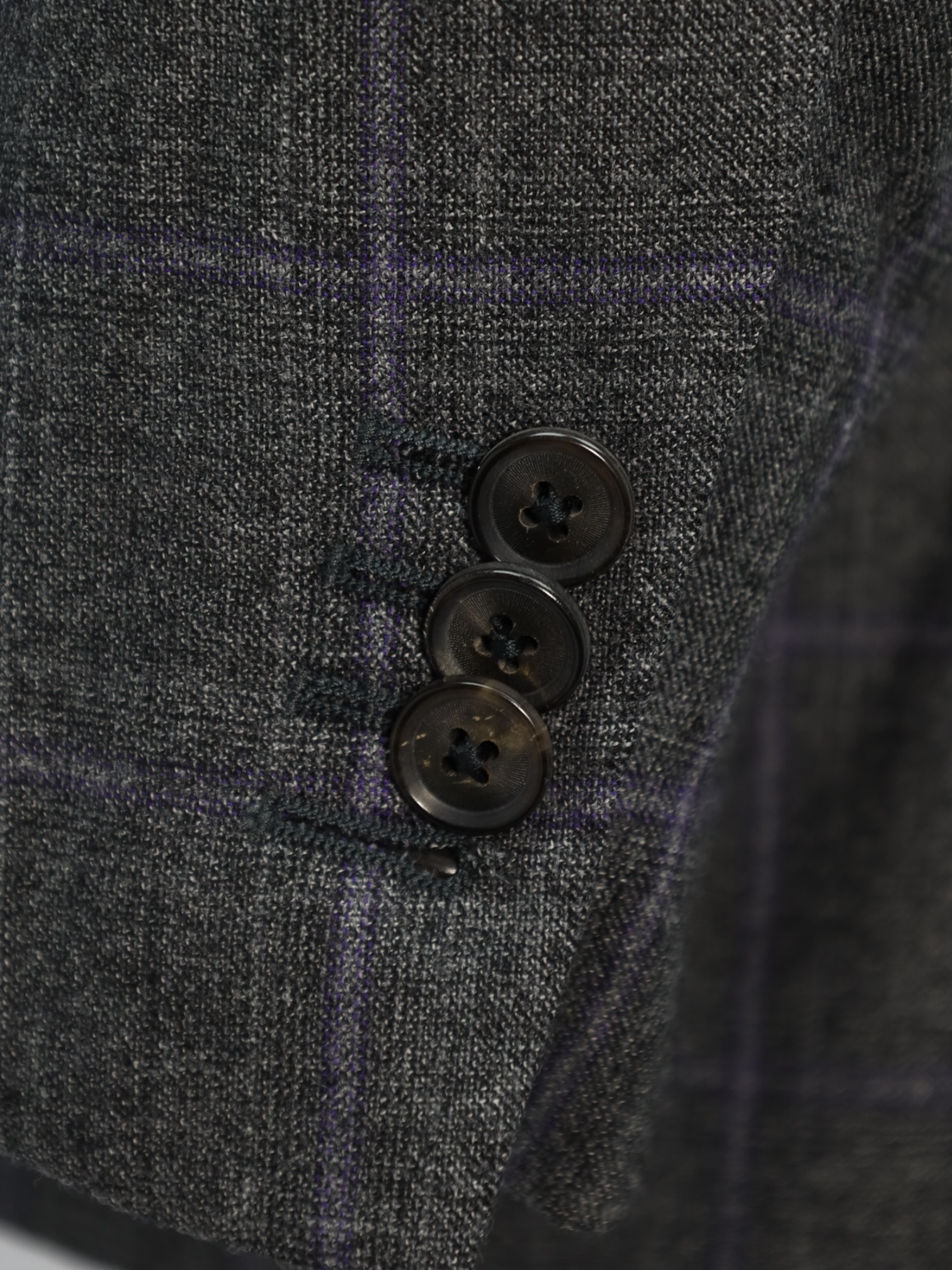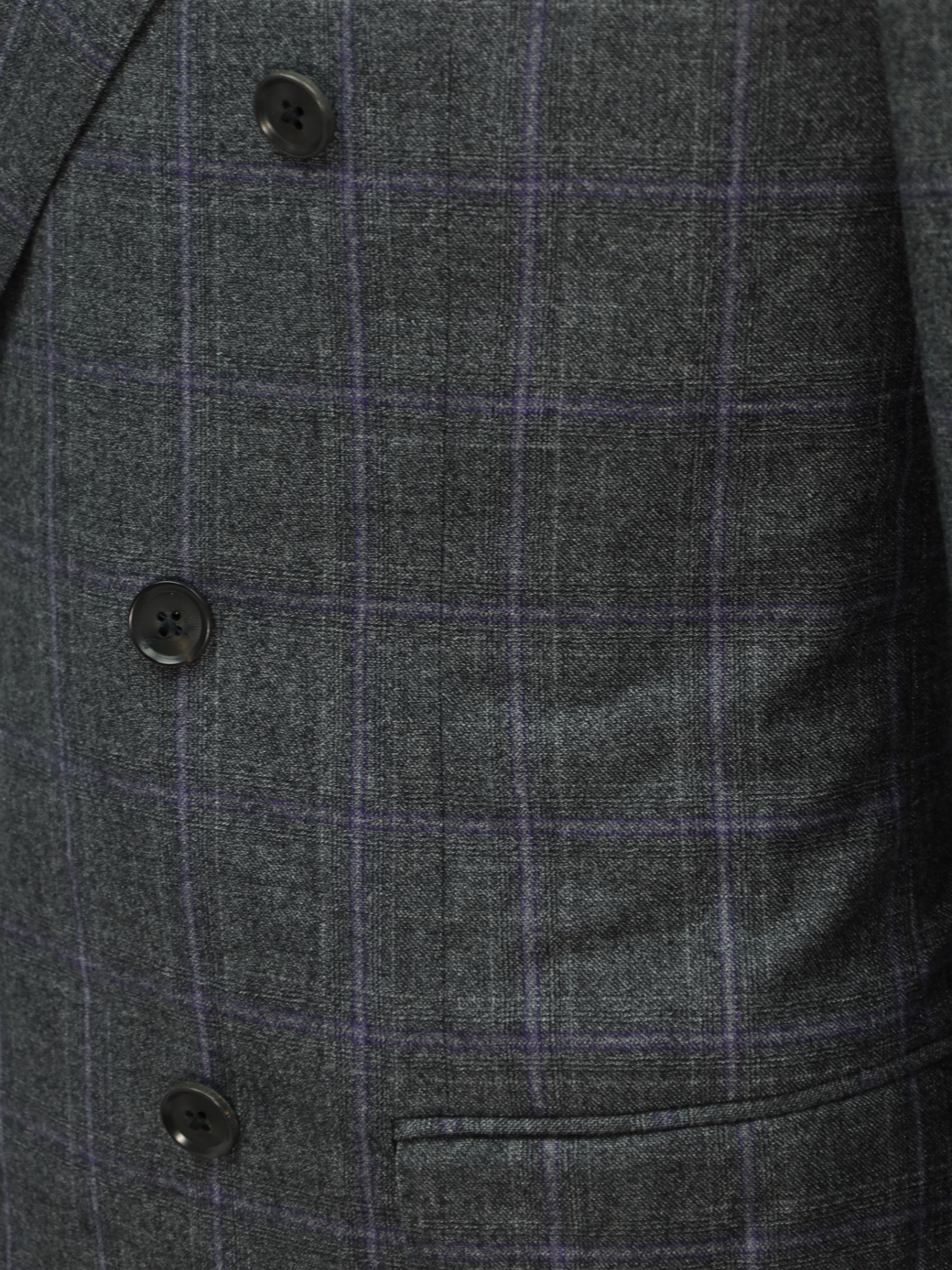 Introducing the Caruso Grey Aida Super 130's Windowpane Double Breasted Suit, a pinnacle of Italian craftsmanship and sartorial excellence. Crafted from luxurious Super 130's wool, this suit boasts a distinguished grey hue and a sophisticated windowpane pattern, exuding timeless elegance. The double-breasted jacket adds a touch of refinement, while notch lapels complete the classic silhouette. Additionally, the Aida quality from Caruso enhances the suit's allure. Aida is a high-quality fabric characterized by its smooth texture, durability, and ability to retain its shape, making it ideal for tailored garments. With meticulous attention to detail and a commitment to quality, Caruso ensures that each suit embodies the essence of Italian style and craftsmanship. Discover the elaborated sartorial details below.