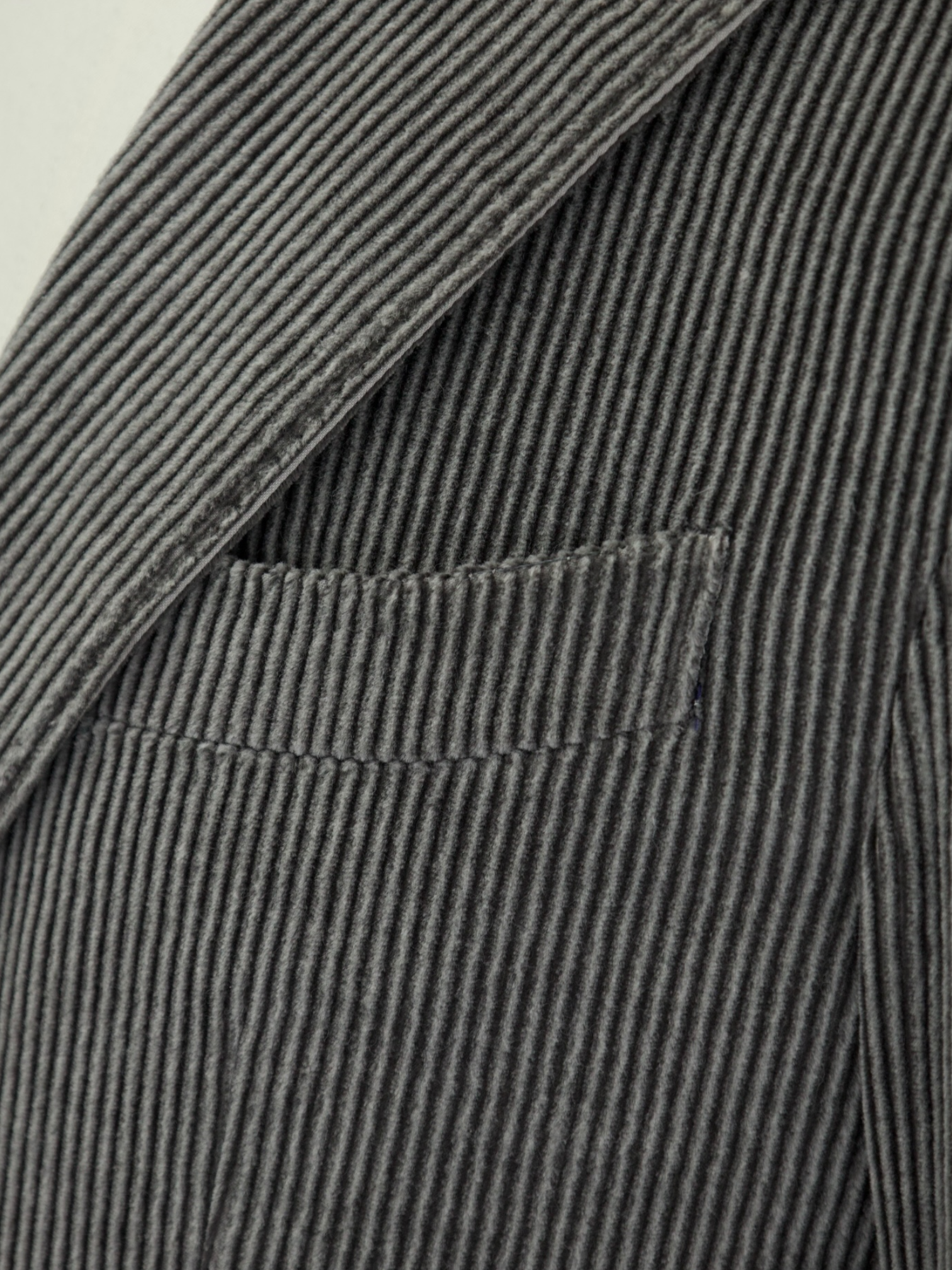 Caruso’s Aida jacket is a hallmark of the brand’s commitment to soft tailoring, blending Italian craftsmanship with modern versatility. The premium cotton-cashmere blend enhances both warmth and comfort, while the unstructured design ensures a relaxed yet polished silhouette. The half-lined interior maximizes breathability, allowing the fabric to move naturally while maintaining a refined shape. Thoughtful finishing details, from the precise stitching to the fluid fit, reflect Caruso’s dedication to understated luxury. A sophisticated alternative to traditional wool jackets, this corduroy piece offers a contemporary edge with timeless appeal. Discover the elaborated sartorial details below.