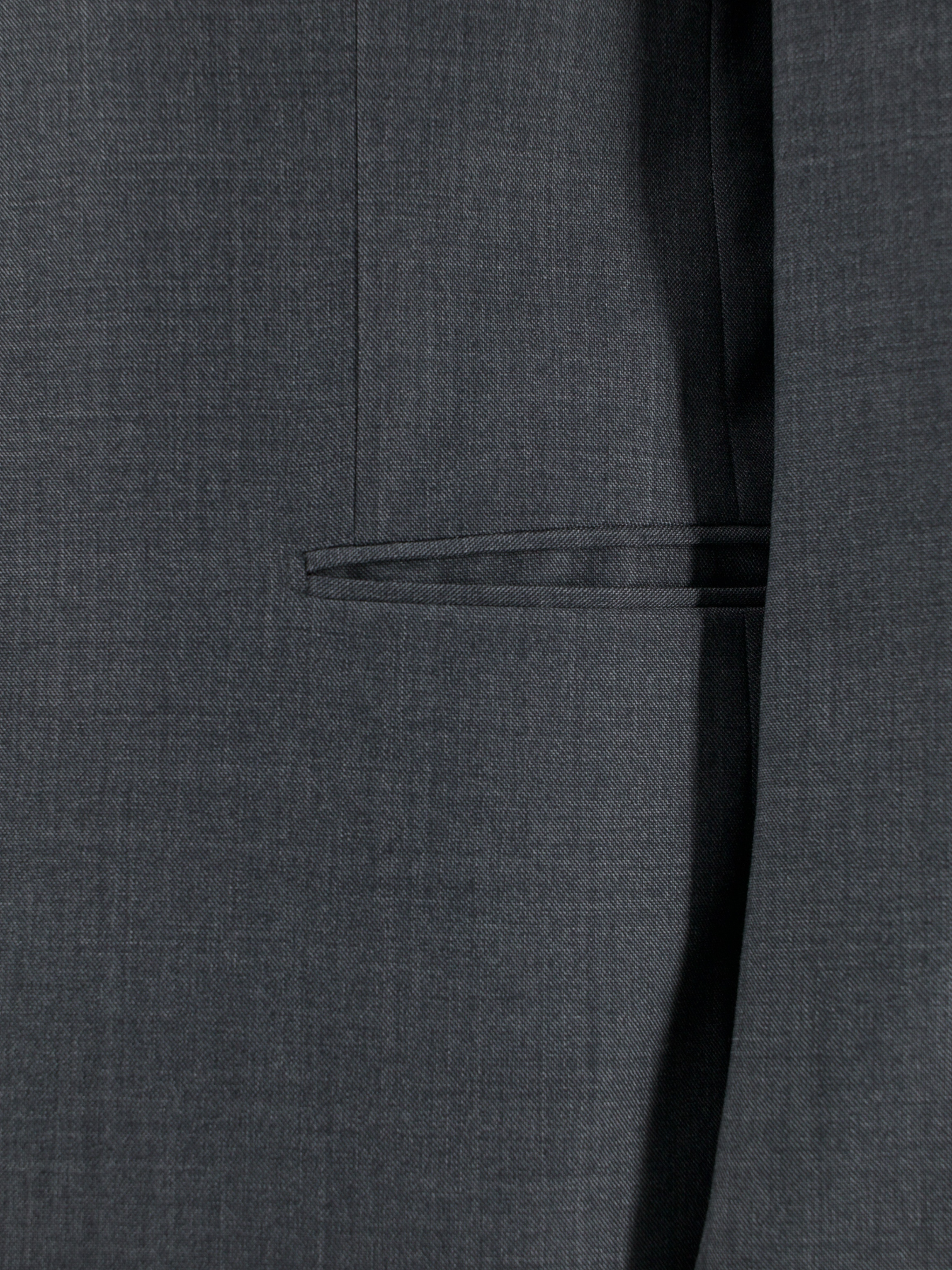 The first jacket pockets were sewn inside the lining or seams of garments, and are called “jetted” pockets. In their simplest form, they consist of little more than a slit. Suits that are the most formal, especially tuxedos, have no flap pockets altogether to give the piece a more streamlined look.