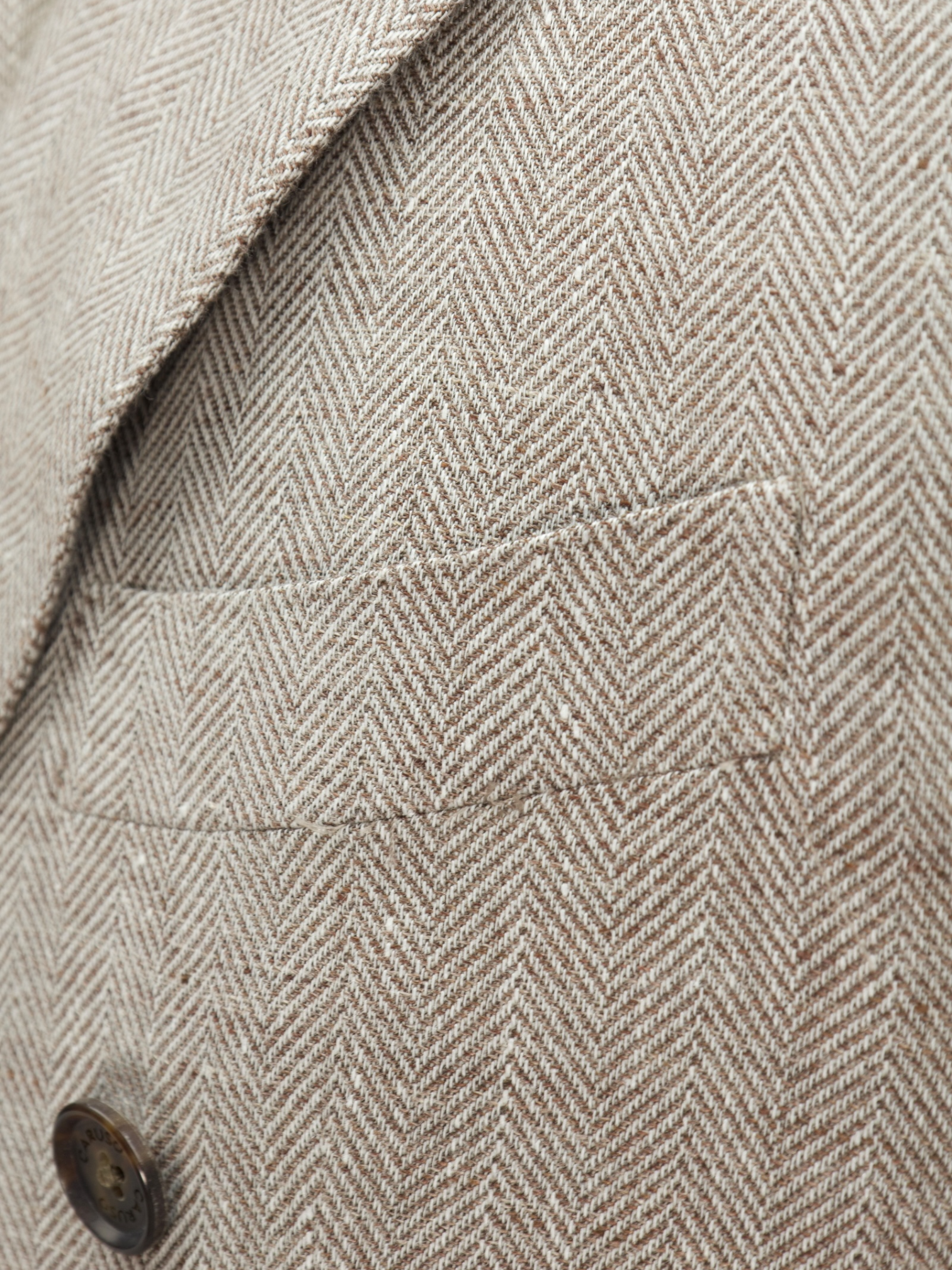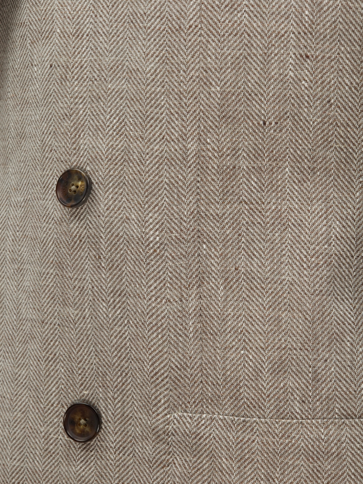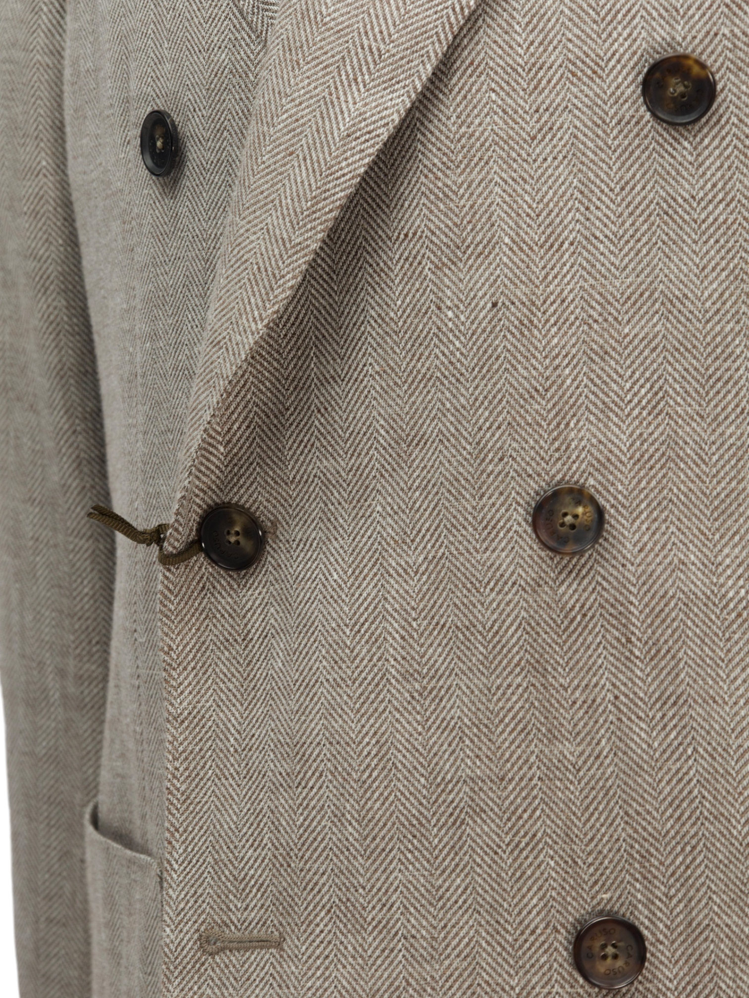 Caruso Light Brown Double Breasted Linen & Wool Herringbone Jacket