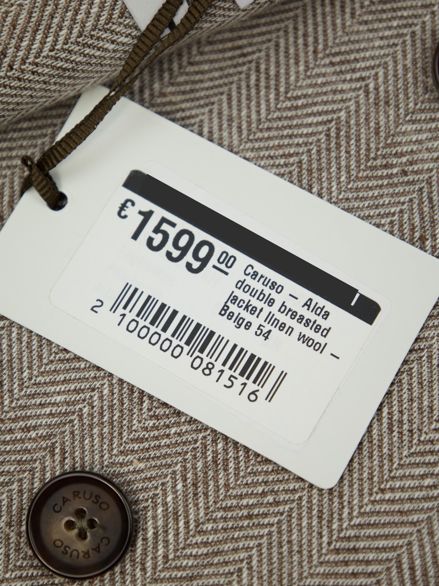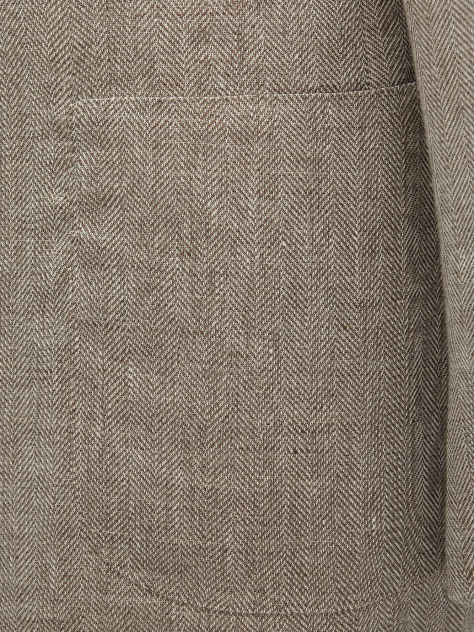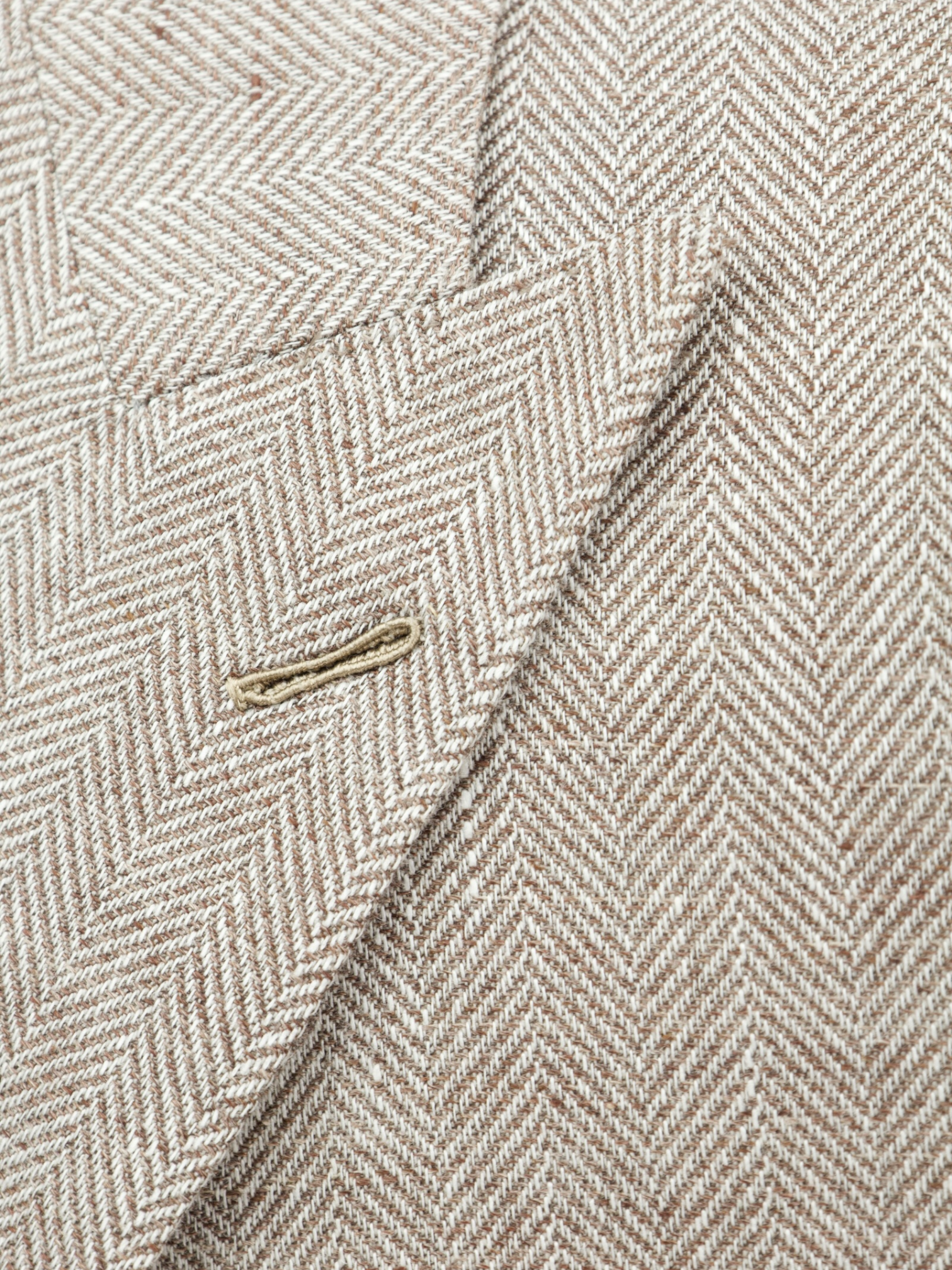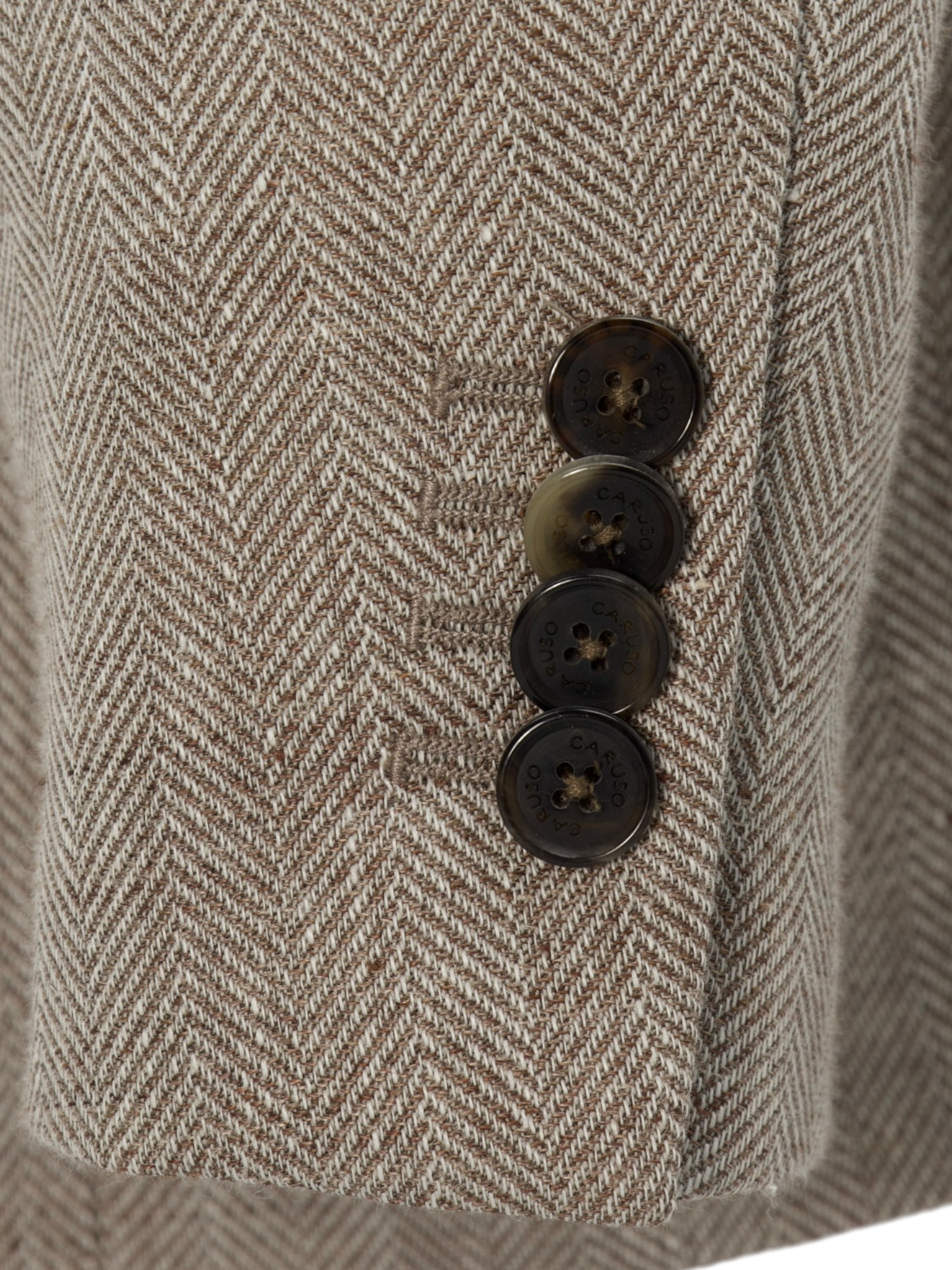 Caruso Light Brown Double Breasted Linen & Wool Herringbone Jacket