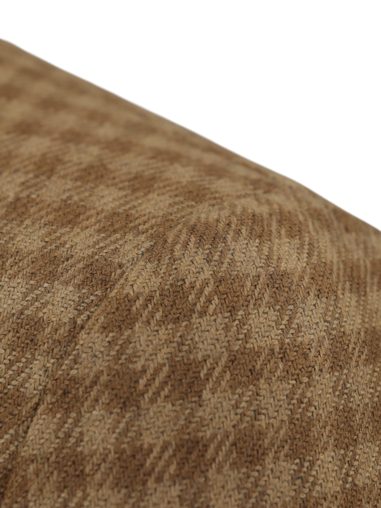 Discover the Caruso light brown “GobiGold” jacket, a refined reinterpretation of classic gingham in a richly tactile camel hair and wool blend. The gingham check—a soft interplay of golden brown and cream—offers a versatile palette that moves effortlessly between casual and polished settings. Styled with a softly constructed shoulder and a notch lapel, this jacket is cut with a modern, relaxed sensibility. It is half-lined for breathability and ease, making it a sophisticated transitional piece ideal for mild weather or layered autumn wear.
