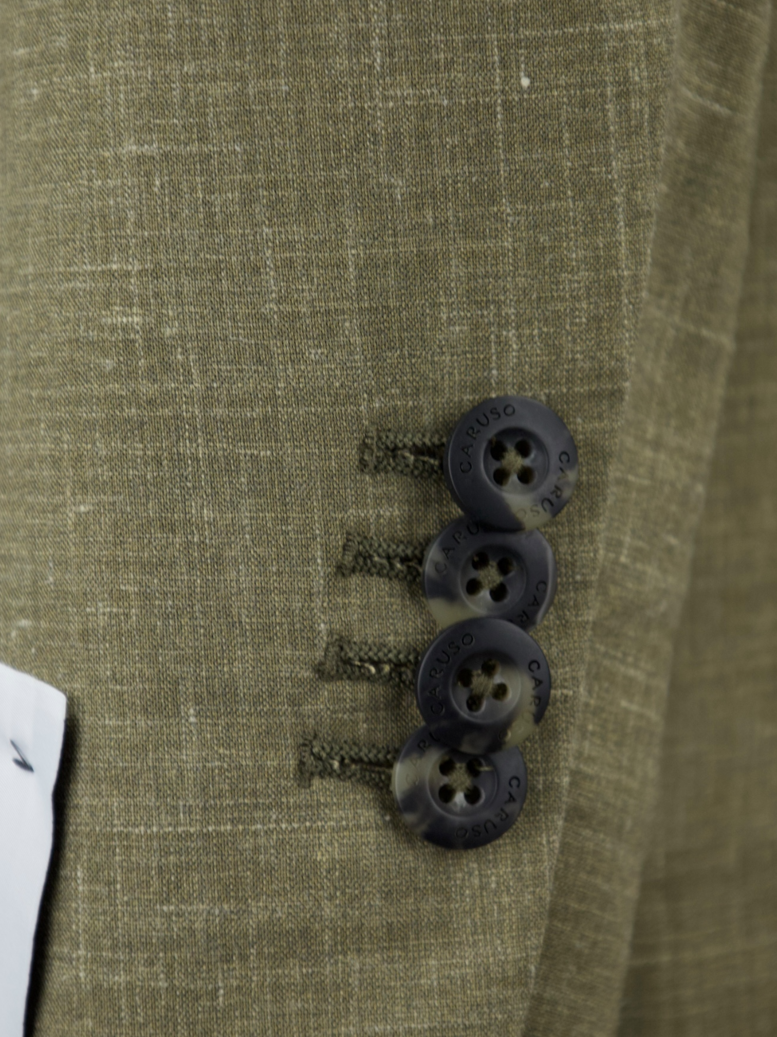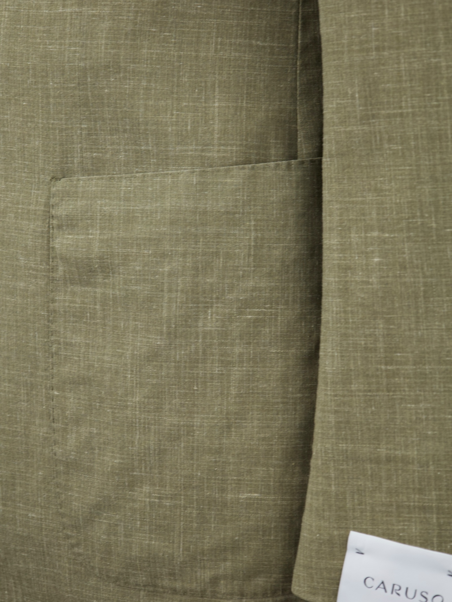 The Caruso Light Green Panarea Jacket is incredibly versatile. It can be dressed up with formal trousers and a shirt for a smart business look, or paired with casual chinos or jeans for a more relaxed ensemble. Its unique blend of materials and unconstructed style make it an essential addition for those seeking a blend of contemporary style and timeless Italian elegance.