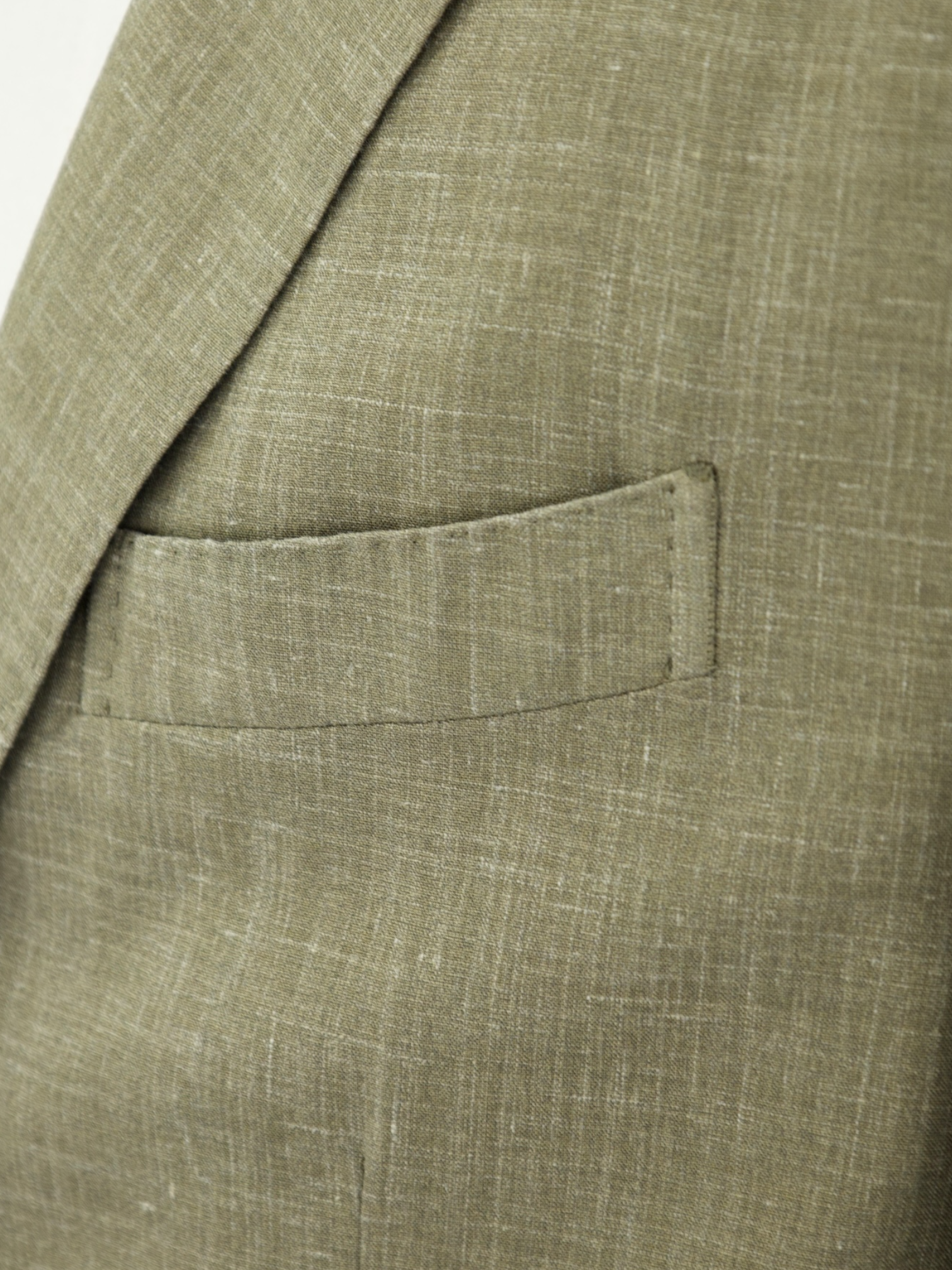 The barchetta pocket is often thought to be a tailoring detail exclusively from Italy. The word “barchetta” is Italian for “little boat.” It describes how the pocket floats on the chest, gently angled upwards, like the bow of a sailboat.