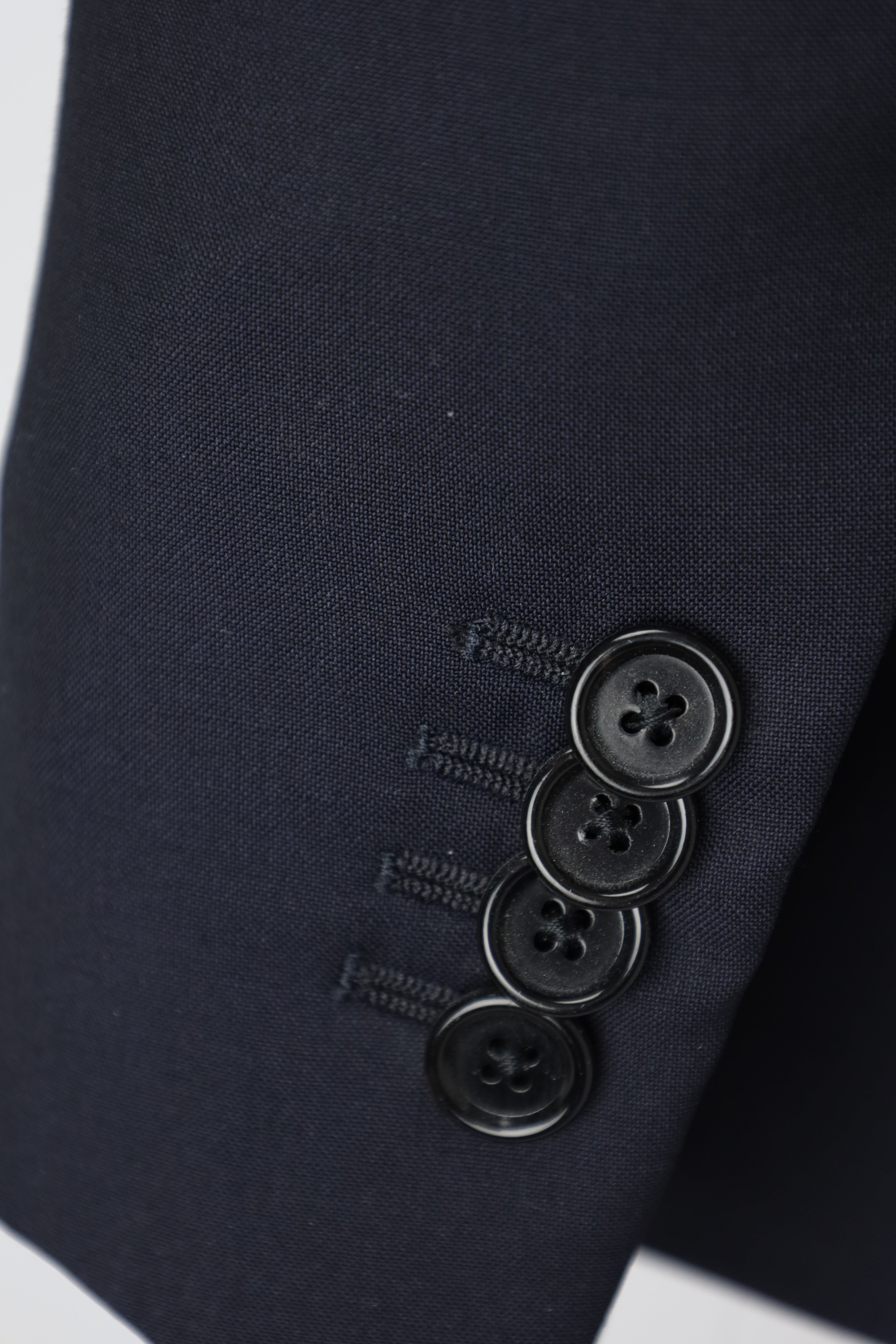 The Caruso Navy 3-Piece Wool & Mohair Suit is expertly tailored for a slim fit, featuring a distinctive six-button vest with notch lapels and a sleek jacket accented with peak lapels and a Milanese handmade buttonhole. The inclusion of mohair in the wool blend introduces a slight roughness to the texture, enhancing the suit's breathability and natural wrinkle resistance. This carefully considered design and fabric choice ensure the suit remains sharp and comfortable, reflecting sophistication and attention to detail ideal for any formal setting.