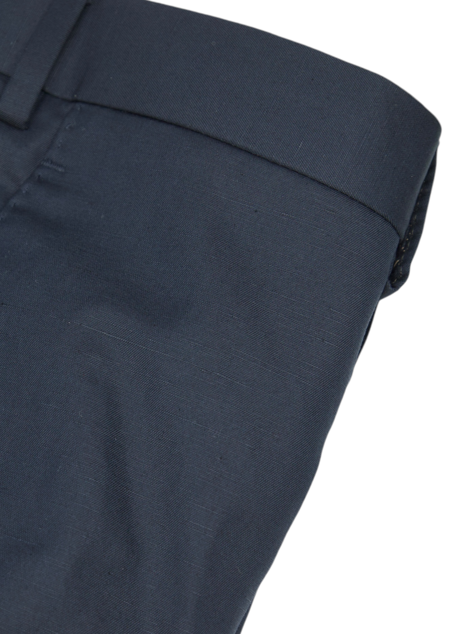 An unhemmed, or raw hem, on dress trousers refers to the unfinished bottom edge, allowing the wearer to have them tailored to their preferred length.