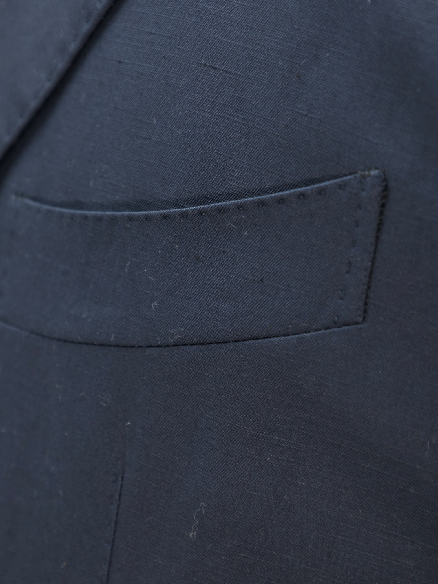 Also known as ‘barchetta’ Italian for ‘little boat’, it is so named because this pocket floats on the chest gently angled upward, just like the bow of a sailboat. These pockets echo the lively roll of a lapel that carries the spring of canvas and natural wool, unlike machine-made chest pockets that have a more stamped-out, rectangular shape and less life.