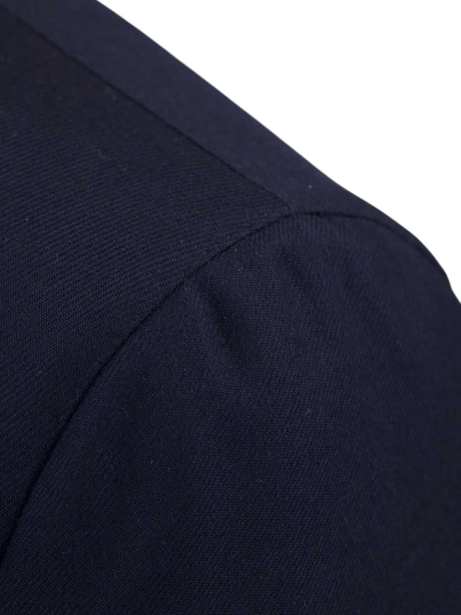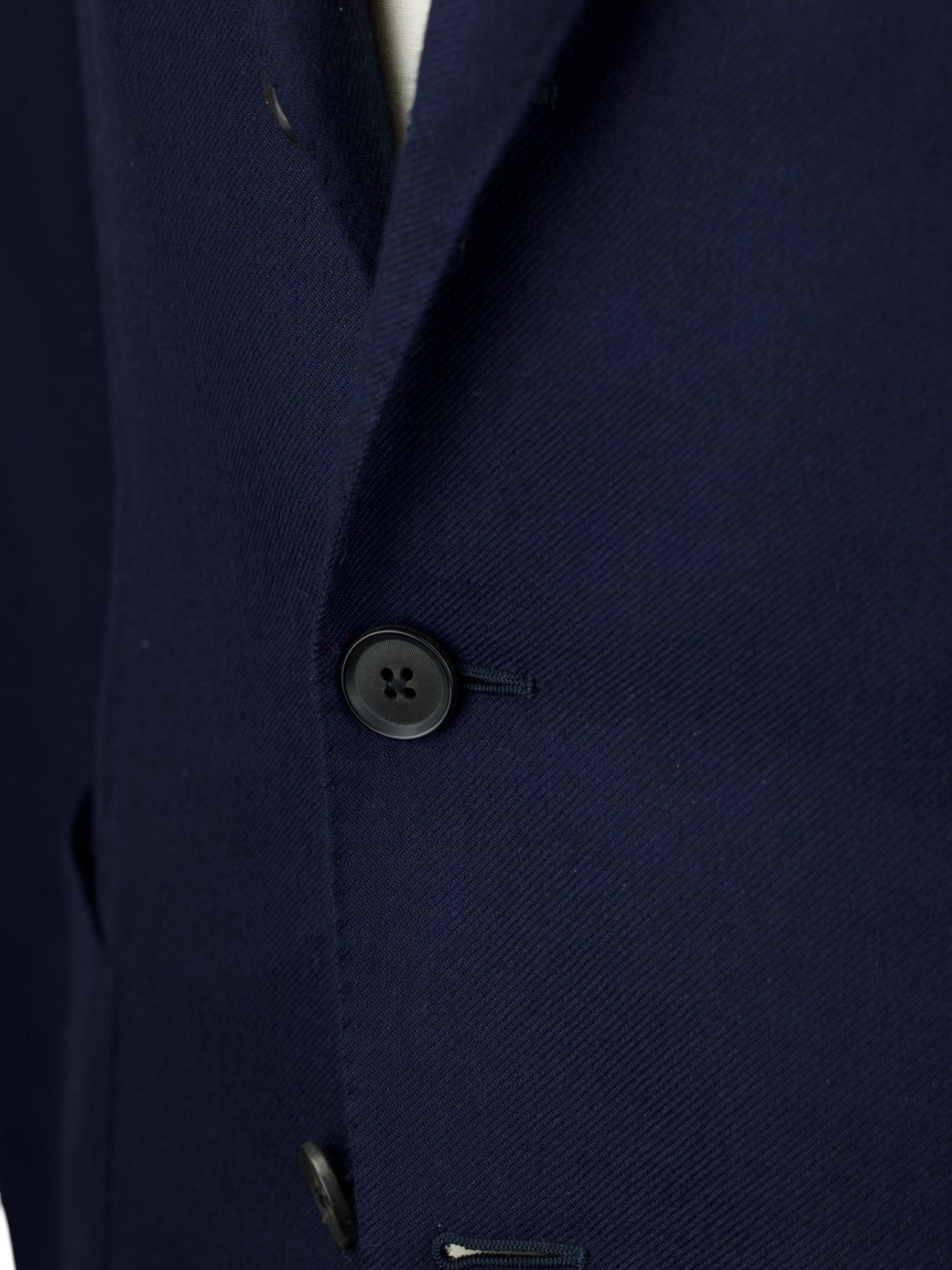 The ‘tre bottoni stirato a due’, also known as the three rolling on two lapel style, is perhaps the most infamous characteristic of the Neapolitan style jacket. The top button and buttonhole are ornamental, so are left unbuttoned. As the lapel rolls down it elegantly folds over the top button and stops just 4 cm above the second button creating the distinct roll of the lapel the style is known for. As it is intended to remain unbuttoned, the top buttonhole is actually made inside out so the beautiful side will still be visible.