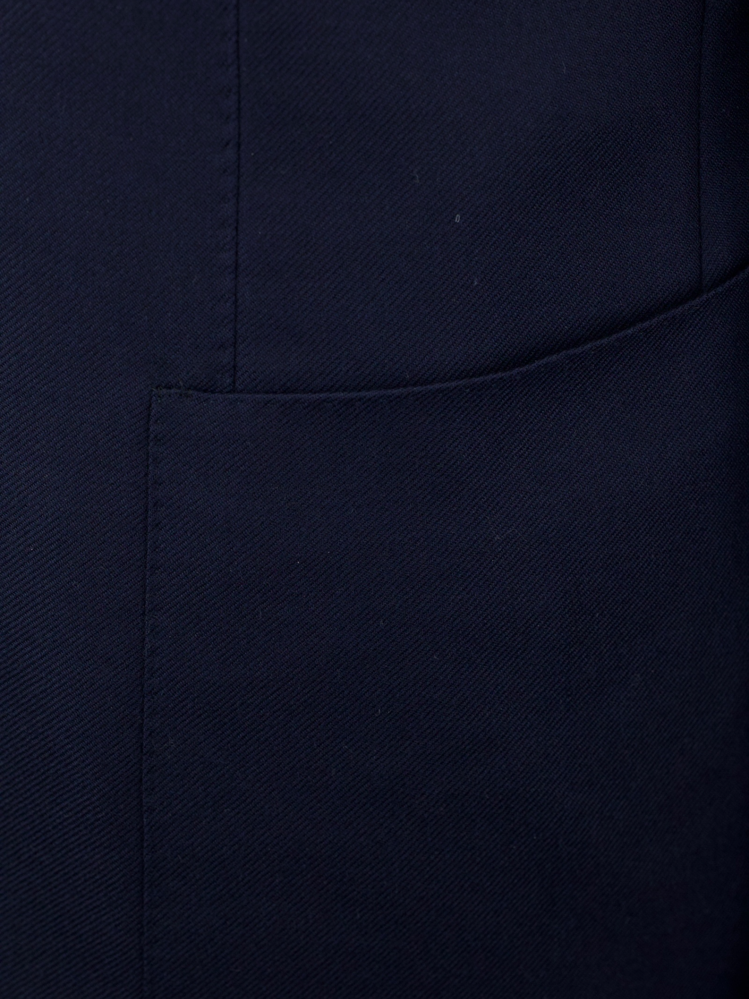 The barchetta pocket is often thought to be a tailoring detail exclusively from Italy. The word “barchetta” is Italian for “little boat.” It describes how the pocket floats on the chest, gently angled upwards, like the bow of a sailboat.