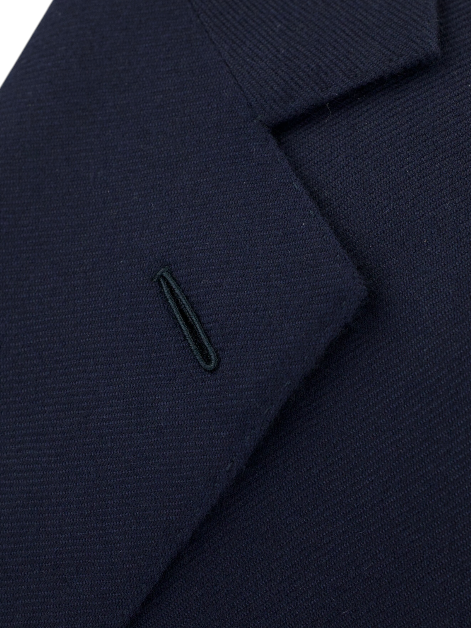 Discover the Caruso Navy Pure Cashmere Winter-Essential Twill Jacket, a masterclass in understated indulgence for the colder months. Cut from pure cashmere in a soft twill weave, the fabric offers exceptional warmth with a buttery hand, cloaked in a deep navy hue that feels both timeless and quietly opulent. The jacket is tailored in Caruso’s relaxed Aida silhouette with classic notch lapels, patch pockets, and refined horn buttons, while the hand-finished Milanese buttonhole at the lapel adds a discreet note of craftsmanship. A half-lined interior allows the luxurious cloth to drape with ease and natural movement.
