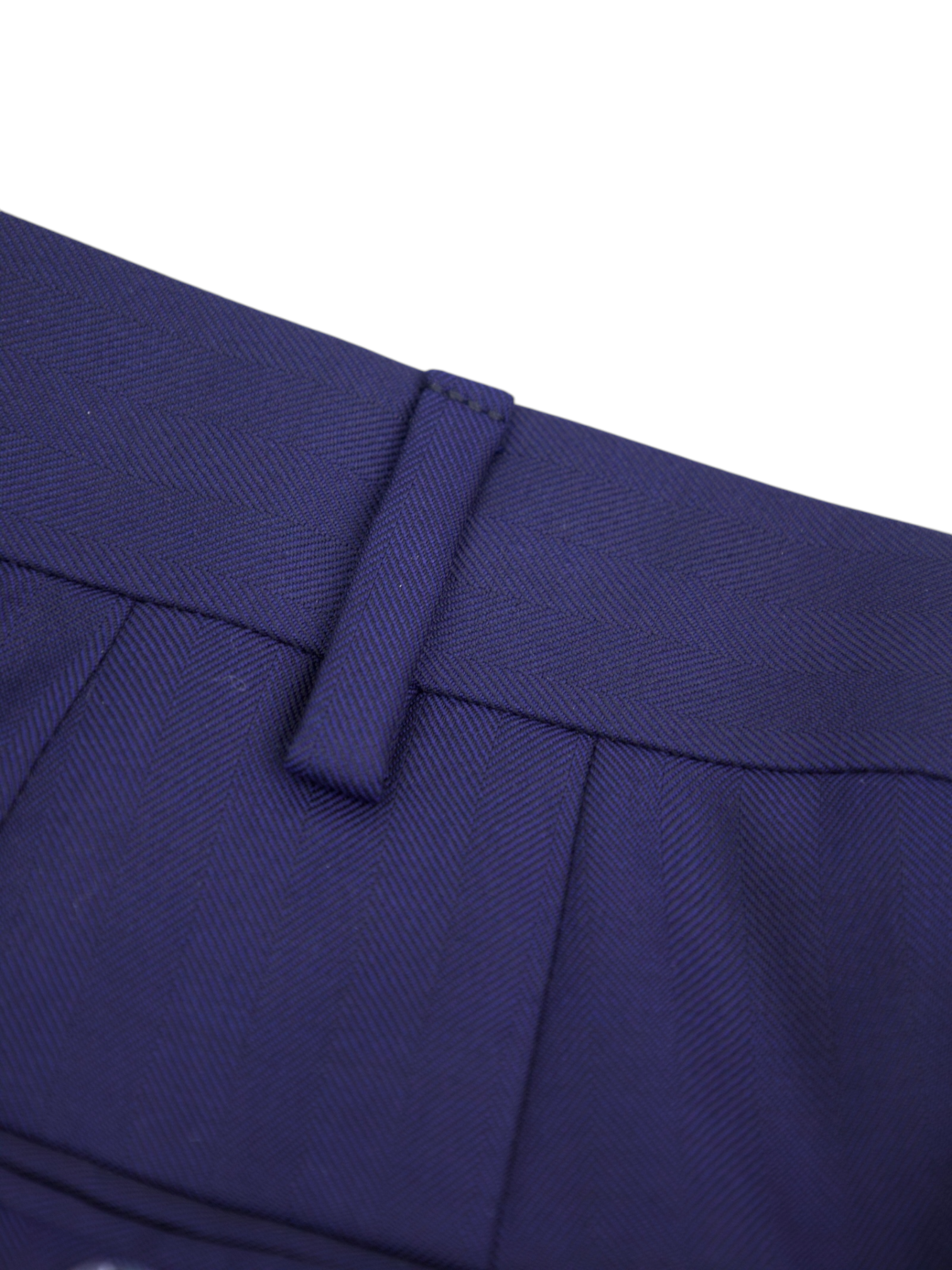 The turn-up hem, or cuffed hem, is a classic style where the fabric at the bottom of the trousers is folded outward to create a visible cuff. This style originated with Edward VII in the late 19th century, who had his trousers tailored with cuffs to prevent them from getting muddy, sparking a trend among the fashionable elite. In the 1920s and 1930s, turn-ups became a symbol of wealth and sophistication, as having extra fabric was seen as a luxury. This association continued after World War II when wearing turn-ups subtly indicated affluence in an era of fabric rationing. Today, turn-up hems are a nod to their historical roots, offering a touch of classic elegance and enhancing the overall appearance of formal and tailored trousers.