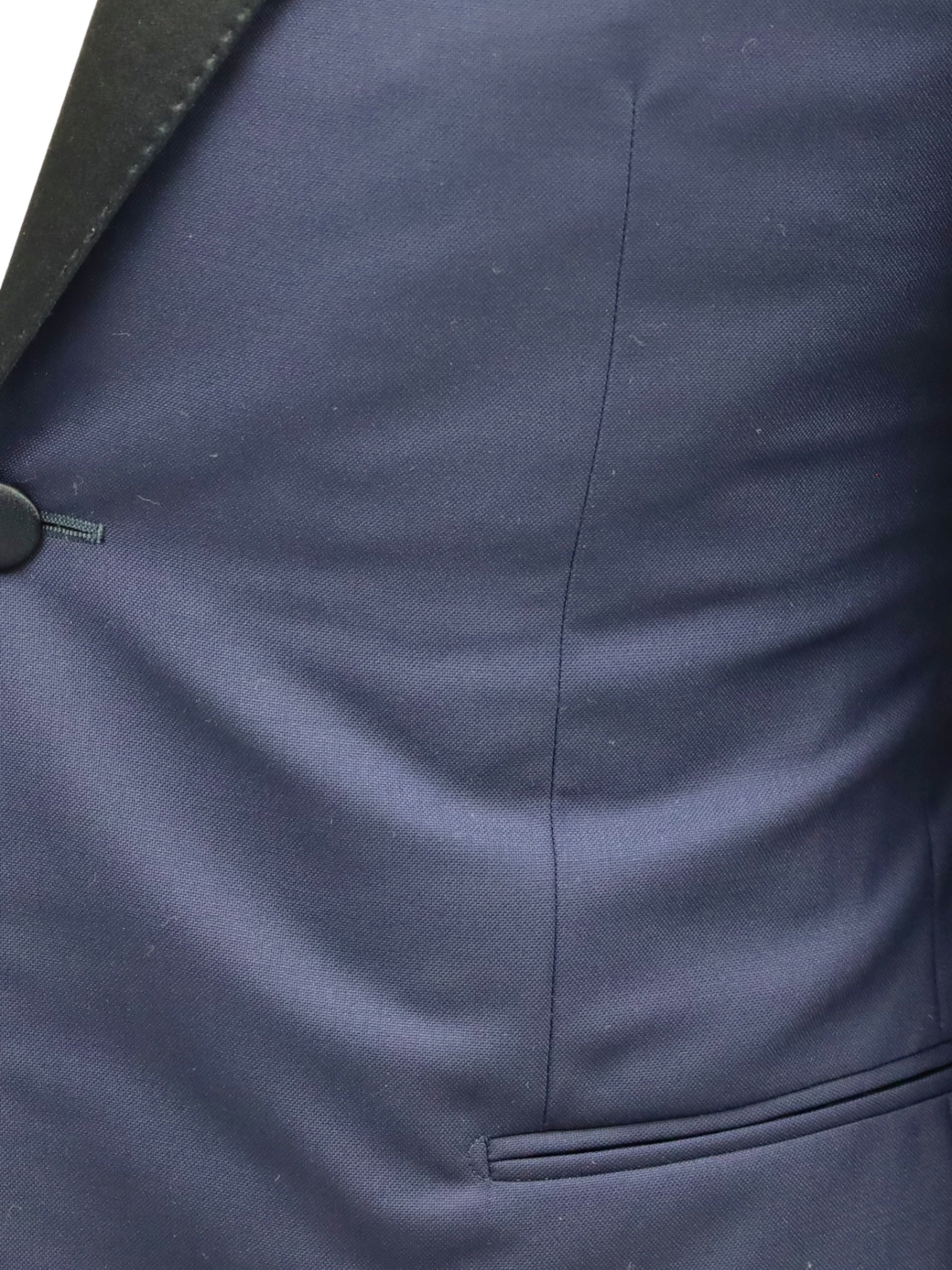 Meet the Caruso Navy Slim Fit Tuxedo: the ultimate blend of modern class and timeless elegance. Made from top-notch "Quattroventi" Super 150's Merino Wool from the (best) Italian mill Loro Piana. This tuxedo is cut to a slim fit that flatters your frame, ready to turn heads at any upscale event. Its deep navy color breaks away from the classic black, offering a stylish twist that's both versatile and subtly sophisticated. Every detail, from the polished lapels to the fitted trousers, is crafted with precision, ensuring you look sharp from every angle. Perfect for weddings, galas, or that special black-tie event, the Navy Slim Fit Tuxedo is all about making an impact with elegance.