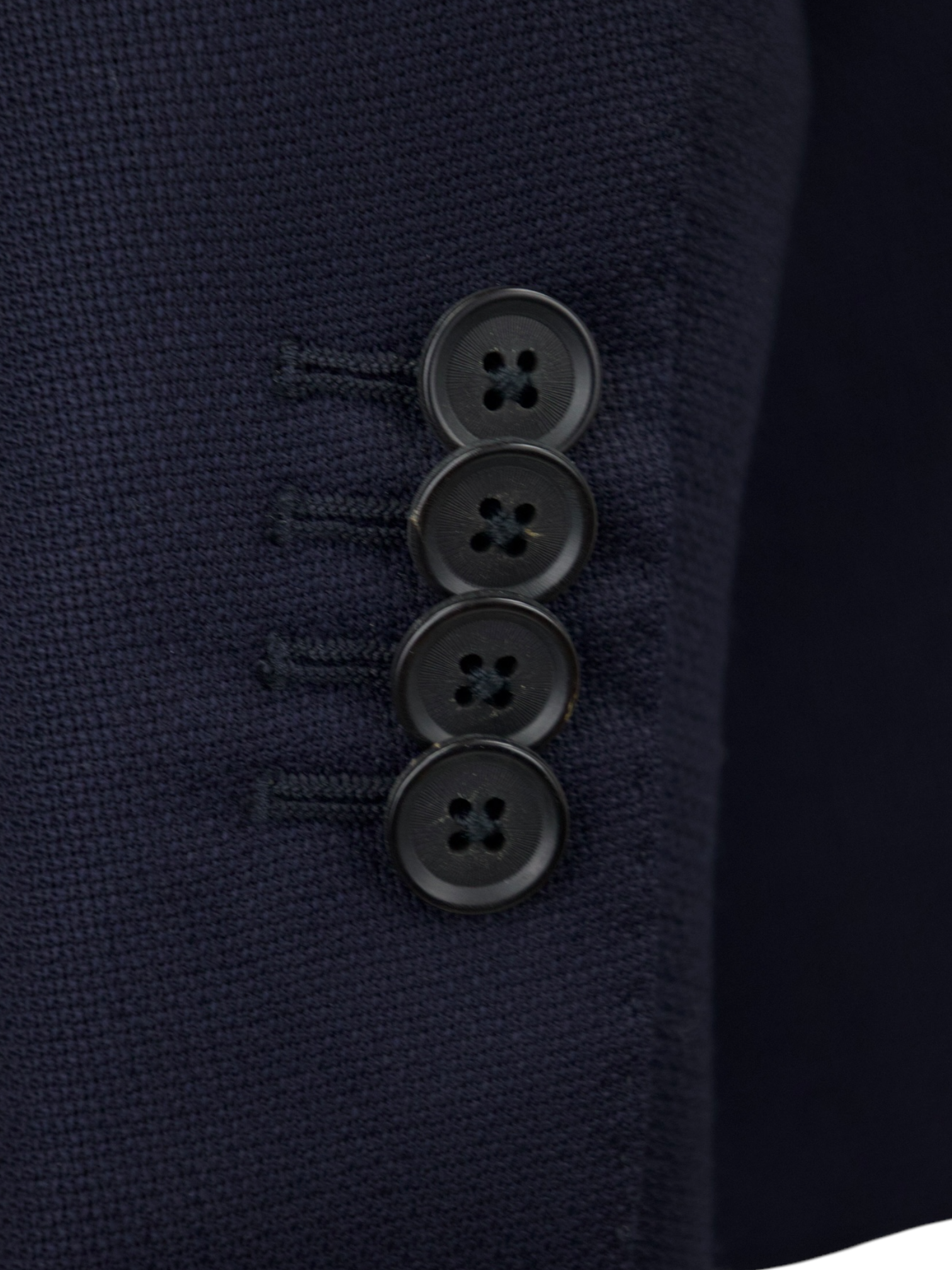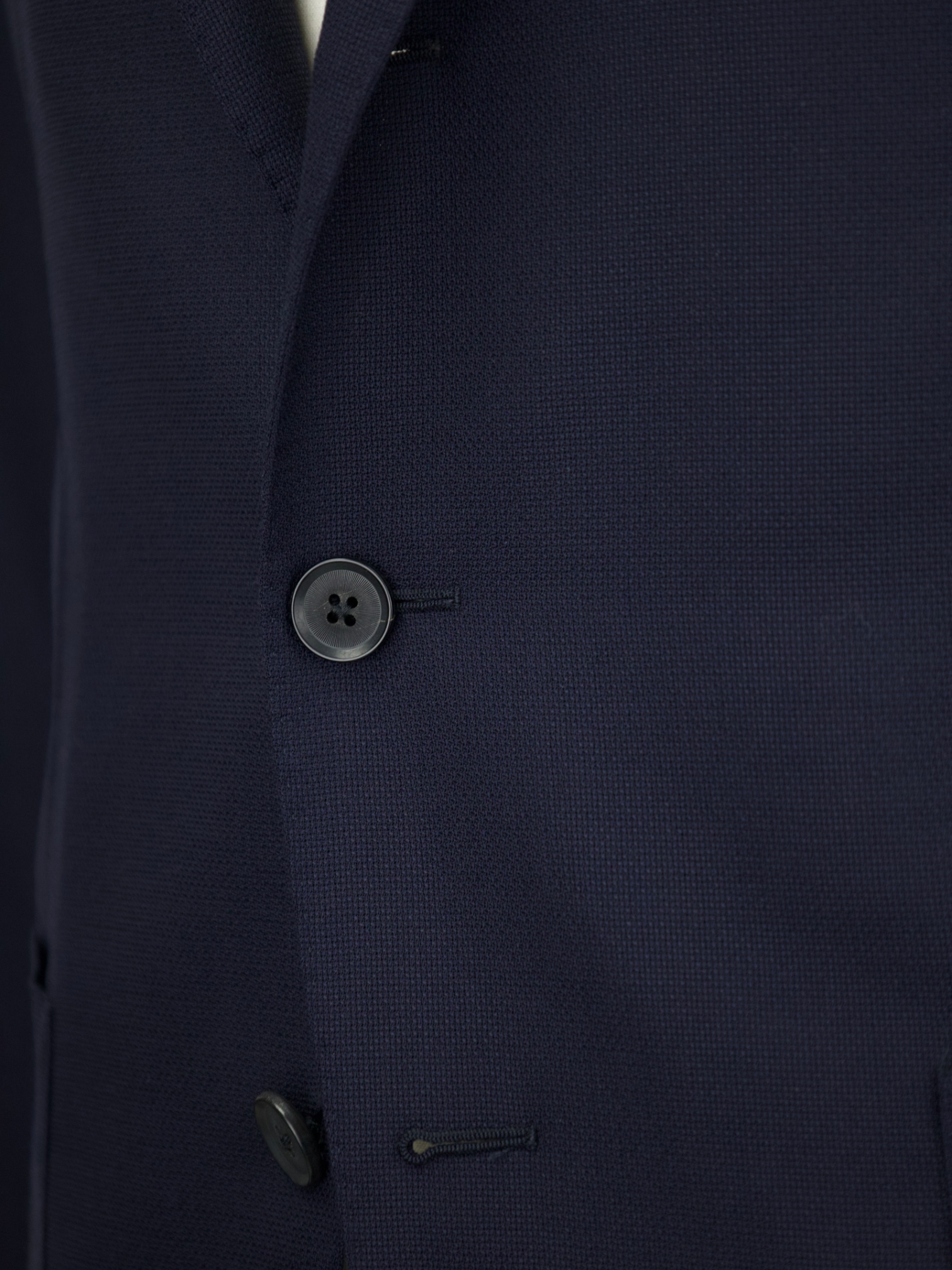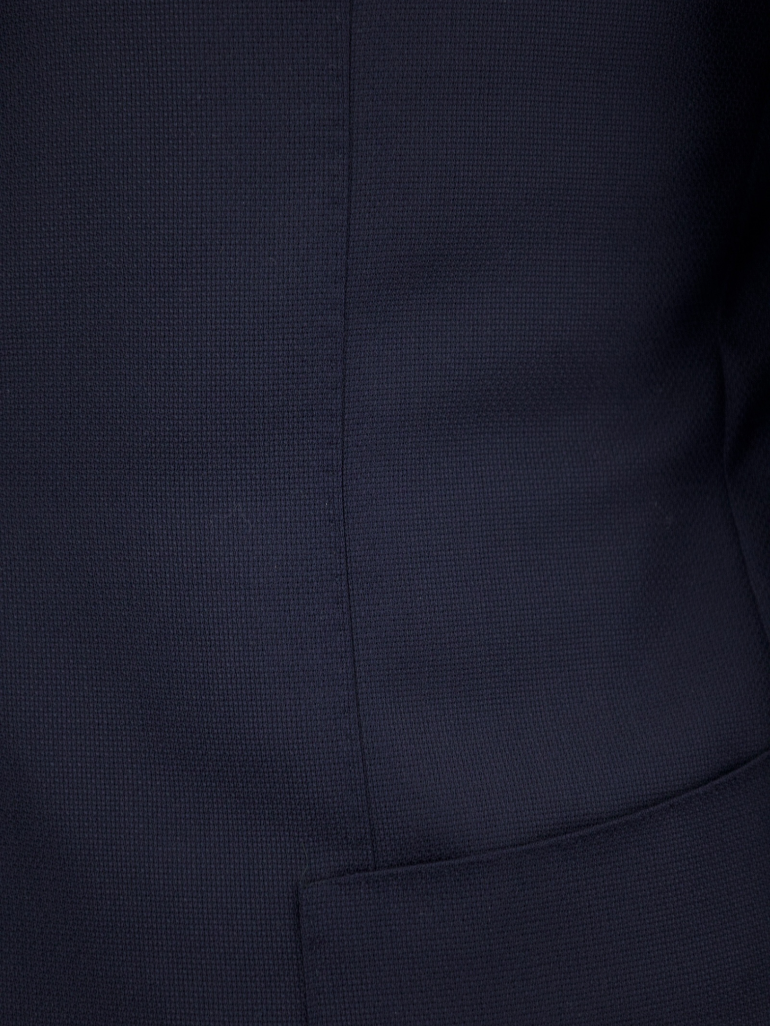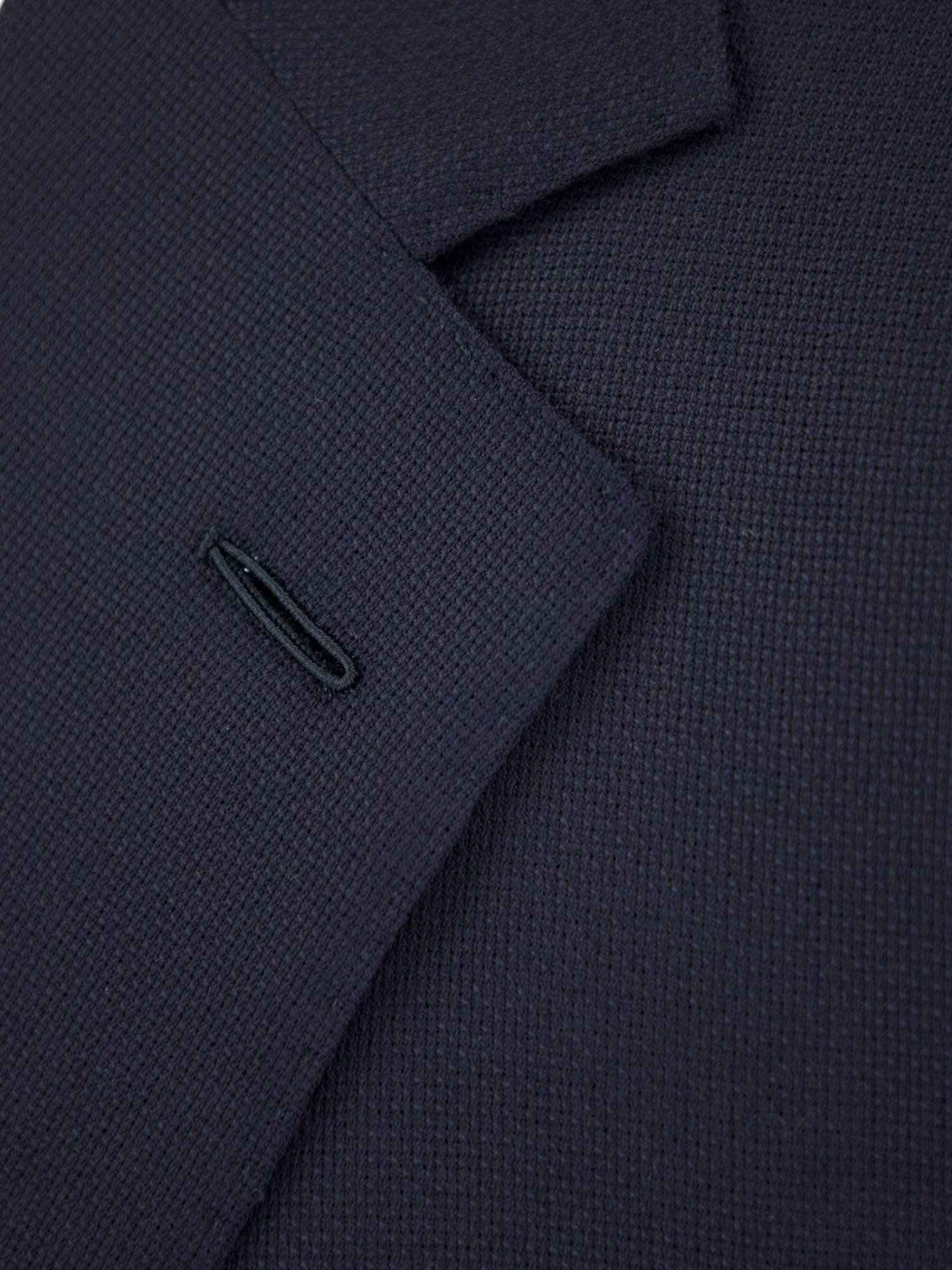 Discover the Caruso navy Zelander merino wool jacket, a refined blend of soft tailoring and modern versatility. Crafted in a distinctive basket-weave pattern, the fabric offers both texture and depth while maintaining a lightweight, breathable feel. The deep navy hue enhances its timeless appeal, making it a wardrobe staple for both business and casual settings. Featuring classic notch lapels, patch pockets, and a half-lined construction, this jacket drapes effortlessly, offering comfort without compromising on structure.
