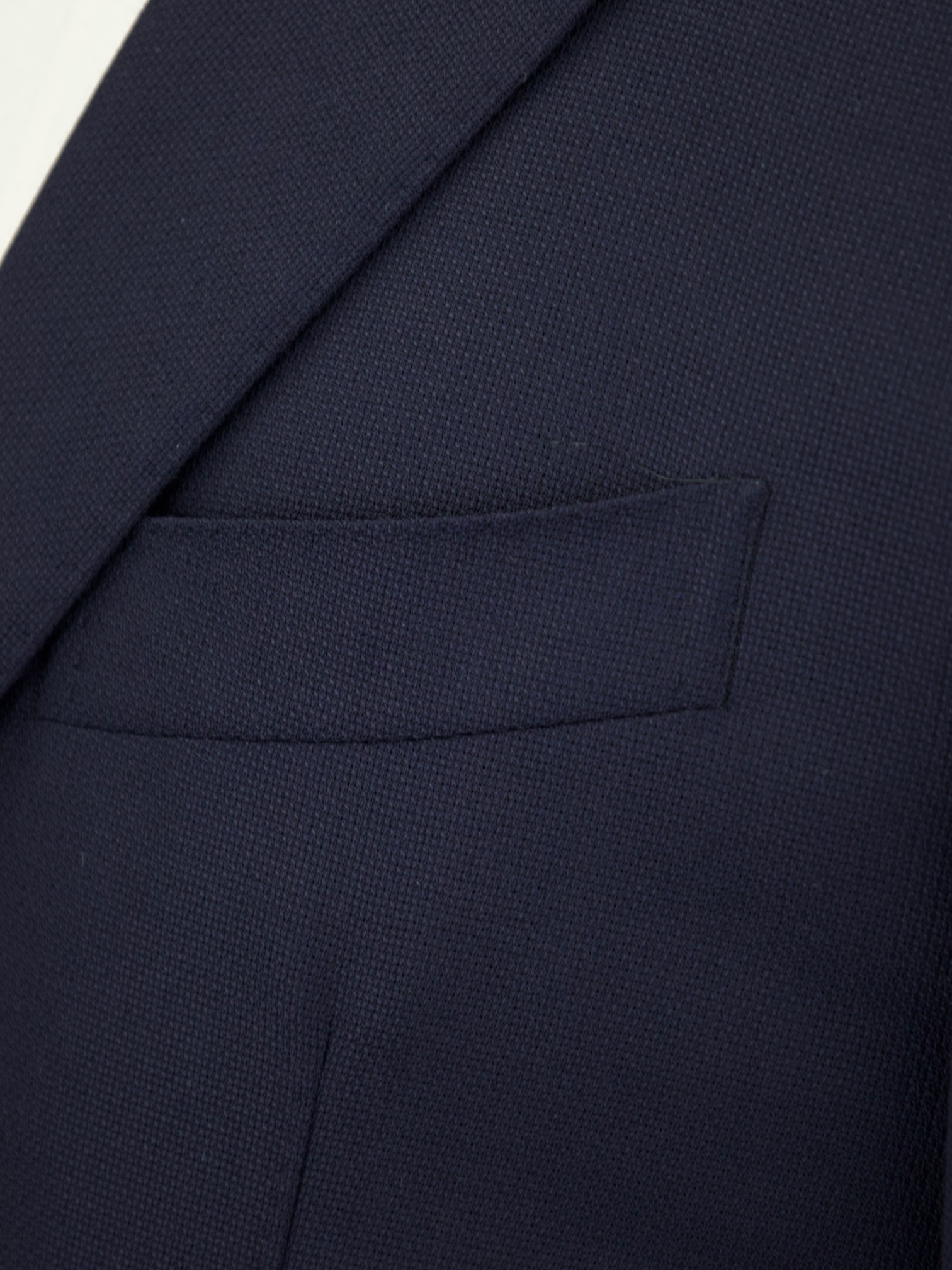The barchetta pocket is often thought to be a tailoring detail exclusively from Italy. The word “barchetta” is Italian for “little boat.” It describes how the pocket floats on the chest, gently angled upwards, like the bow of a sailboat.