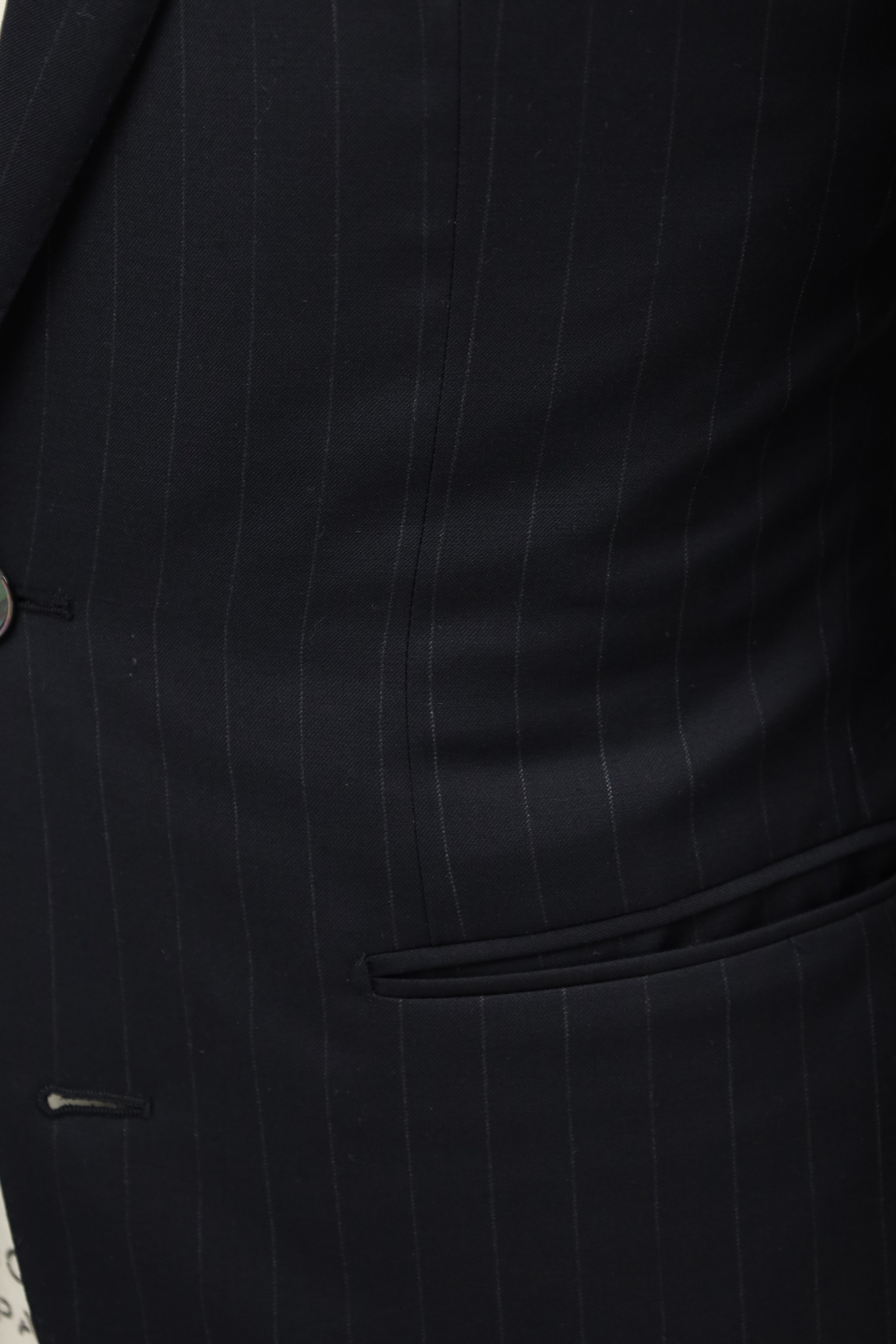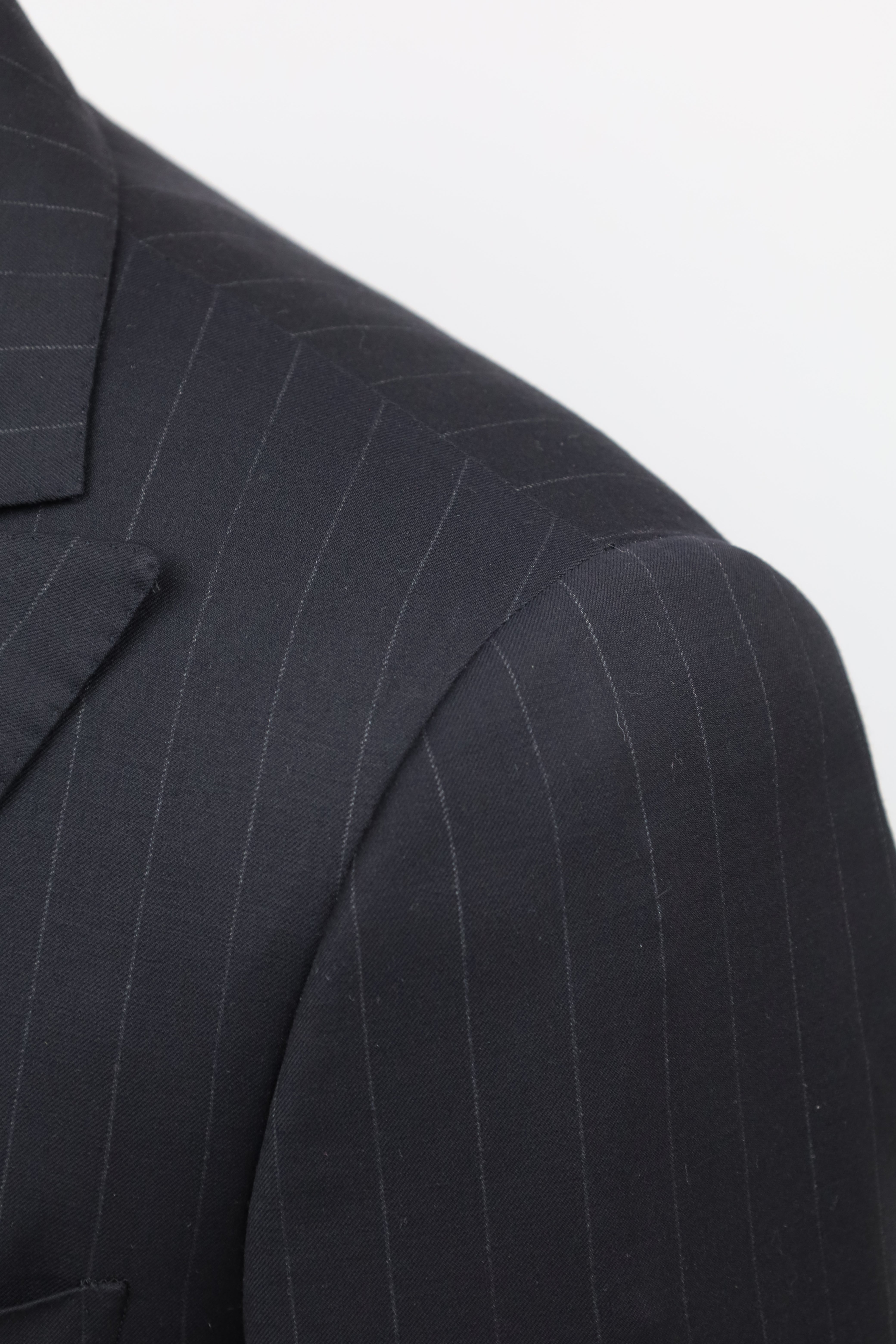 The tailors adds two darts - think of them as pinched seams - to ensure the jacket’s body achieves a slim silhouette. The process, called mezzo punto riprese, is done entirely by hand.