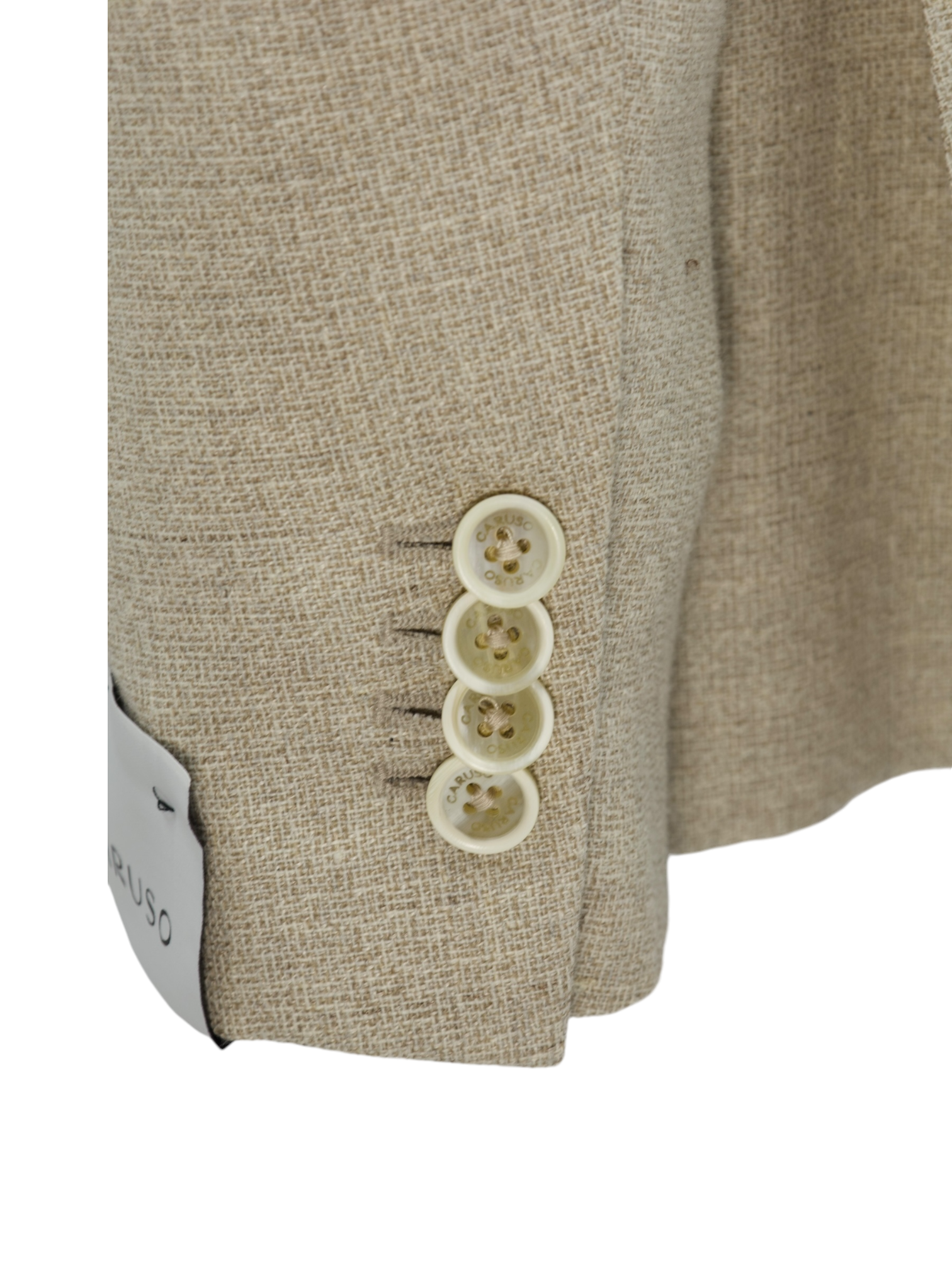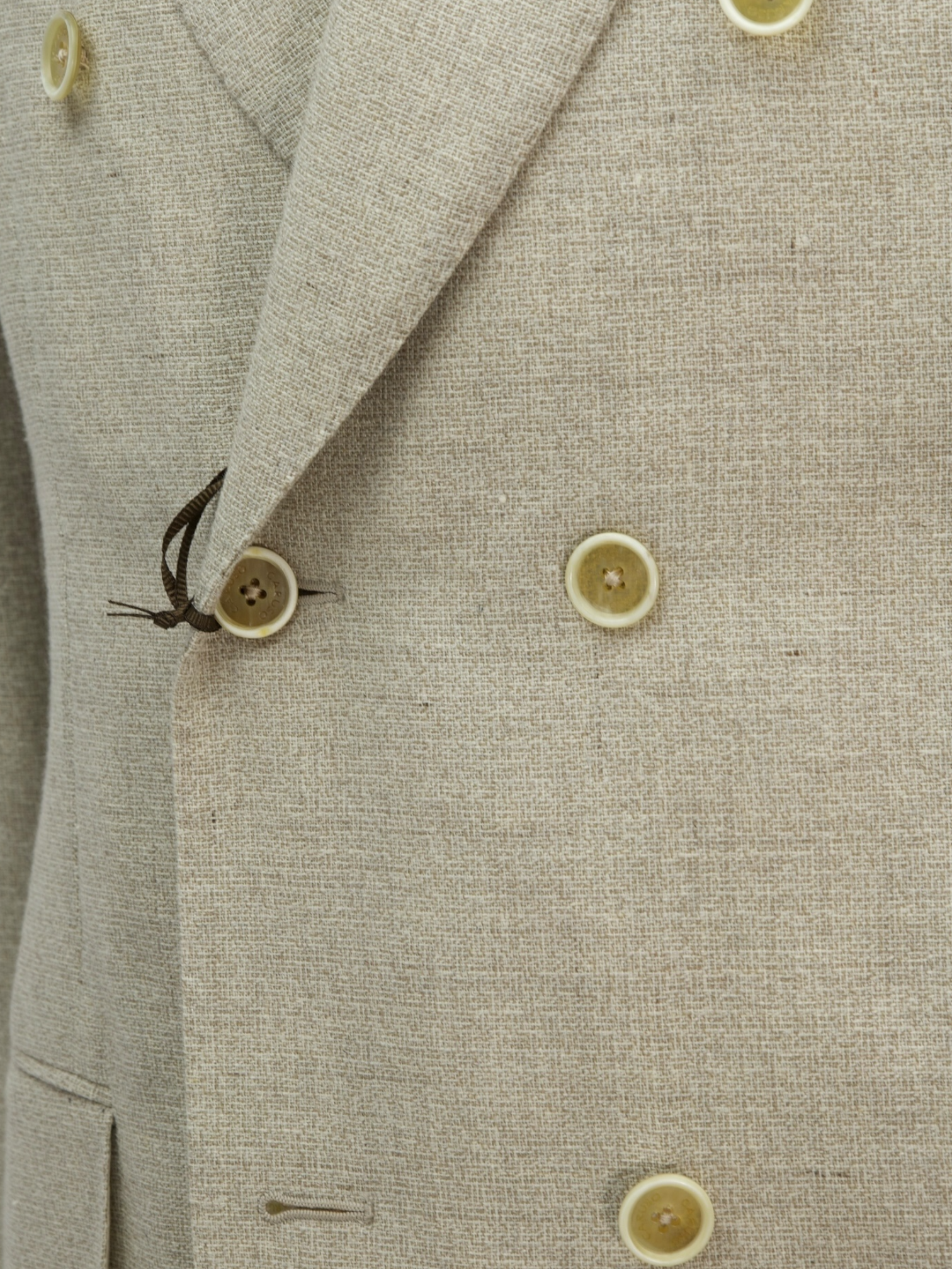 Caruso Sand Double Breasted Cotton, Linen & Wool Figaro Jacket
