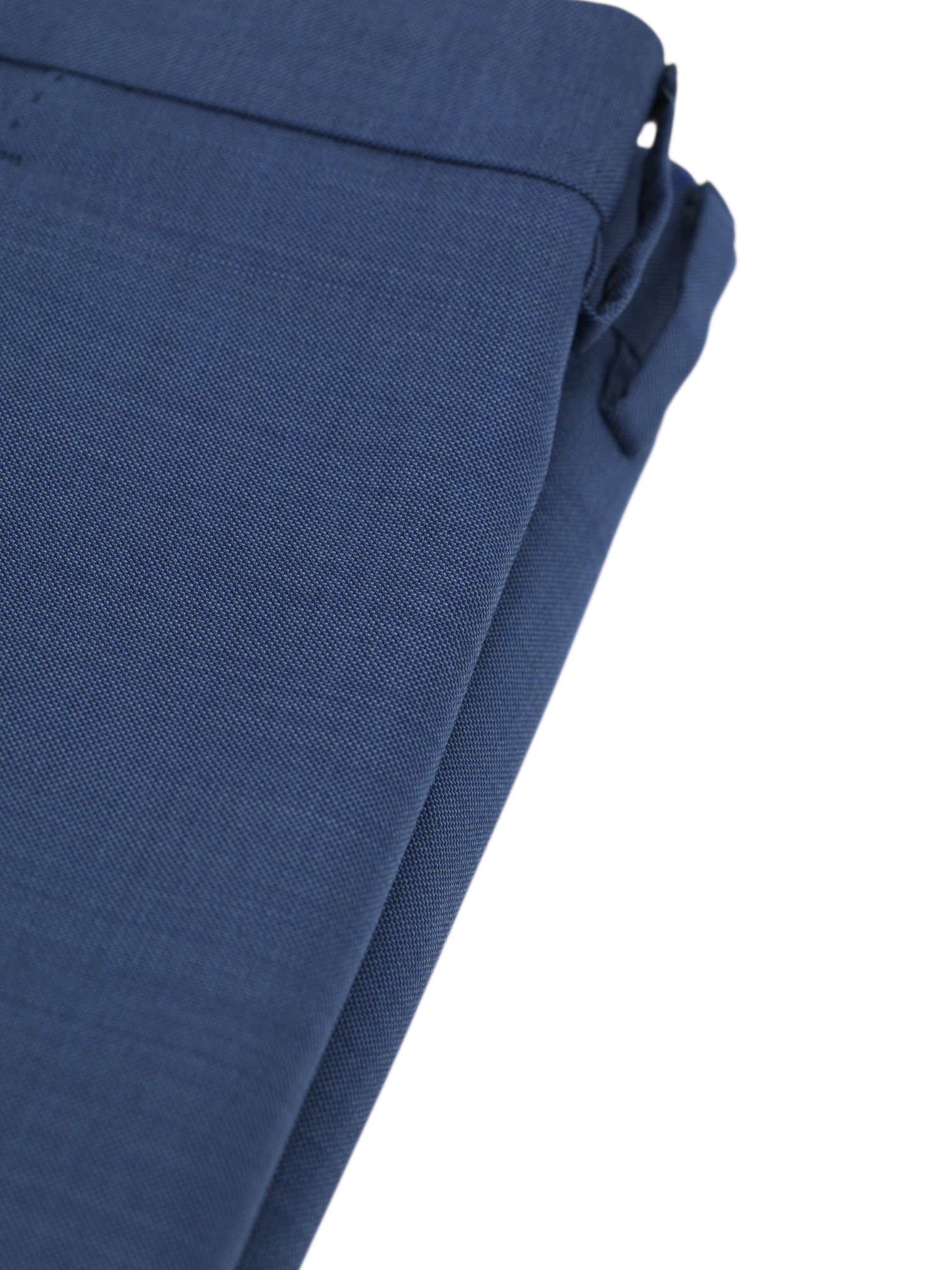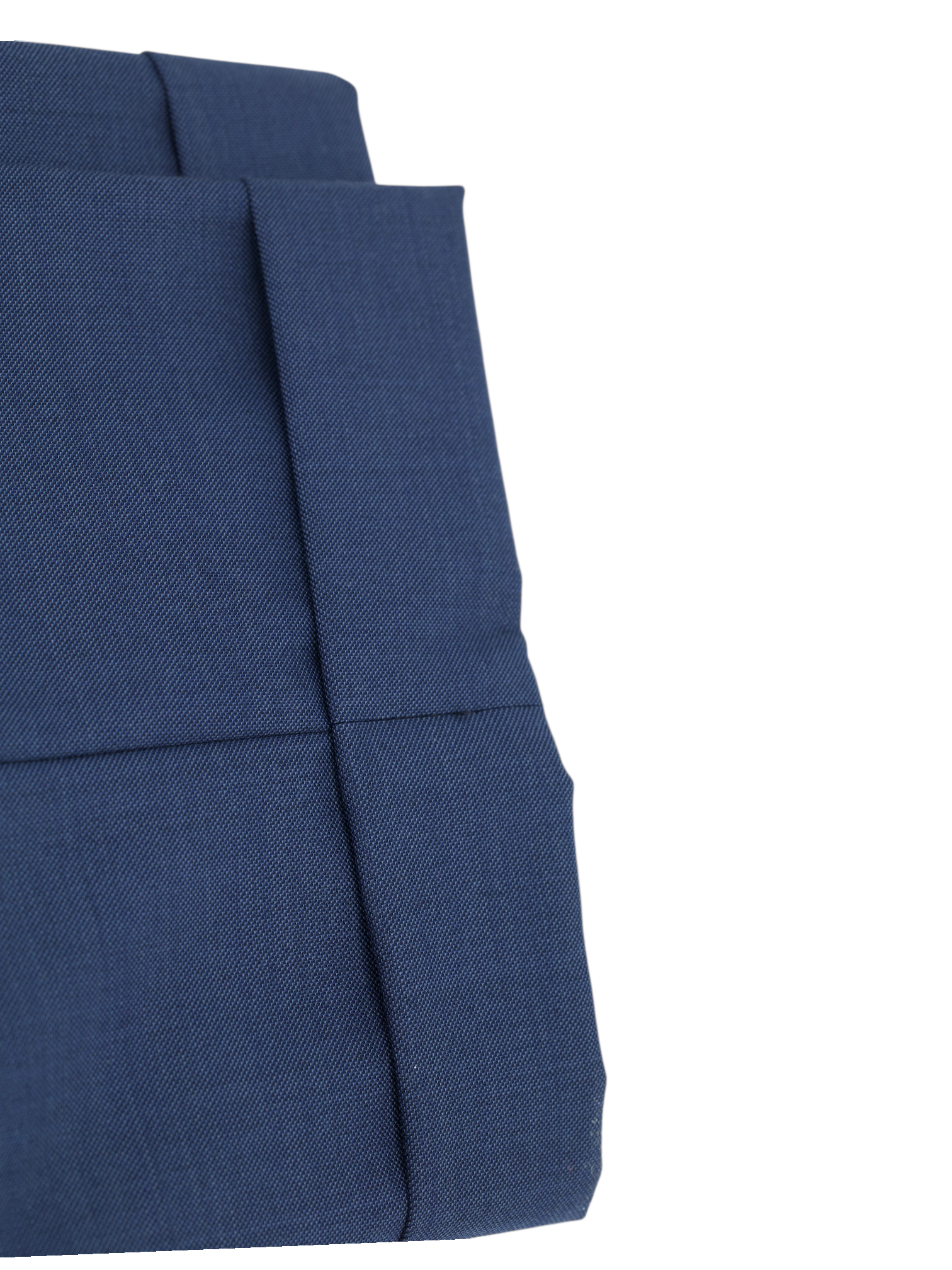 Discover the contemporary poise of this Caruso suit, tailored in a refined steel blue Super 130’s wool with a subtle sharkskin weave that lends texture and depth without overwhelming the silhouette. The jacket features notch lapels, flap pockets, and a clean, modern line, balanced by a softly structured shoulder that speaks to Caruso’s quiet confidence in form. Flat front trousers with turn-ups complete the look, offering a nod to classic Italian style while maintaining a sharp, tailored profile suitable for business or semi-formal occasions.