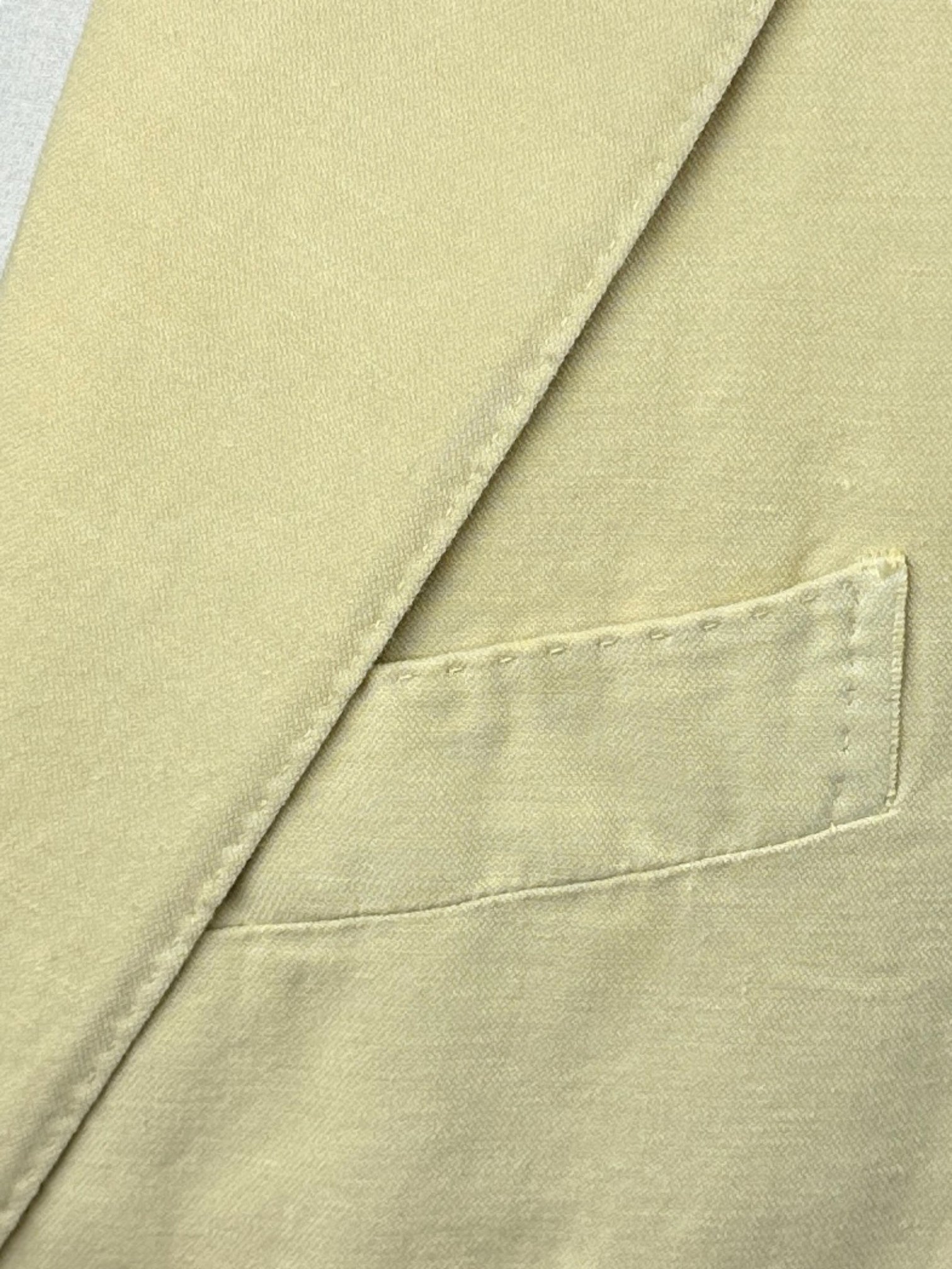 The barchetta pocket is often thought to be a tailoring detail exclusively from Italy. The word “barchetta” is Italian for “little boat.” It describes how the pocket floats on the chest, gently angled upwards, like the bow of a sailboat.