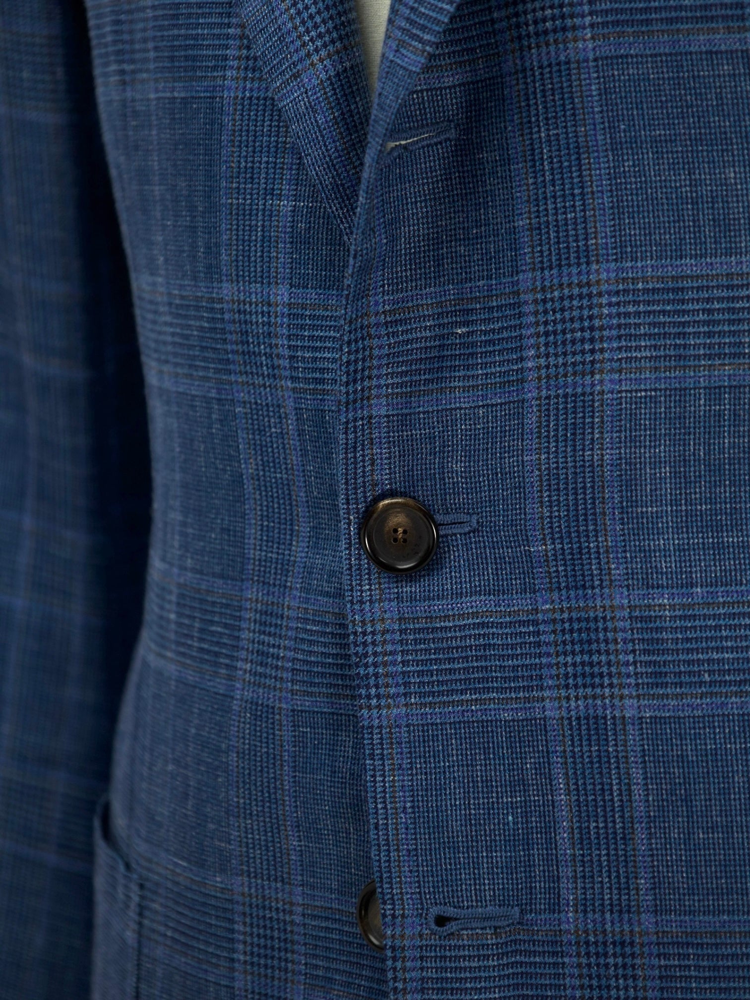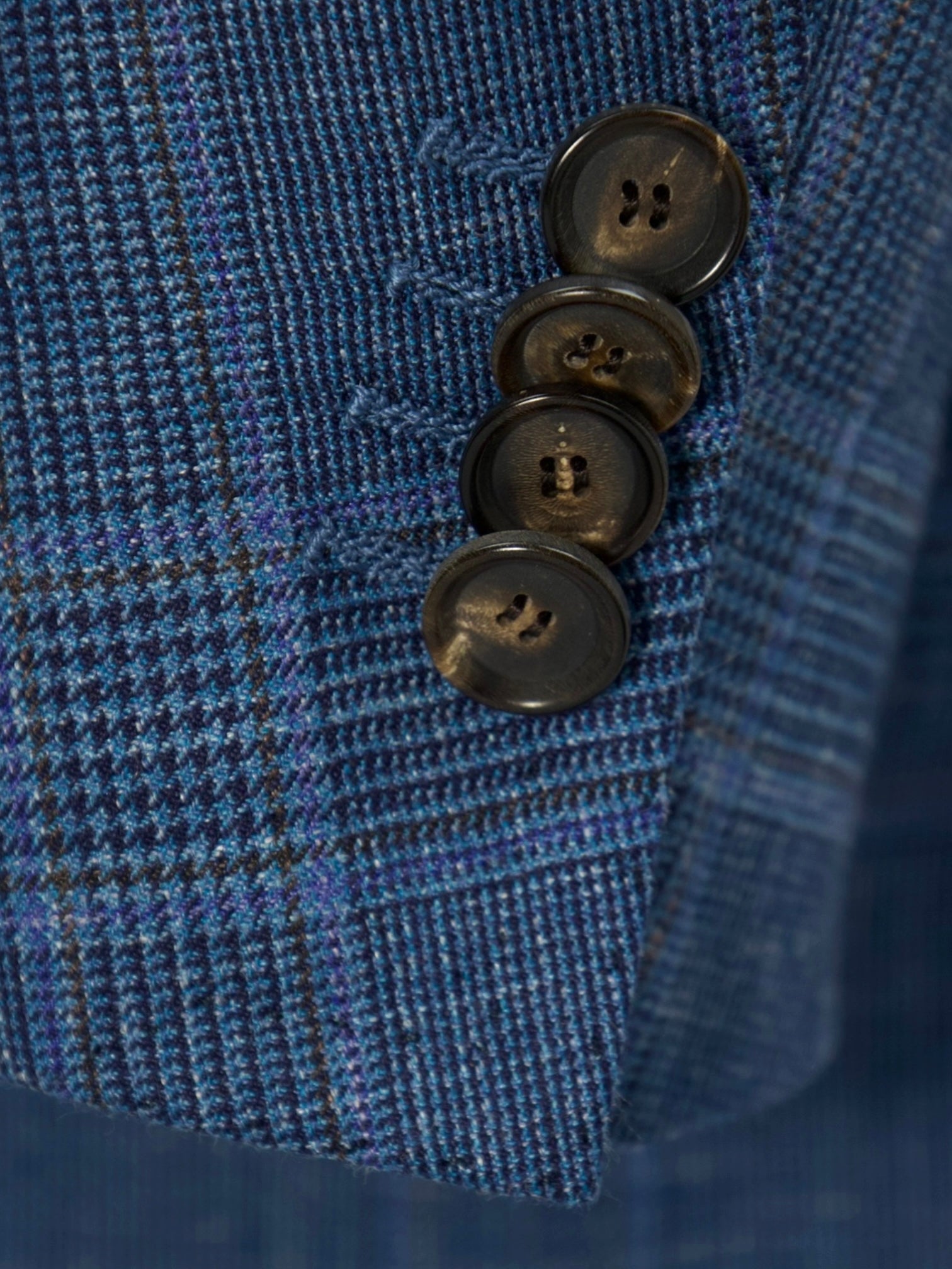 Also known as stacked buttons or waterfall buttons, kissing buttons are associated with Italian tailoring as Italian tailors make their jacket sleeve buttons in the kissing style. In this style, buttons touch each other and overlap one another. Handmade buttonholes; Even this step, apparently the simplest, is treated with an abundance of detail. Attaching the buttons is a job that requires patience and must be completed to perfection.