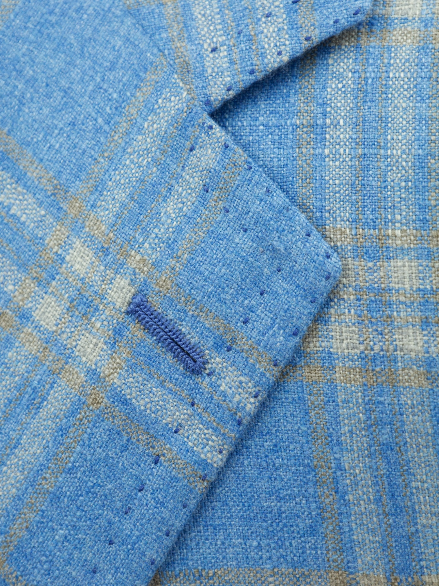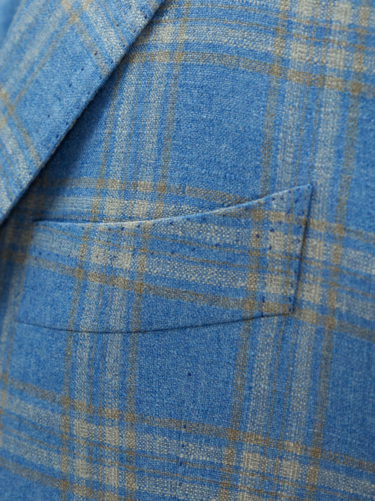 Cesare Attolini Aqua Blue Silk & Cashmere Tartan Jacket