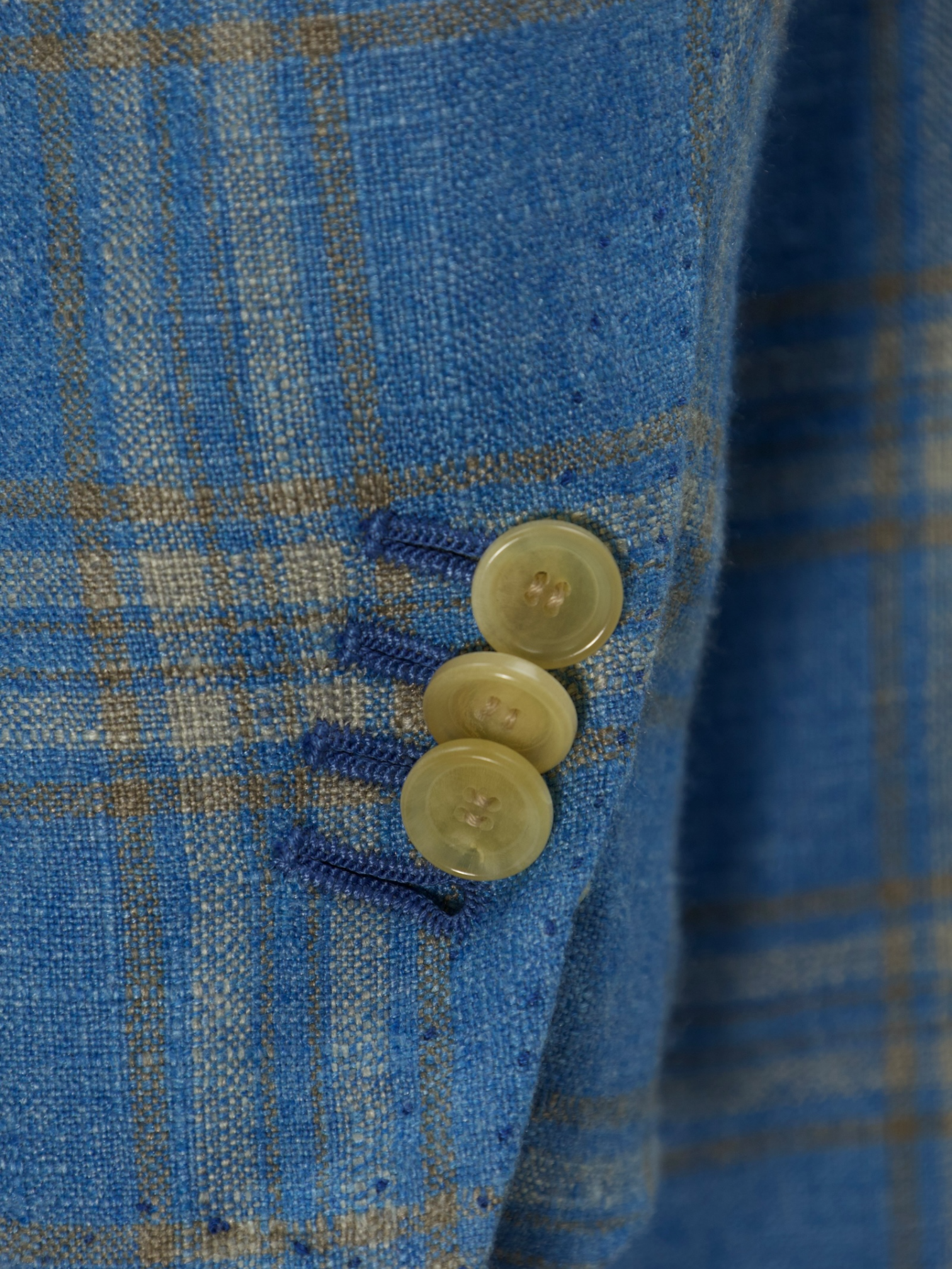 Also known as stacked buttons or waterfall buttons, kissing buttons are associated with Italian tailoring as Italian tailors make their jacket sleeve buttons in the kissing style. In this style, buttons touch each other and overlap one another. Handmade buttonholes; Even this step, apparently the simplest, is treated with an abundance of detail. Attaching the buttons is a job that requires patience and must be completed to perfection.