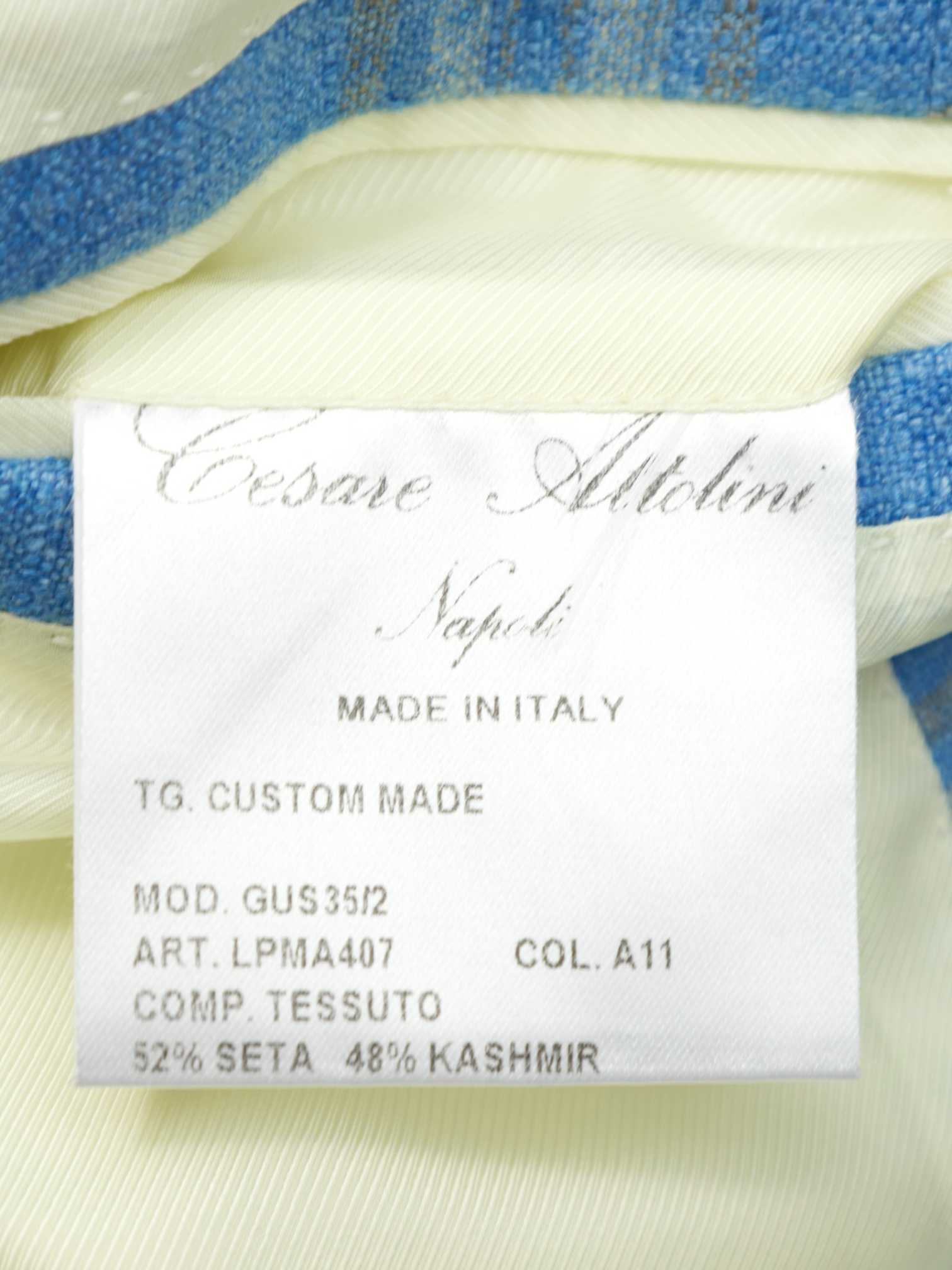 Handcrafted in Cesare Attolini’s renowned Casalnuovo workshop near Naples, this jacket embodies the brand’s commitment to meticulous craftsmanship and sartorial excellence. The jacket features notch lapels, a single-breasted closure, and a tailored fit, making it a versatile choice for both formal and smart-casual occasions. The attention to detail in every stitch reflects the over 25 hours of skilled labor that goes into creating each piece, ensuring a garment that is both timeless and contemporary. Discover the elaborated sartorial details below.
