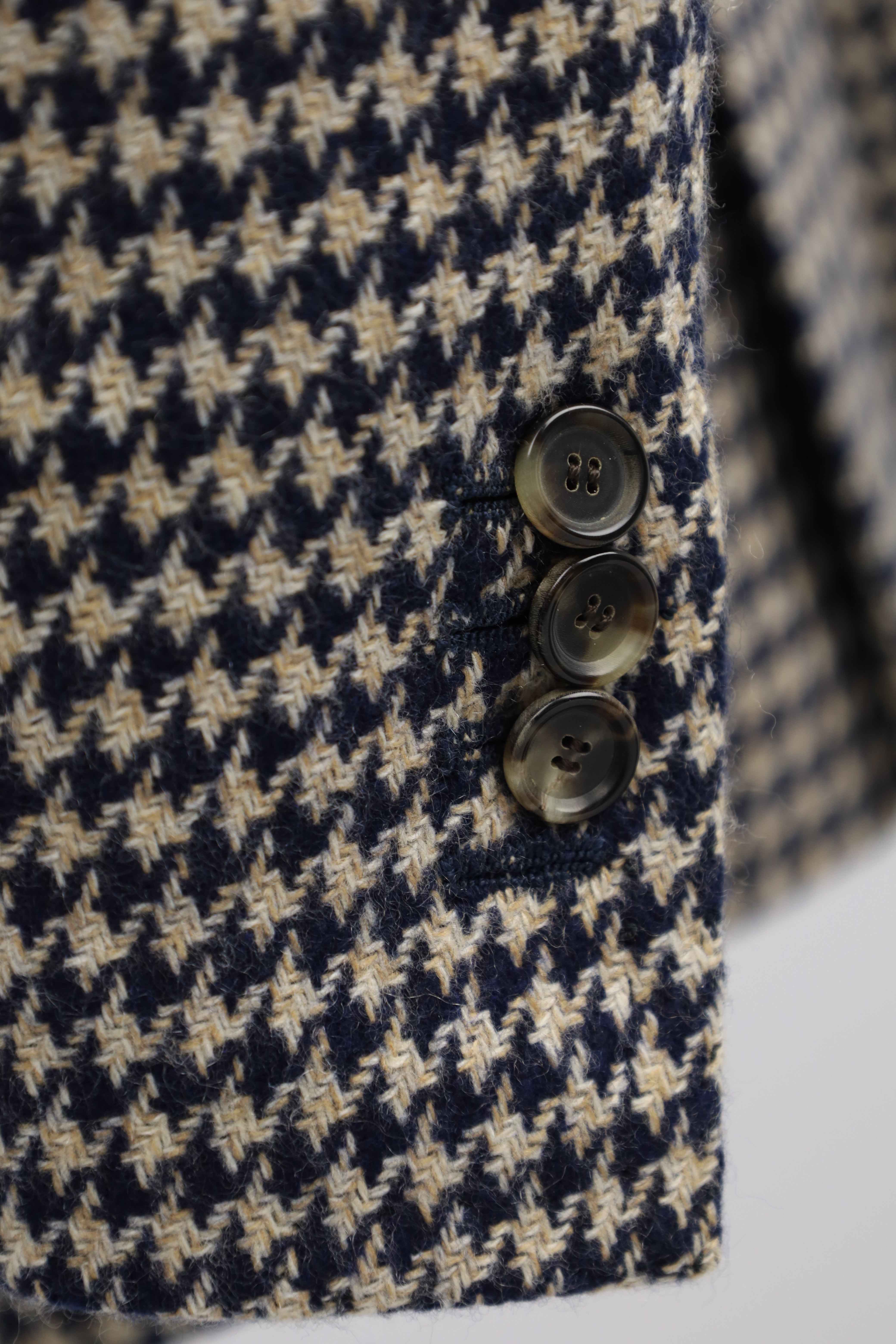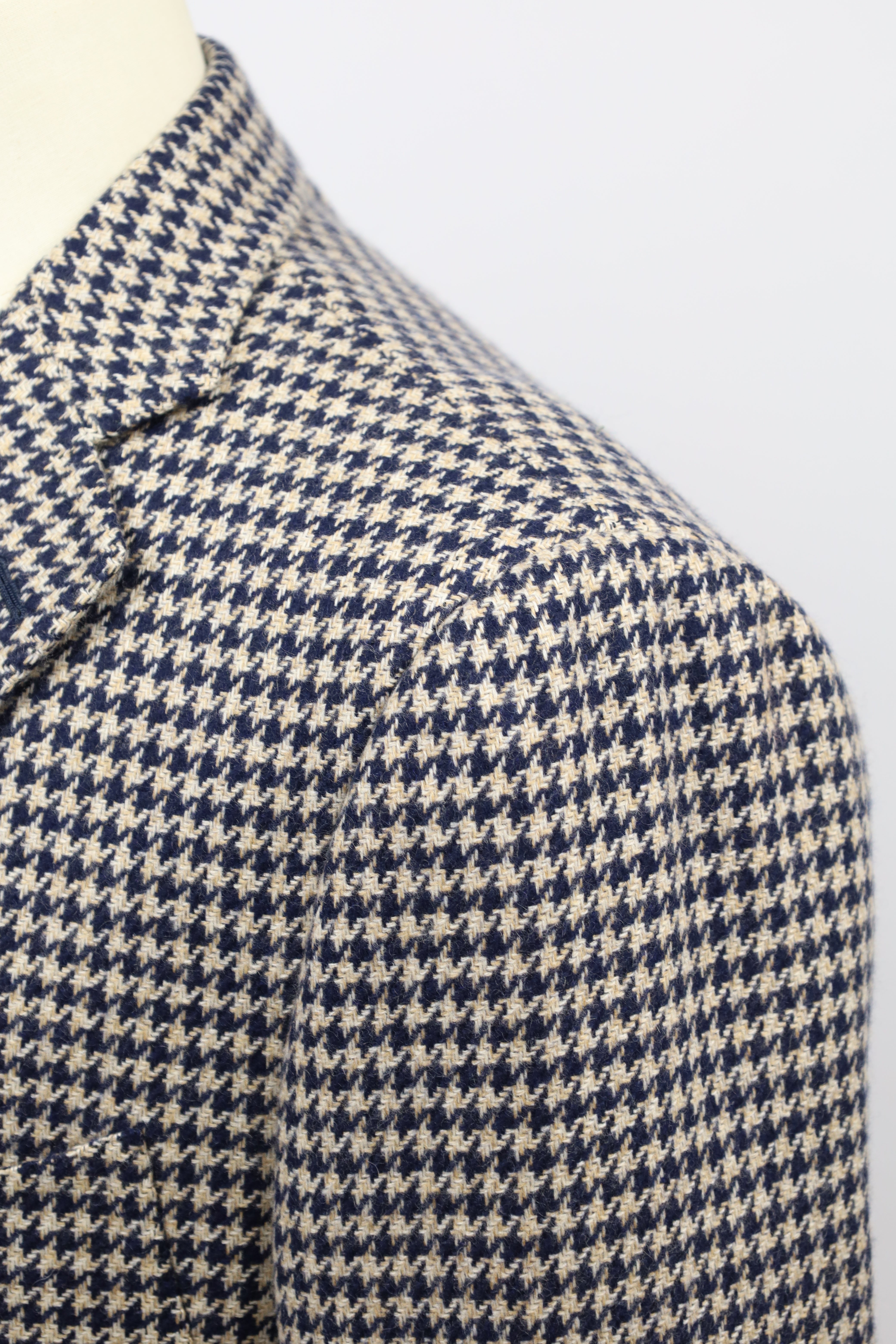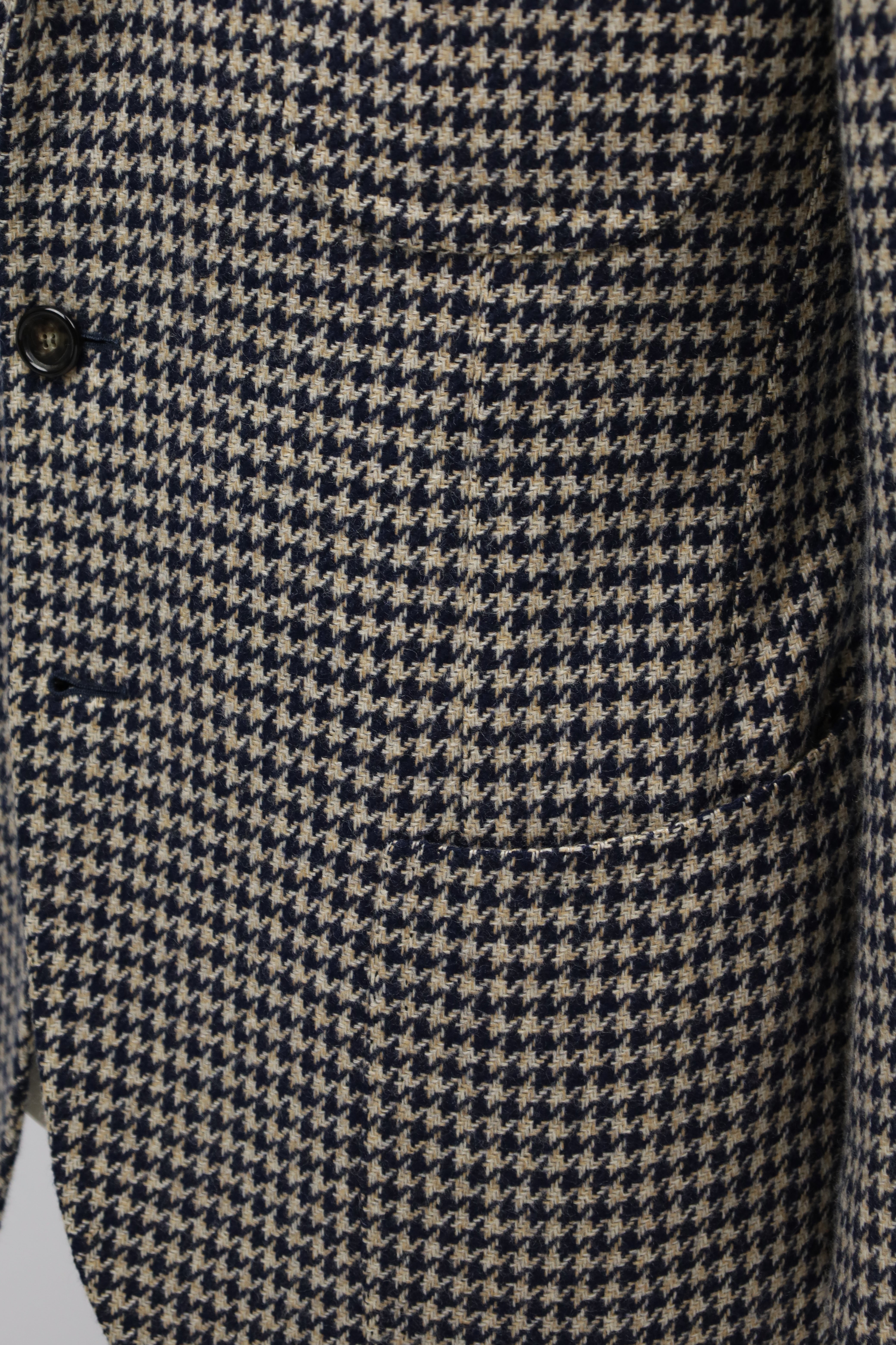 Cesare Attolini Beige & Blue Houndstooth Cashmere Jacket