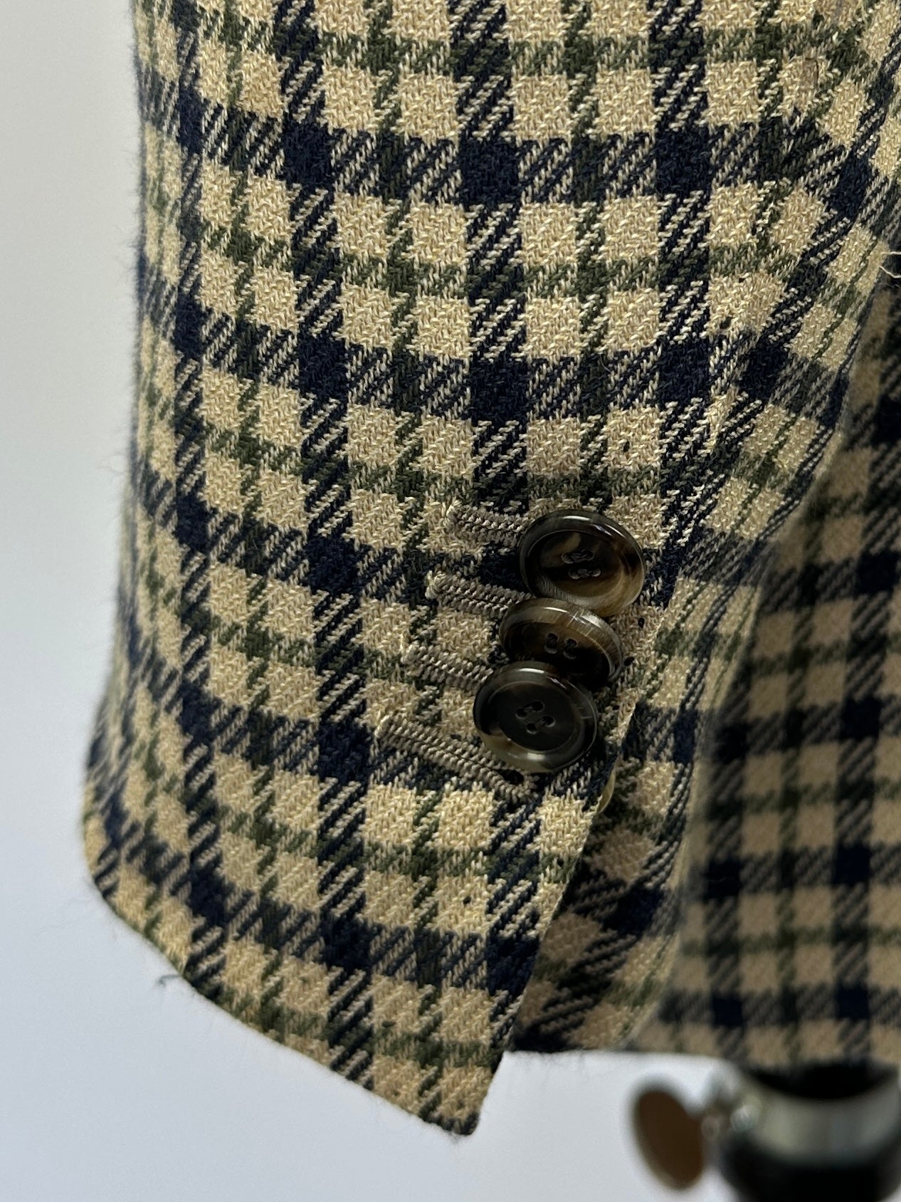 Also known as stacked buttons or waterfall buttons, kissing buttons are associated with Italian tailoring as Italian tailors make their jacket sleeve buttons in the kissing style. In this style, buttons touch each other and overlap one another. Handmade buttonholes; Even this step, apparently the simplest, is treated with an abundance of detail. Attaching the buttons is a job that requires patience and must be completed to perfection.