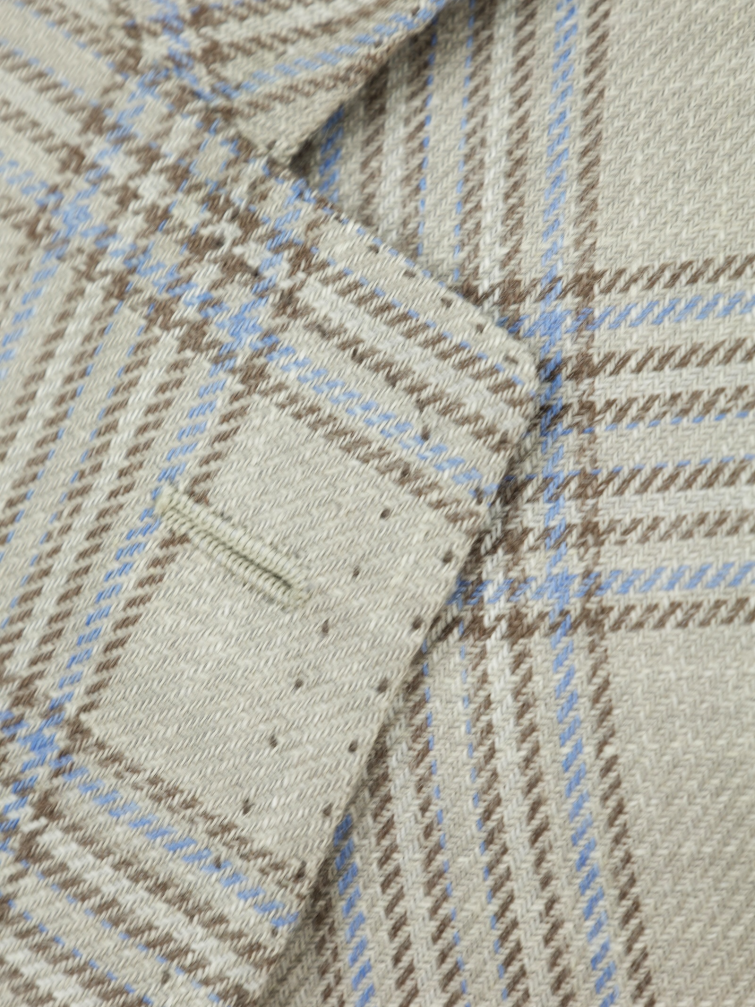 The barchetta pocket is often thought to be a tailoring detail exclusively from Italy. The word “barchetta” is Italian for “little boat.” It describes how the pocket floats on the chest, gently angled upwards, like the bow of a sailboat.