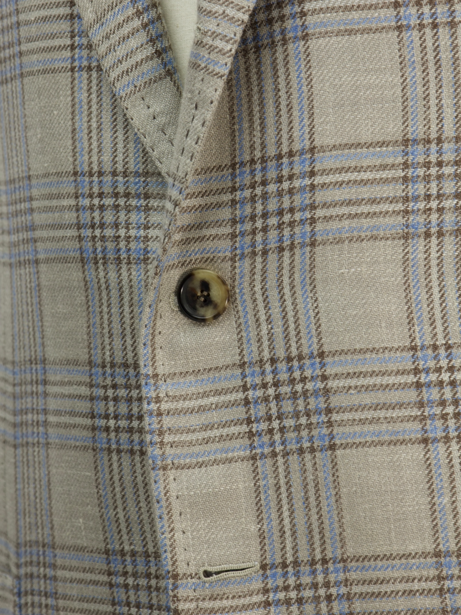 The ‘tre bottoni stirato a due’, also known as the three rolling on two lapel style, is perhaps the most infamous characteristic of the Neapolitan style jacket. The top button and buttonhole are ornamental, so are left unbuttoned. As the lapel rolls down it elegantly folds over the top button and stops just 4 cm above the second button creating the distinct roll of the lapel the style is known for. As it is intended to remain unbuttoned, the top buttonhole is actually made inside out so the beautiful side will still be visible.