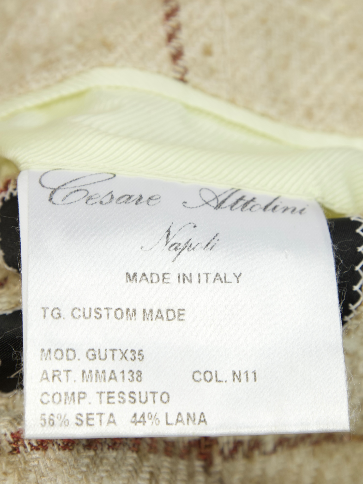 Cesare Attolini Beige Silk & Wool Windowpane Jacket