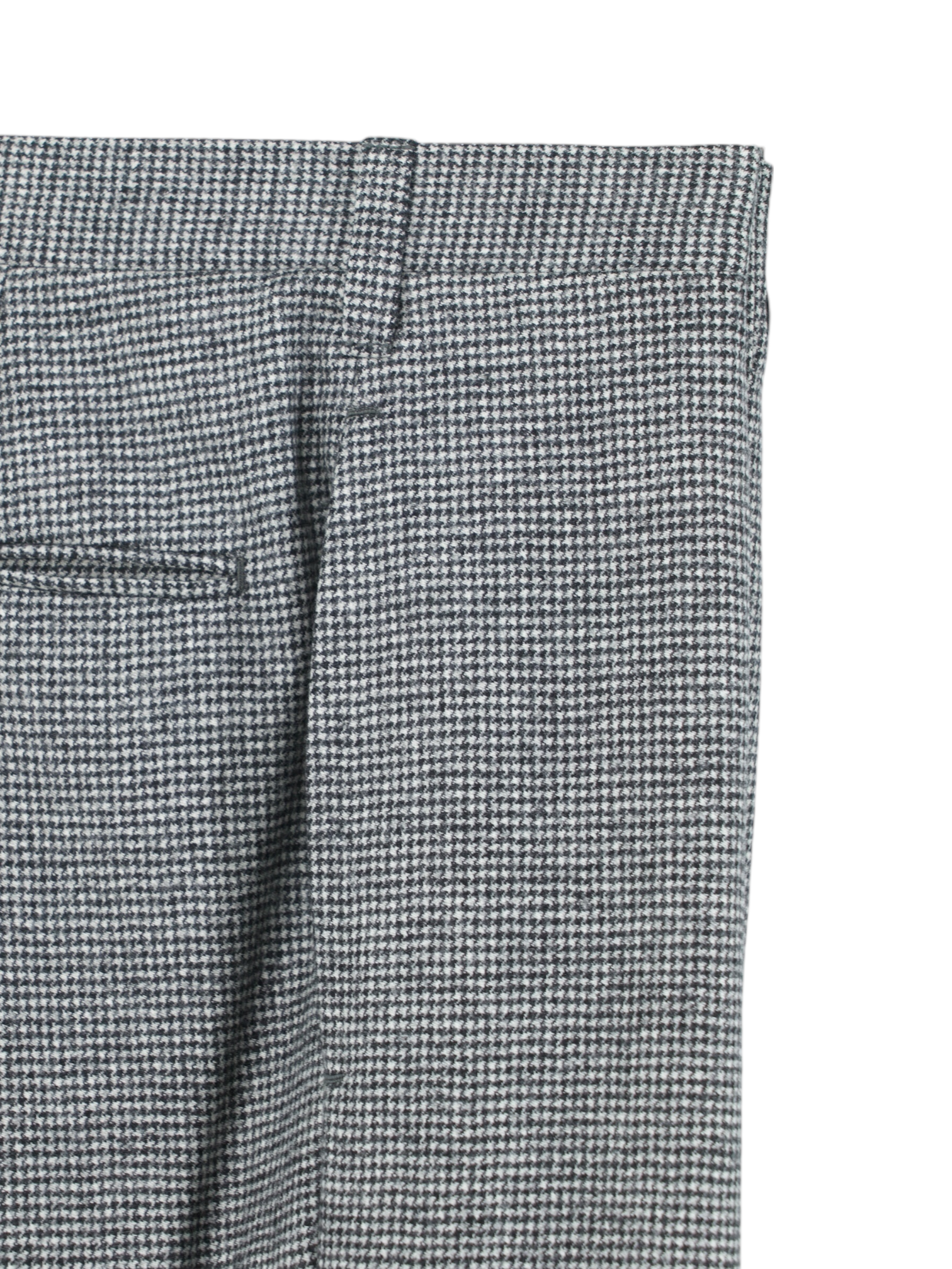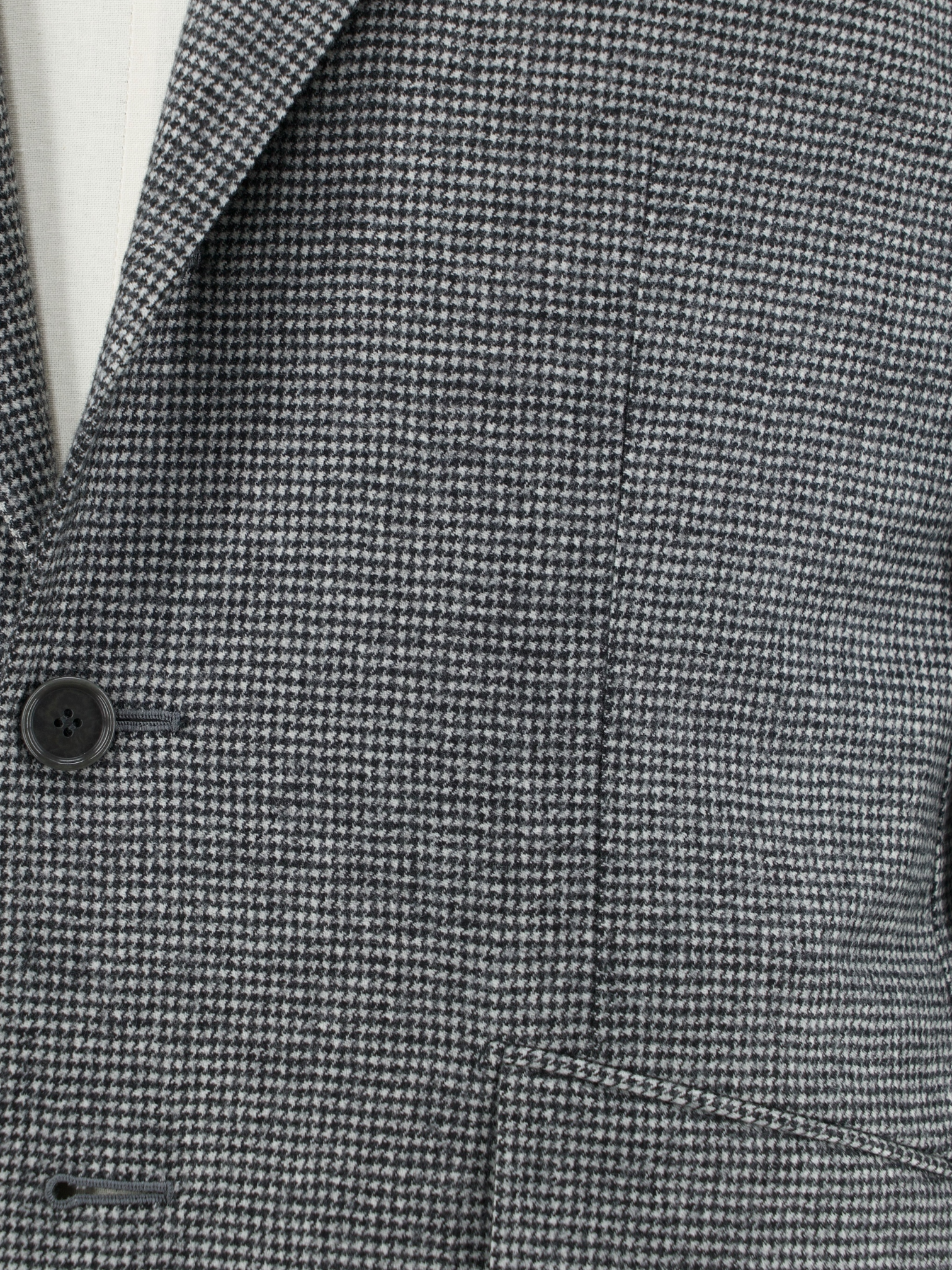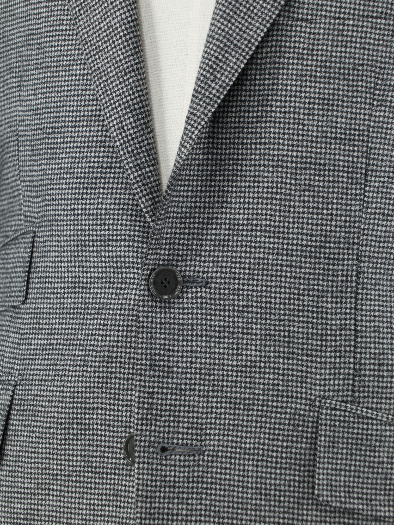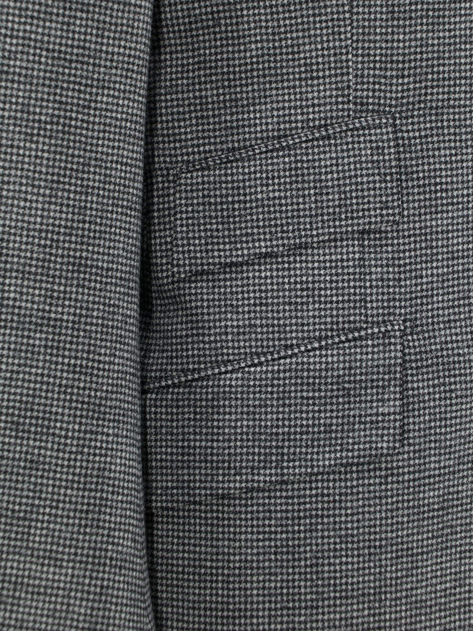A sartorial treasure: Presenting the Cesare Attolini Black and White Wool & Cashmere Puppytooth Suit: a fusion of luxury and masterful tailoring. Crafted from a premium wool and cashmere blend, this suit showcases a timeless puppytooth pattern. With Cesare Attolini's hallmark La Spalla Camicia shoulders and meticulous doppio impuntura pick stitching, it epitomizes Italian elegance. The single vent maintains a sleek silhouette, while the unfinished cuff allows for personalized adjustments. Ideal for the discerning gentleman seeking refined style, this suit is a statement of sophistication.e. Discover the elaborated sartorial details below.