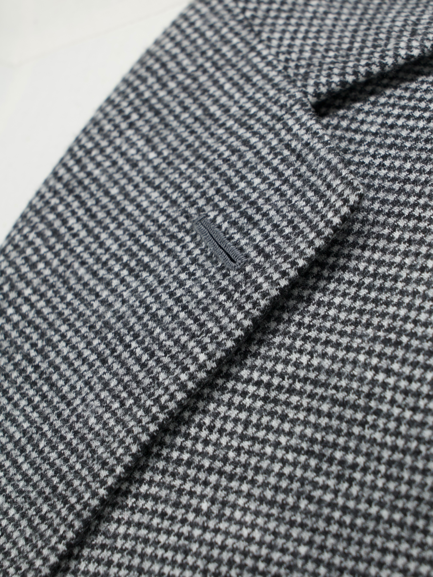 The ‘tre bottoni stirato a due’, also known as the three rolling on two lapel style, is perhaps the most infamous characteristic of the Neapolitan style jacket. The top button and buttonhole are ornamental, so are left unbuttoned. As the lapel rolls down it elegantly folds over the top button and stops just 4 cm above the second button creating the distinct roll of the lapel the style is known for. As it is intended to remain unbuttoned, the top buttonhole is actually made inside out so the beautiful side will still be visible.