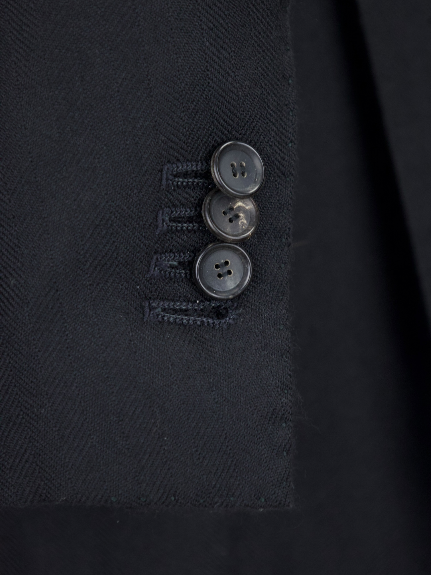 Also known as stacked buttons or waterfall buttons, kissing buttons are associated with Italian tailoring as Italian tailors make their jacket sleeve buttons in the kissing style. In this style, buttons touch each other and overlap one another. Handmade buttonholes; Even this step, apparently the simplest, is treated with an abundance of detail. Attaching the buttons is a job that requires patience and must be completed to perfection.