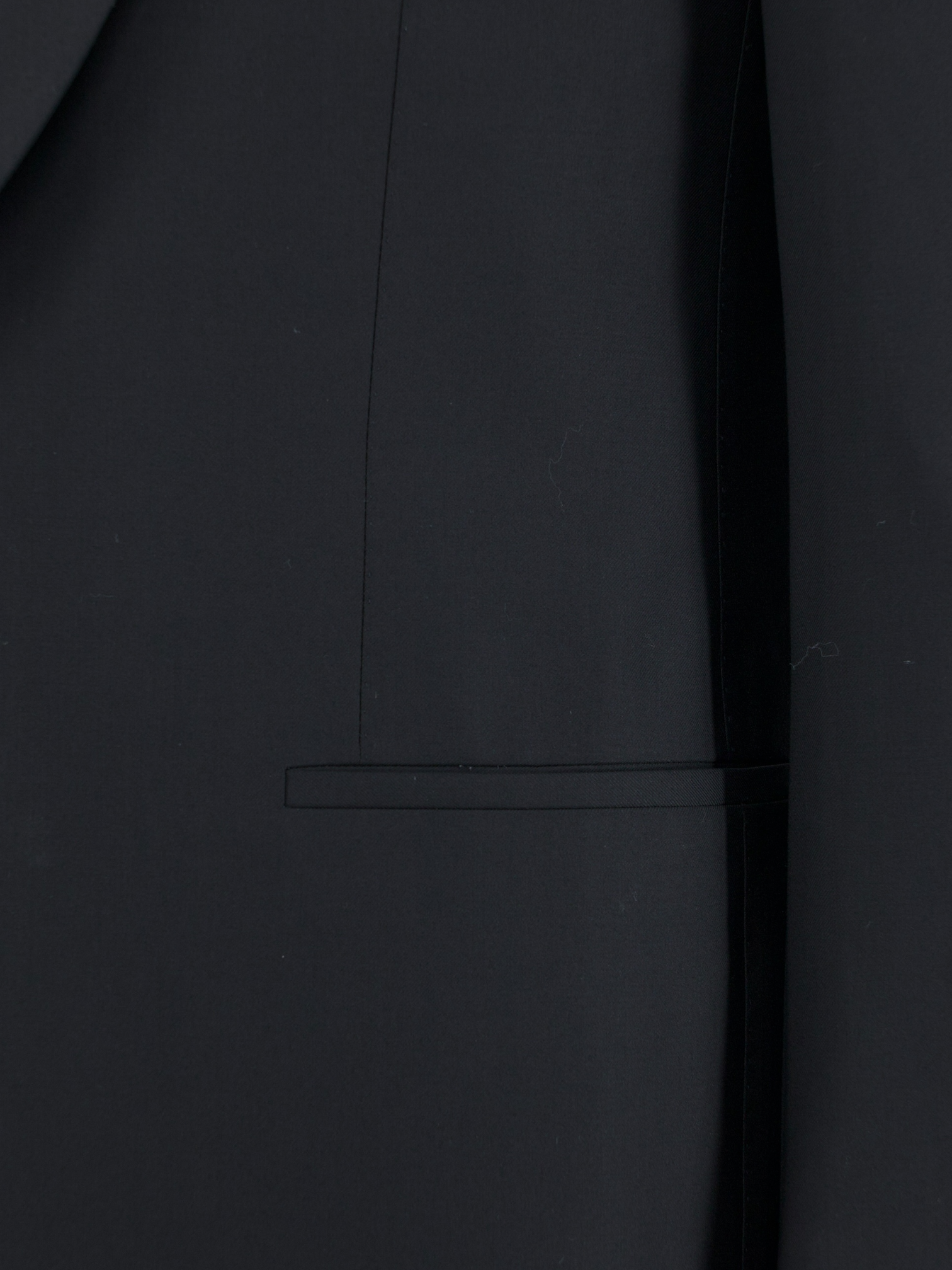 The first jacket pockets were sewn inside the lining or seams of garments, and are called “jetted” pockets. In their simplest form, they consist of little more than a slit. Suits that are the most formal, especially tuxedos, have no flap pockets altogether to give the piece a more streamlined look.
