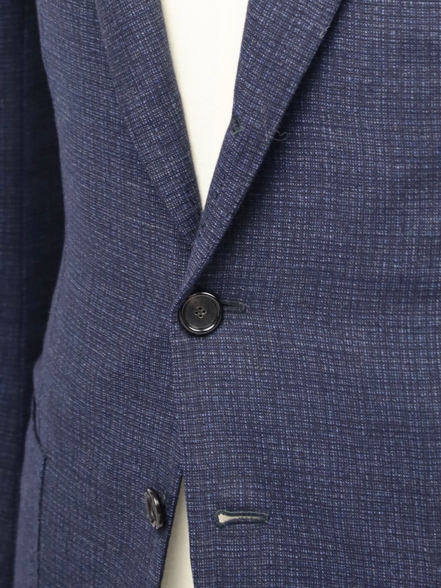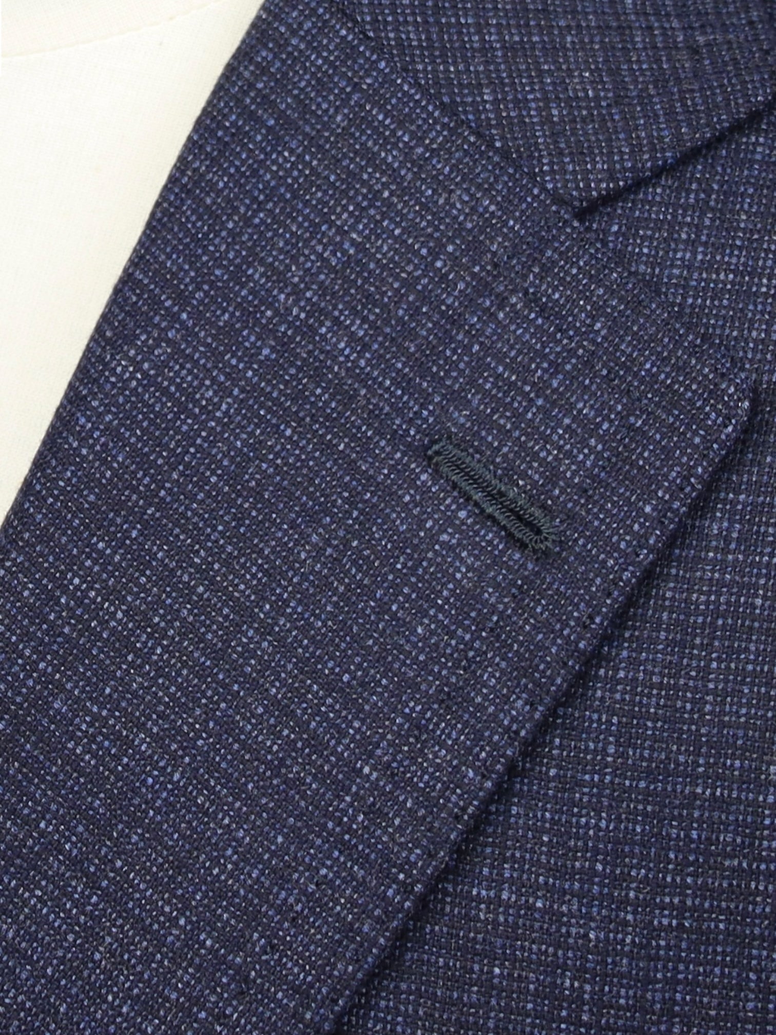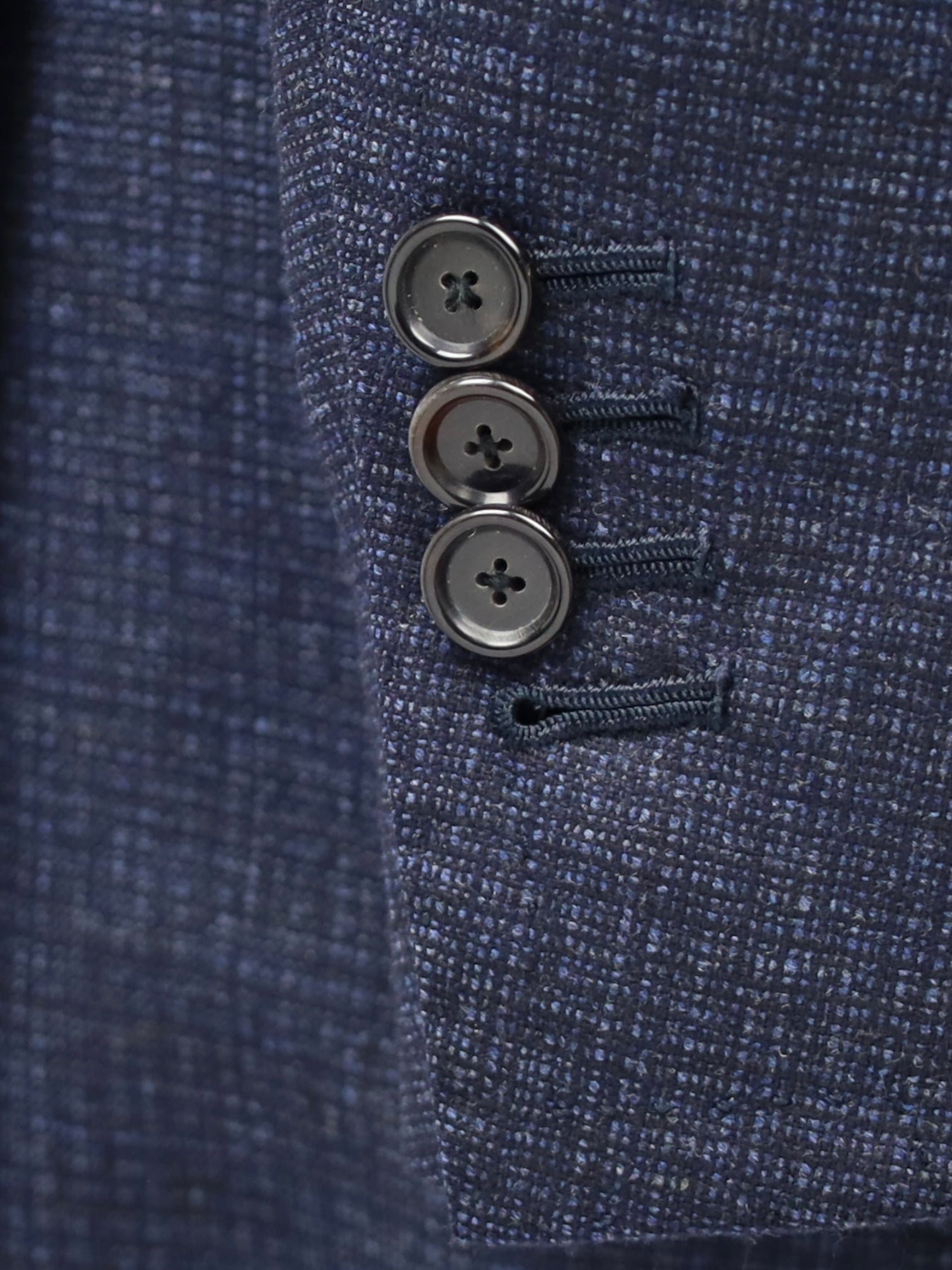 Handmade Neapolitan blazer crafted from a wool & cashmere blend, with notch lapels, patch pockets and - handmade - functioning buttonholes at the end of the sleeve. Discover the elaborated sartorial details below.