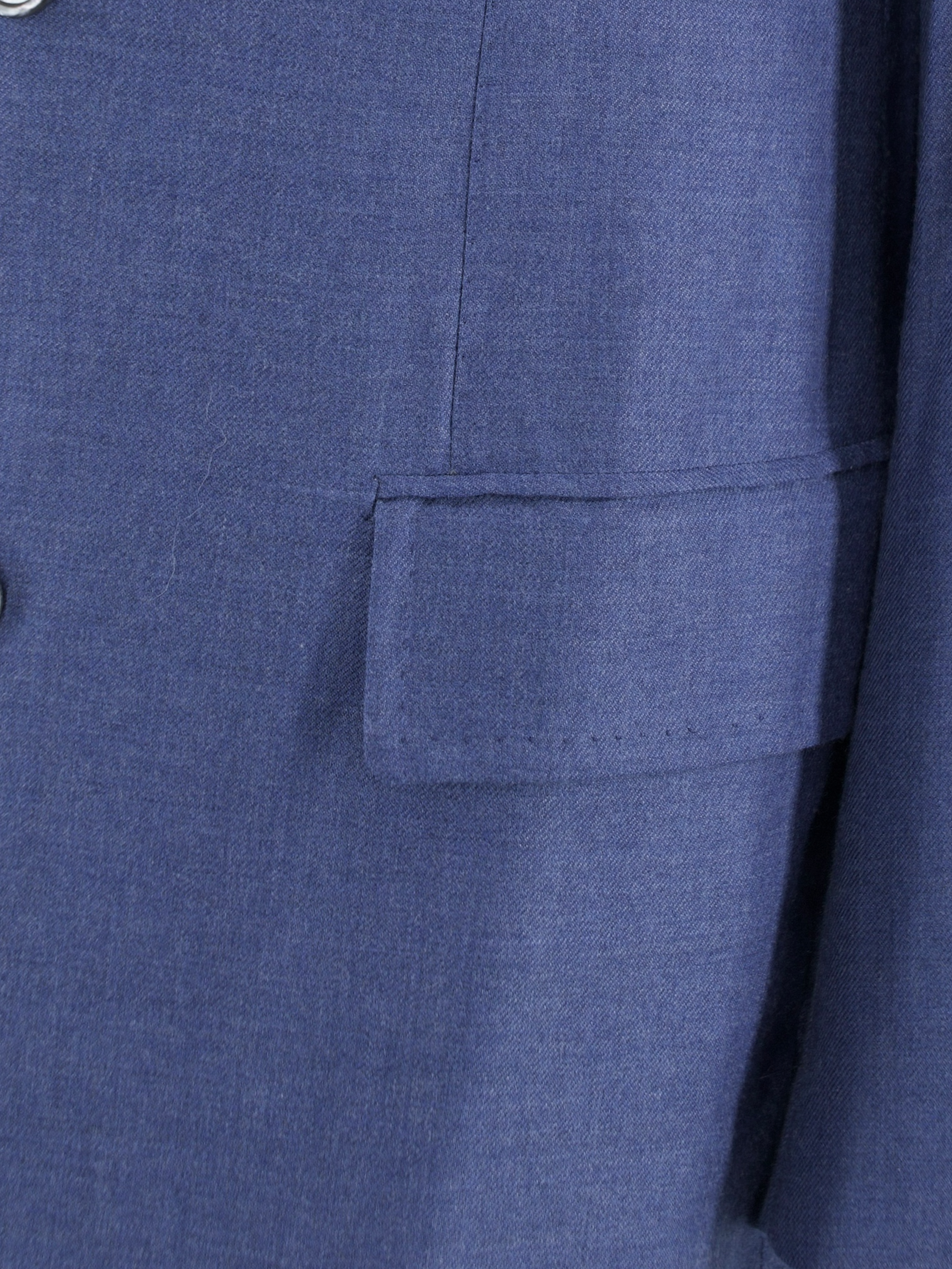 The barchetta pocket is often thought to be a tailoring detail exclusively from Italy. The word “barchetta” is Italian for “little boat.” It describes how the pocket floats on the chest, gently angled upwards, like the bow of a sailboat.