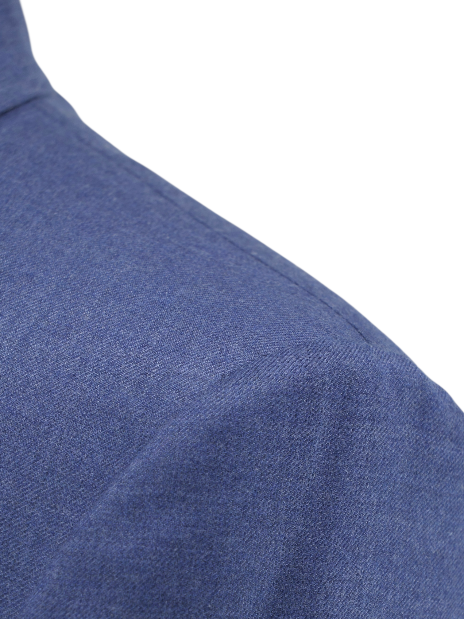 Spalla Camicia roughly translates to 'shirt sleeve' in Italian and is a shoulder style created and popularized by Neapolitan tailors. The name 'shirt sleeve' was so coined due to the characteristic shirring found at the sleeve's head where the fullness of the larger sleeve collapses. Rather than having the head of the sleeve turned back and stitched inside, the head is lapped under and stitched along the top.