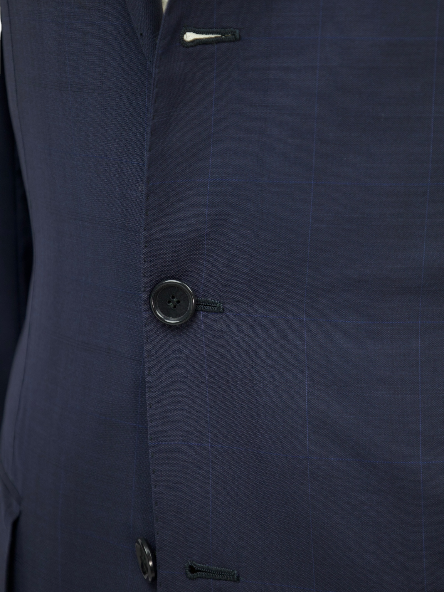 Also known as stacked buttons or waterfall buttons, kissing buttons are associated with Italian tailoring as Italian tailors make their jacket sleeve buttons in the kissing style. In this style, buttons touch each other and overlap one another. Handmade buttonholes; Even this step, apparently the simplest, is treated with an abundance of detail. Attaching the buttons is a job that requires patience and must be completed to perfection.