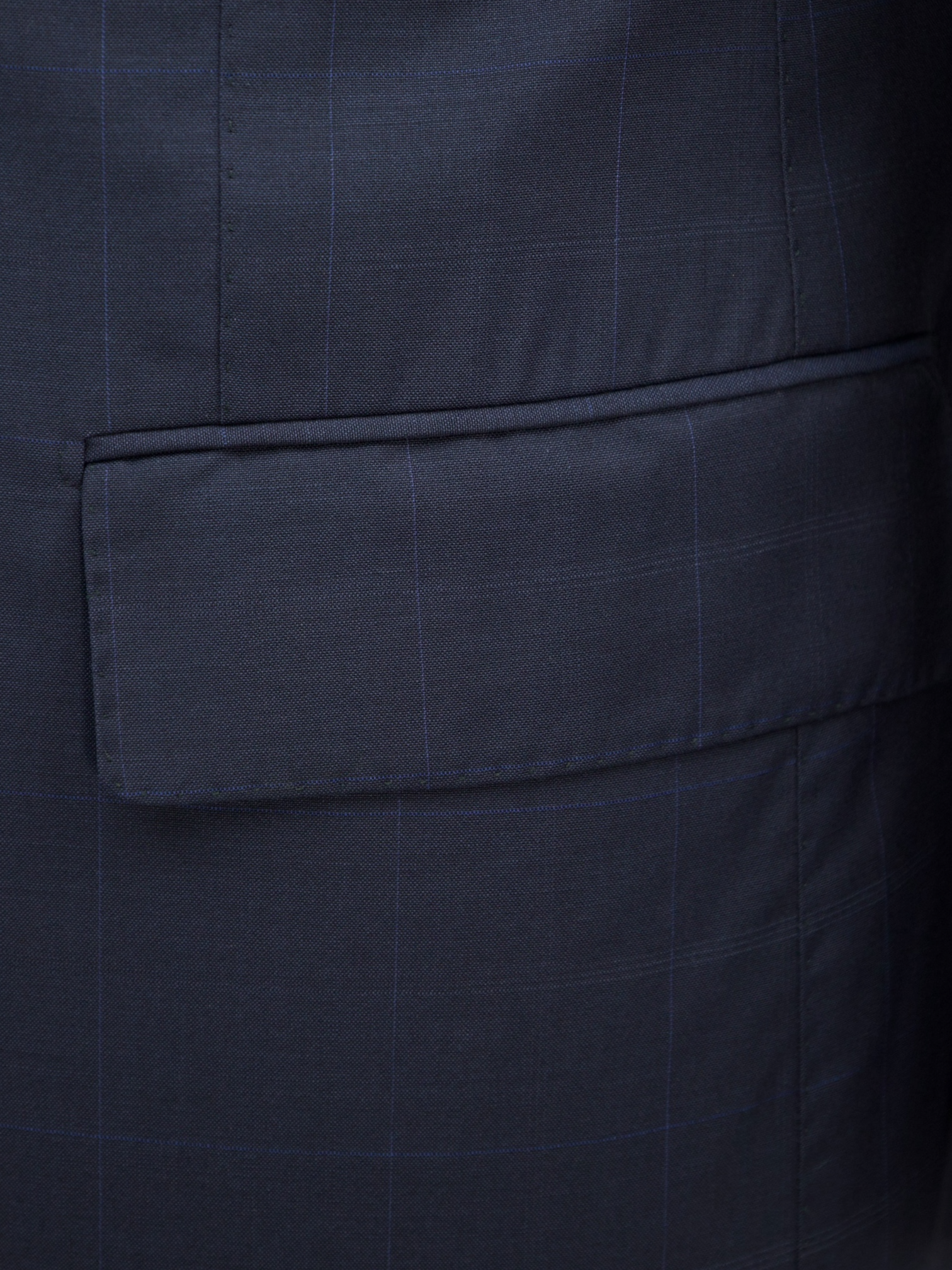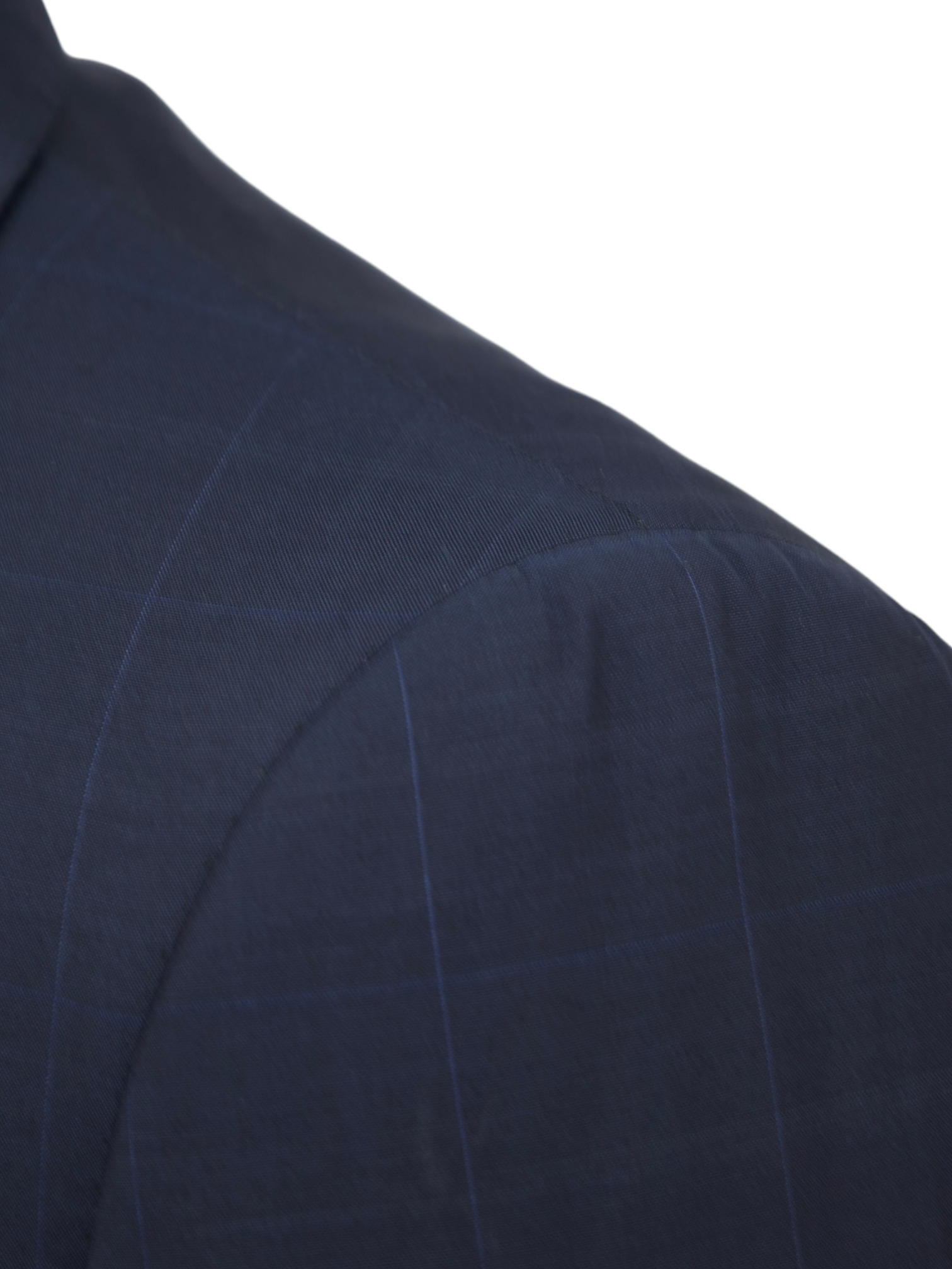 The suit features a traditional Neapolitan cut, known for its lightweight construction and natural "La Spalla Camicia" shoulder line, providing both comfort and a sharp silhouette. The jacket boasts notch lapels and a single-breasted closure, while the flat-front trousers enhance its sleek and elegant look. Ideal for both business and formal occasions, the Cesare Attolini Blue Super 150's Windowpane Suit embodies timeless style and unparalleled craftsmanship. Discover the elaborated sartorial details below.