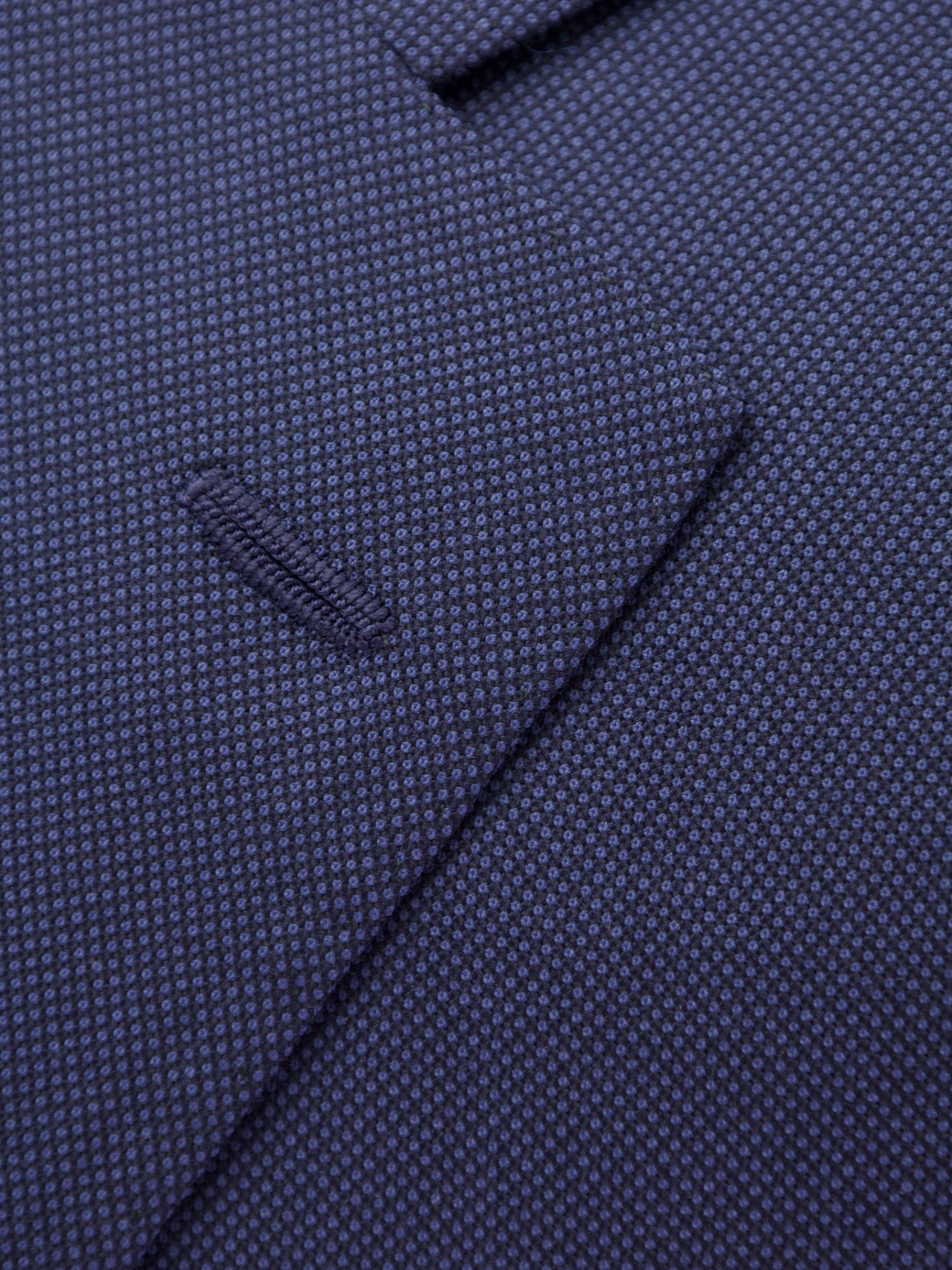 Neapolitan master tailors add two darts - think of them as pinched seams - to ensure the jacket’s body achieves a slim silhouette. The process, called mezzo punto riprese, is done entirely by hand.