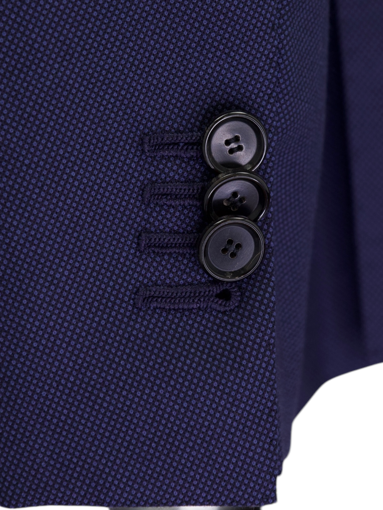 Also known as stacked buttons or waterfall buttons, kissing buttons are associated with Italian tailoring as Italian tailors make their jacket sleeve buttons in the kissing style. In this style, buttons touch each other and overlap one another. Handmade buttonholes; Even this step, apparently the simplest, is treated with an abundance of detail. Attaching the buttons is a job that requires patience and must be completed to perfection.