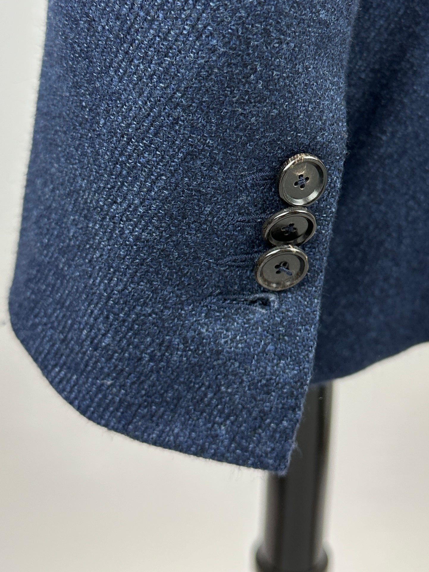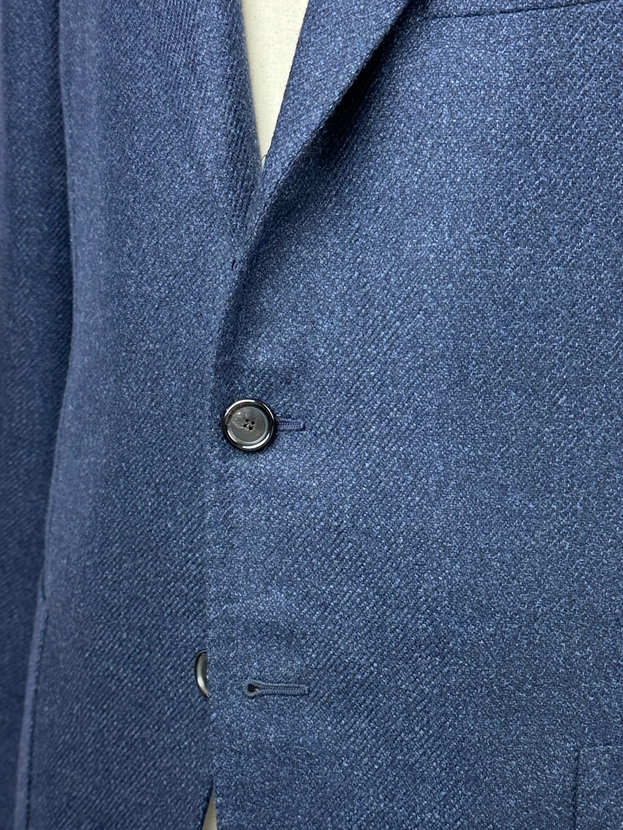 Also known as stacked buttons or waterfall buttons, kissing buttons are associated with Italian tailoring as Italian tailors make their jacket sleeve buttons in the kissing style. In this style, buttons touch each other and overlap one another. Handmade buttonholes; Even this step, apparently the simplest, is treated with an abundance of detail. Attaching the buttons is a job that requires patience and must be completed to perfection.