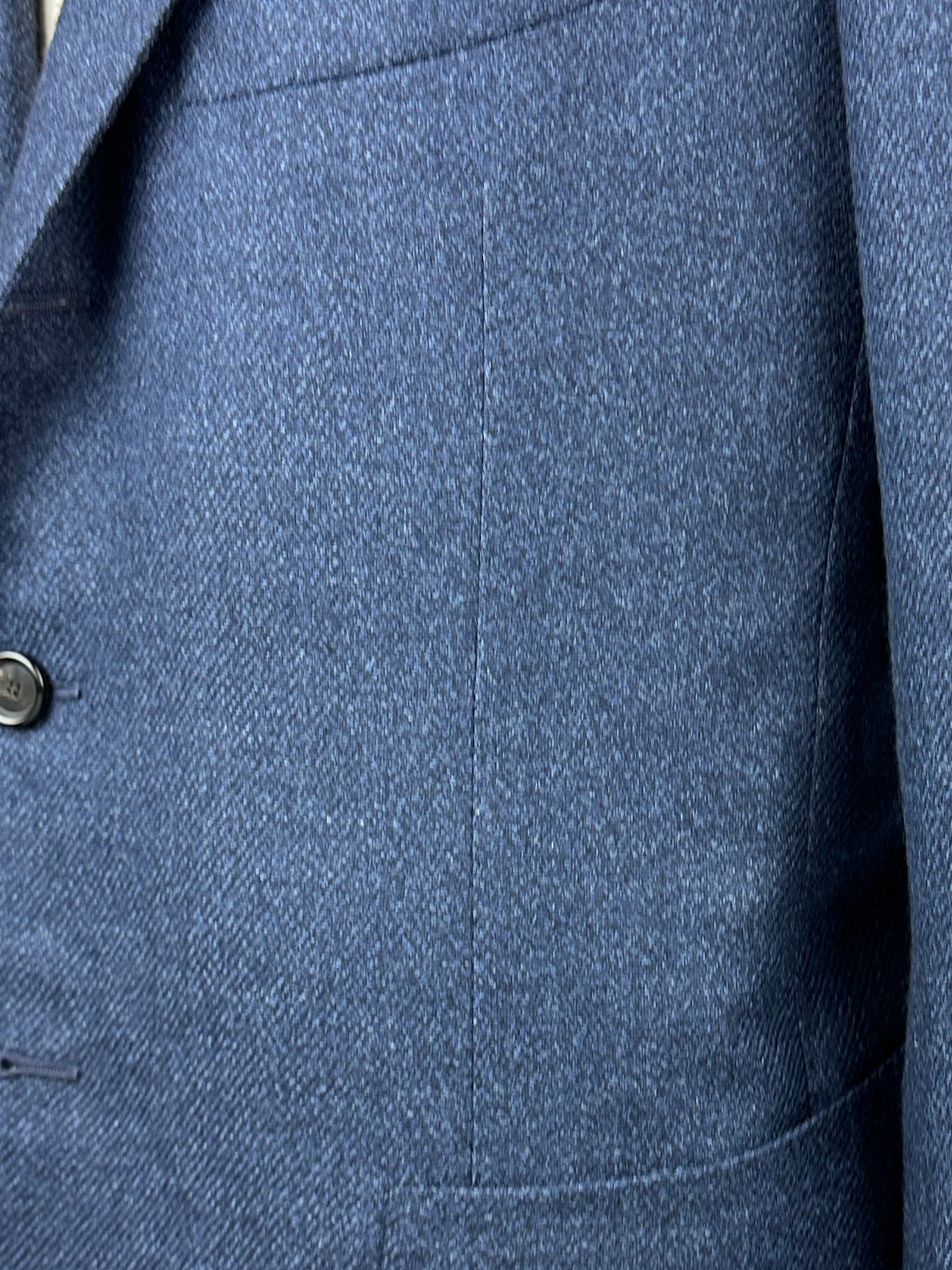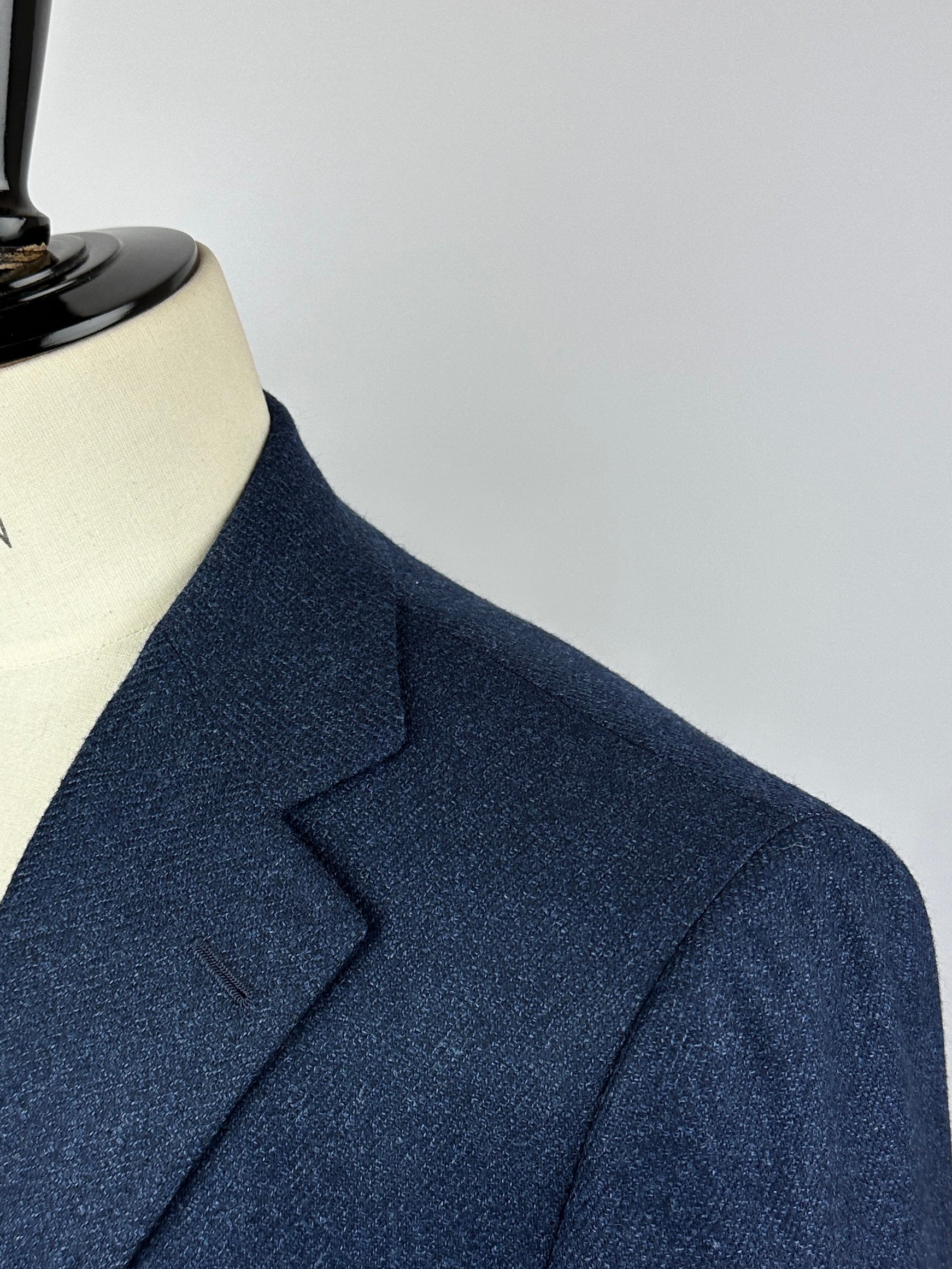 The ‘tre bottoni stirato a due’, also known as the three rolling on two lapel style, is perhaps the most infamous characteristic of the Neapolitan style jacket. The top button and buttonhole are ornamental, so are left unbuttoned. As the lapel rolls down it elegantly folds over the top button and stops just 4 cm above the second button creating the distinct roll of the lapel the style is known for. As it is intended to remain unbuttoned, the top buttonhole is actually made inside out so the beautiful side will still be visible.