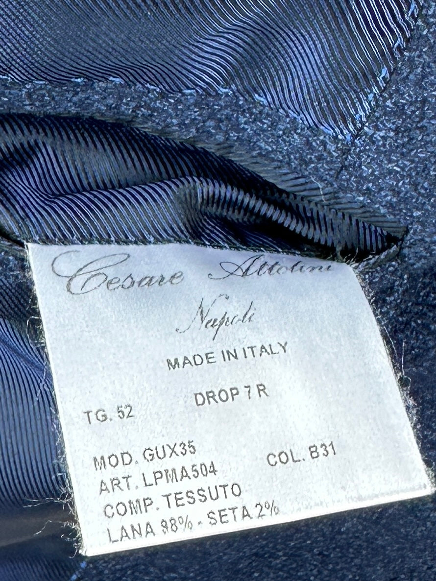 Each Cesare Attolini garment is made entirely by hand in the Casalnuovo tailor’s shop, on the outskirts of Naples. It takes 25 to 30 hours to make a suit. 130 tailors work every day, each dedicated to performing a single step. Absolute perfectionism.