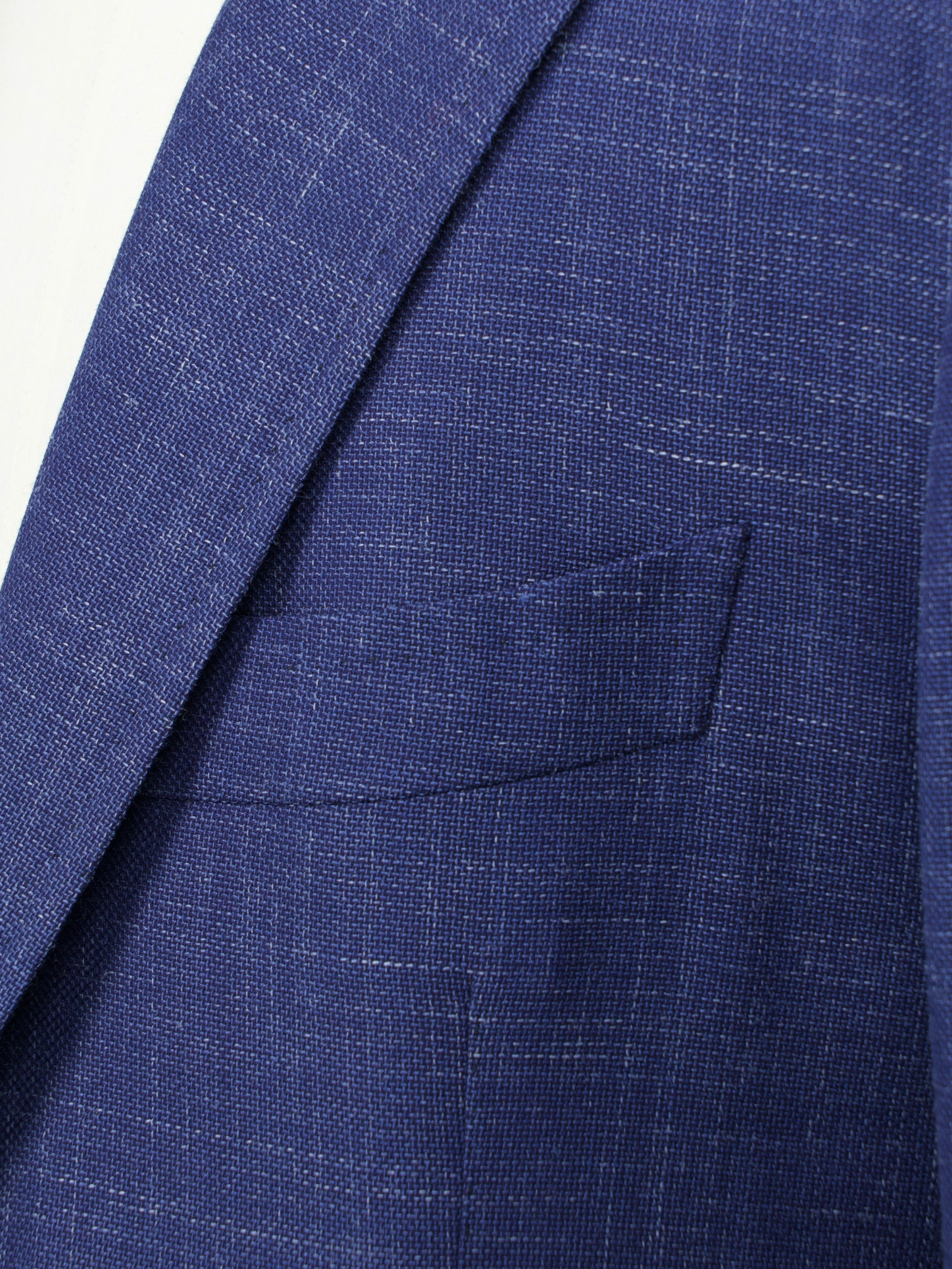 The barchetta pocket is often thought to be a tailoring detail exclusively from Italy. The word “barchetta” is Italian for “little boat.” It describes how the pocket floats on the chest, gently angled upwards, like the bow of a sailboat.