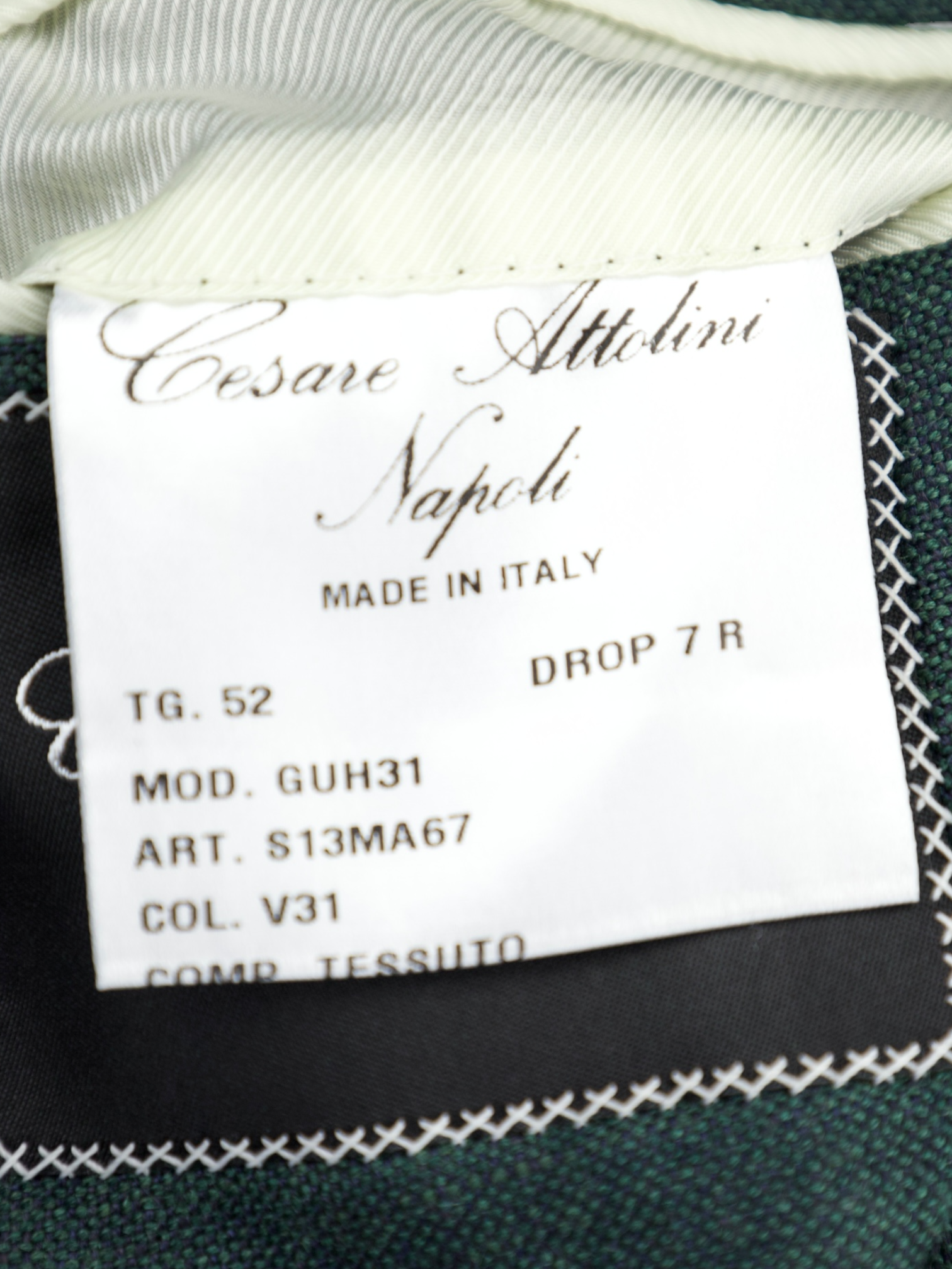 Cesare Attolini Bottle Green Wool, Silk & Linen Hopsack Jacket